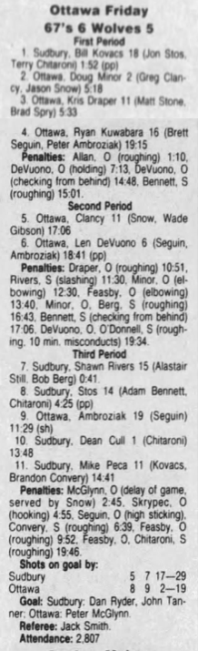 March 12 1991- Ottawa @ Sudbury (4-2 Sudbury)