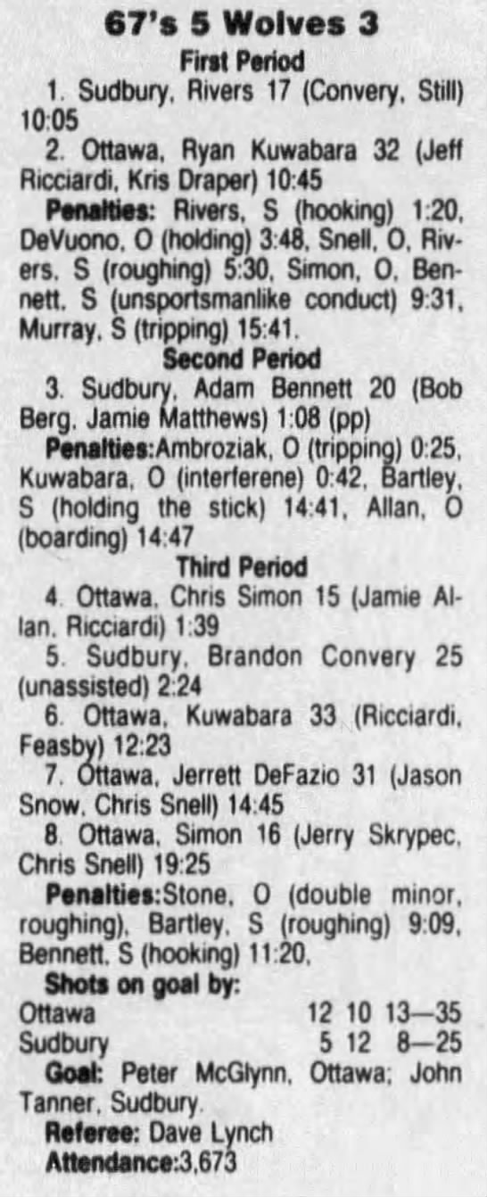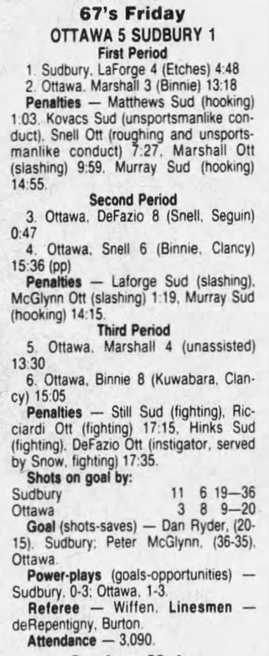 December 4 1990- Ottawa @ Sudbury (3-2 Sudbury)