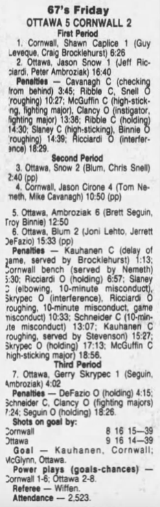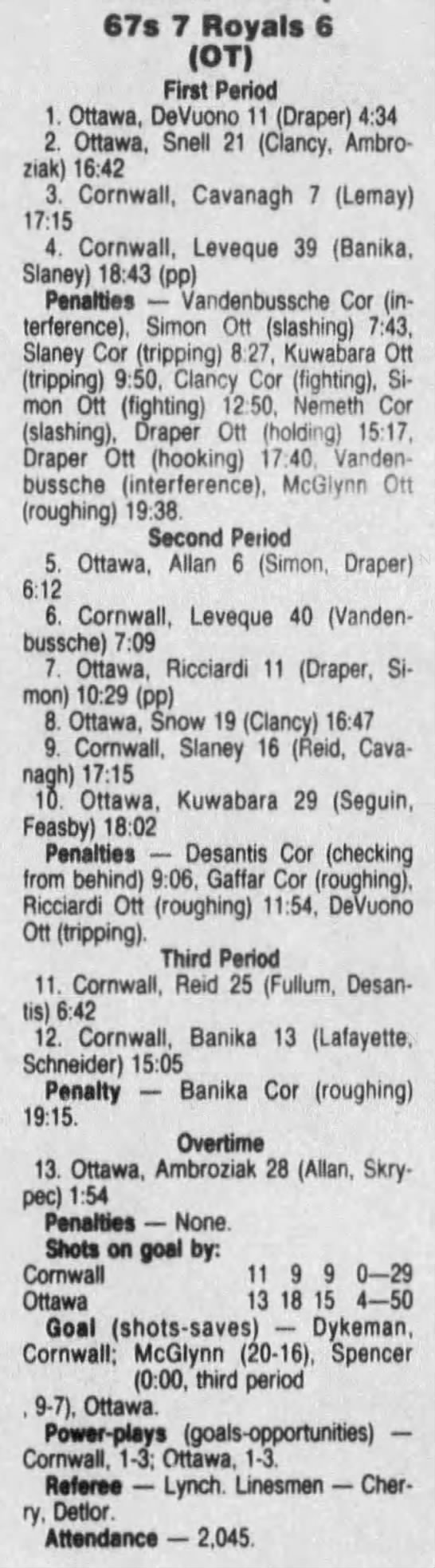 December 2 1990- Ottawa @ Cornwall (5-4 Ottawa OT)