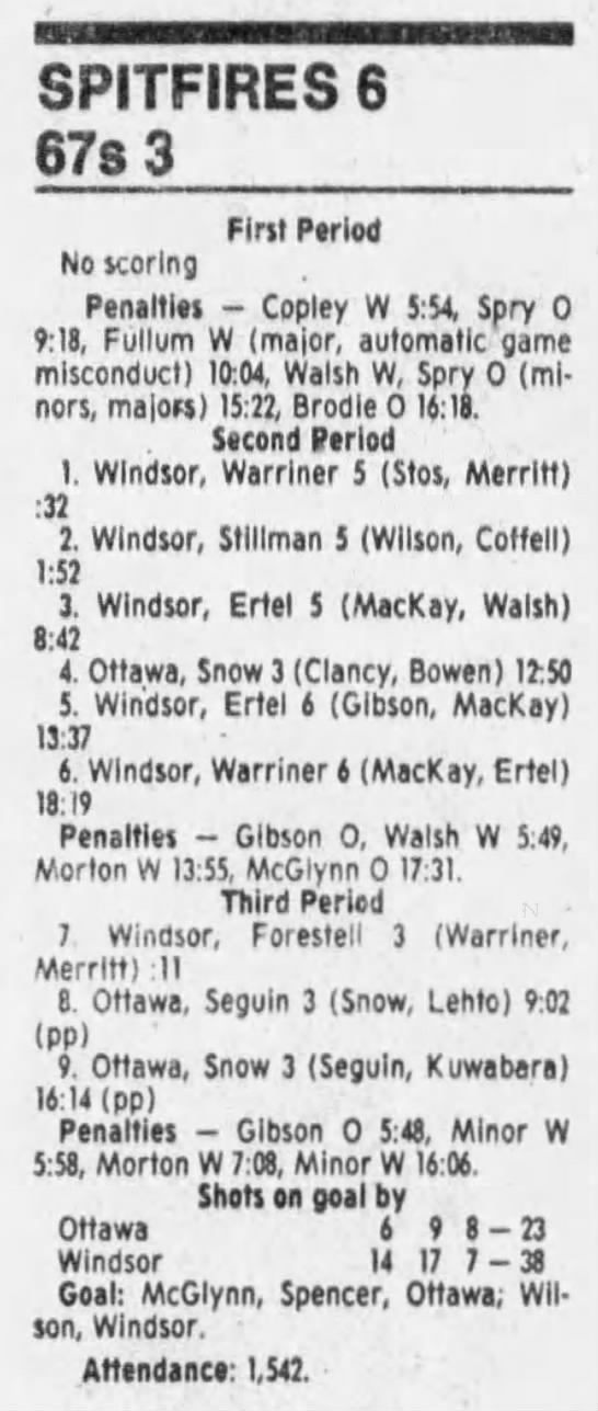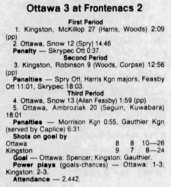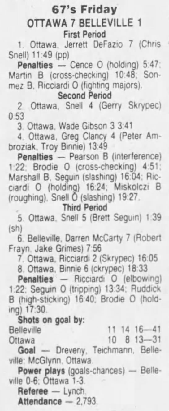 January 31 1991- Ottawa @ Peterborough (8-5 Peterborough)