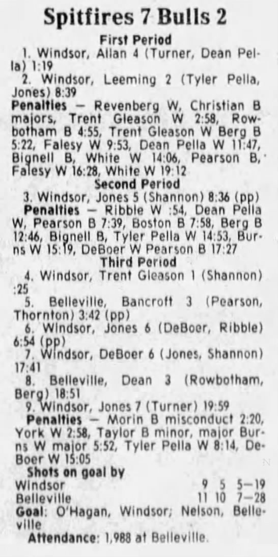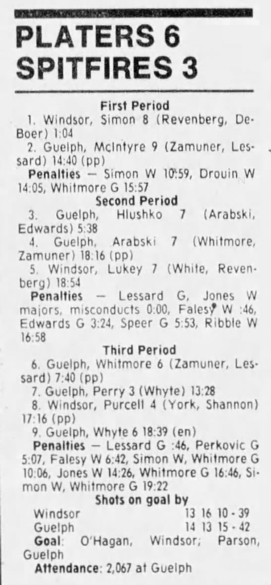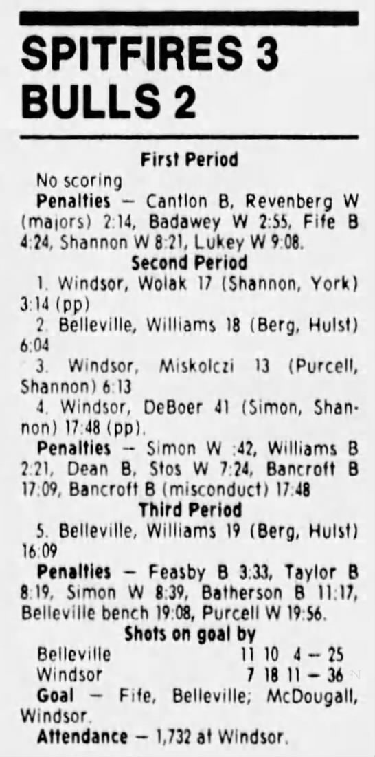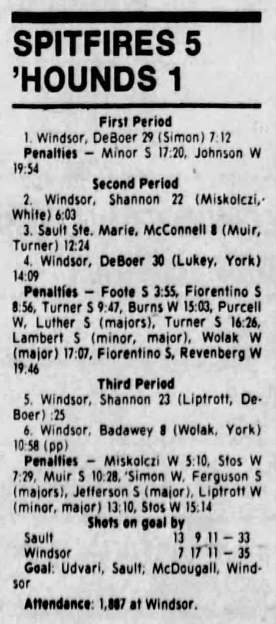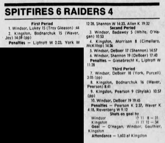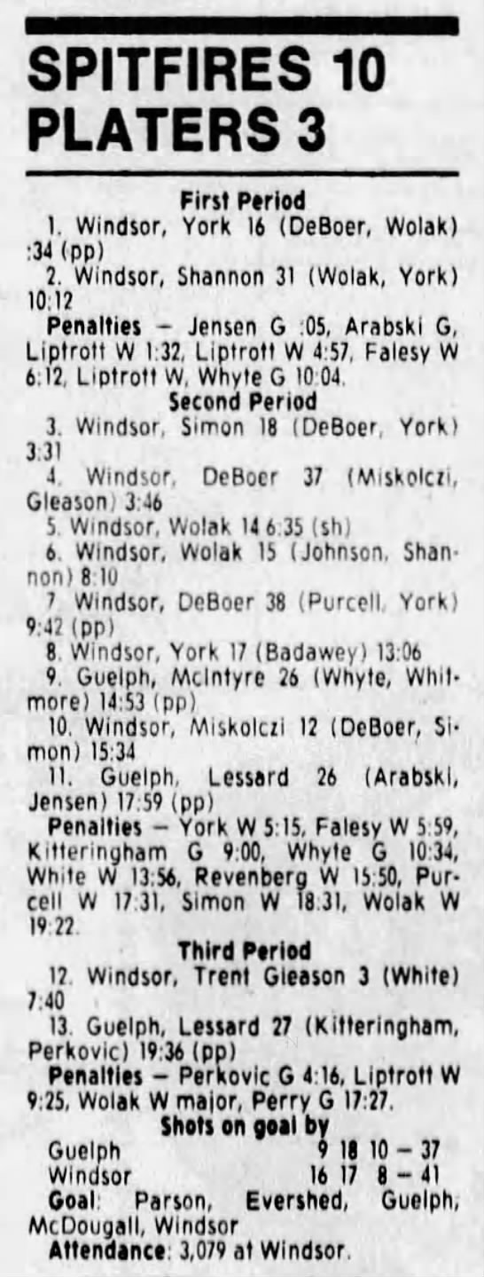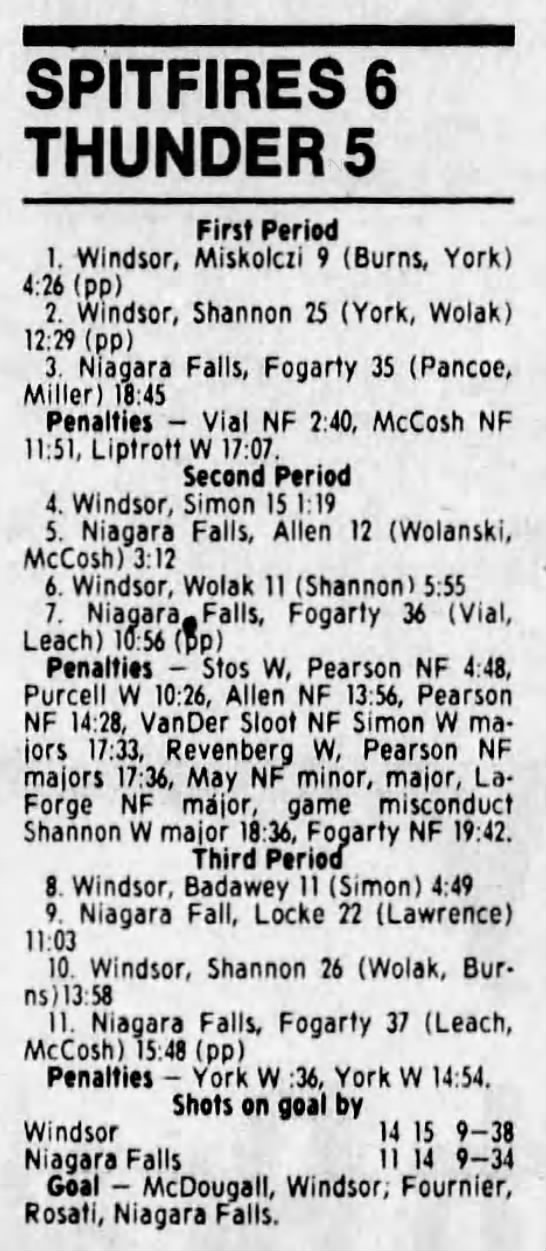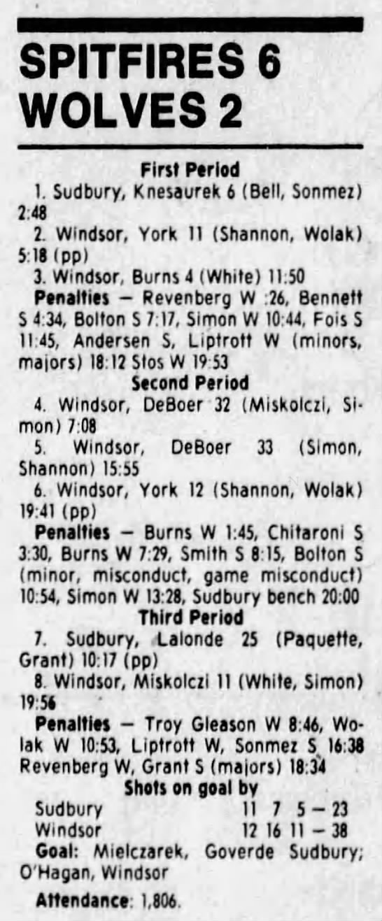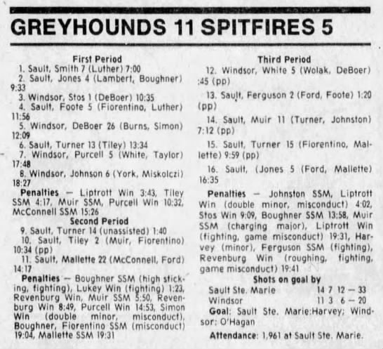 Here are the boxscores from the 1988-89 Windsor Spitfires season. There are a few that are missing, but many of them are here (69/70 boxscores). If you have any of the games that are missing, please send them my way.