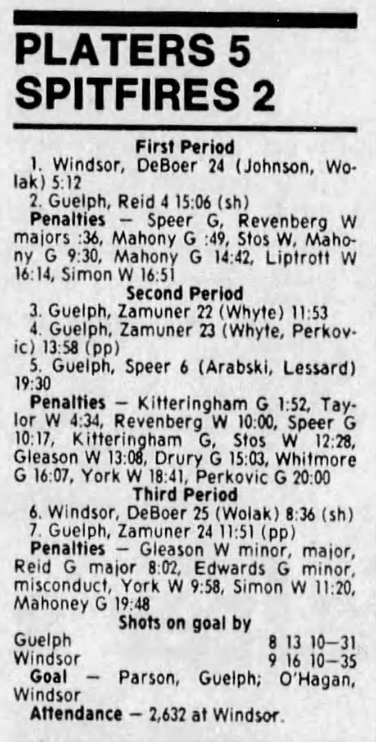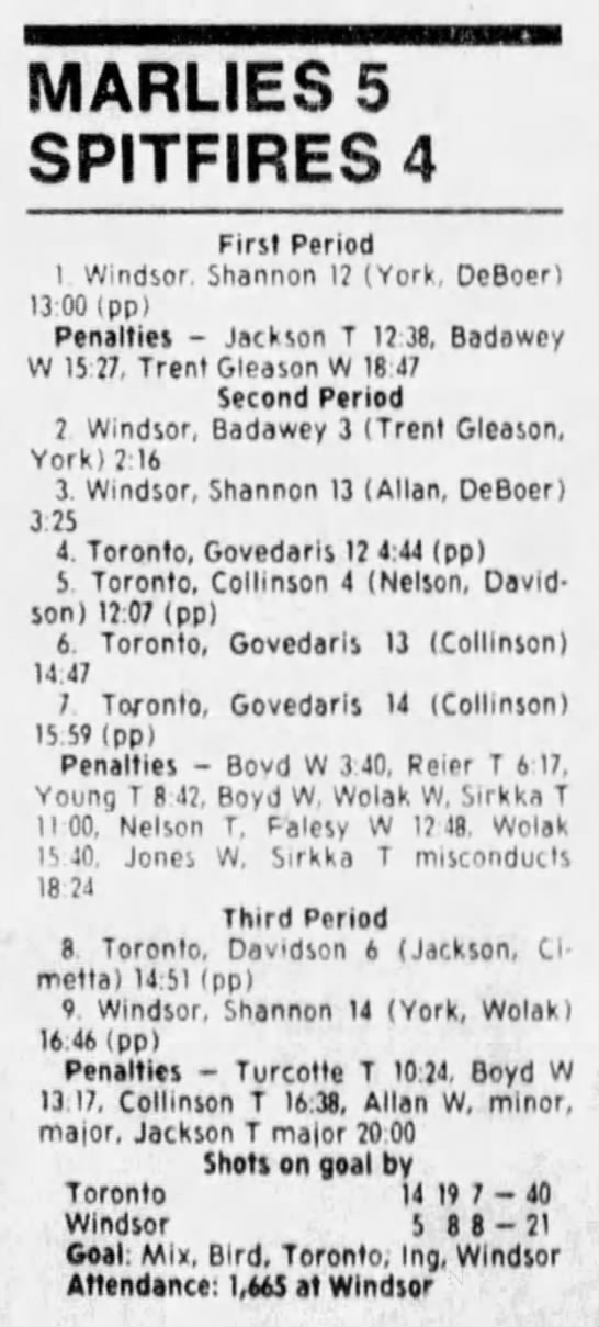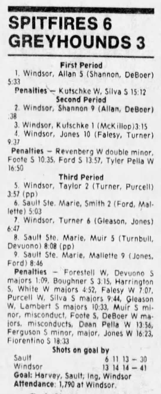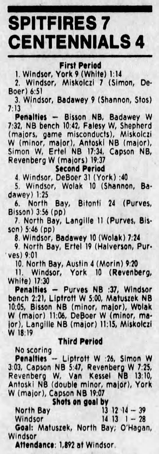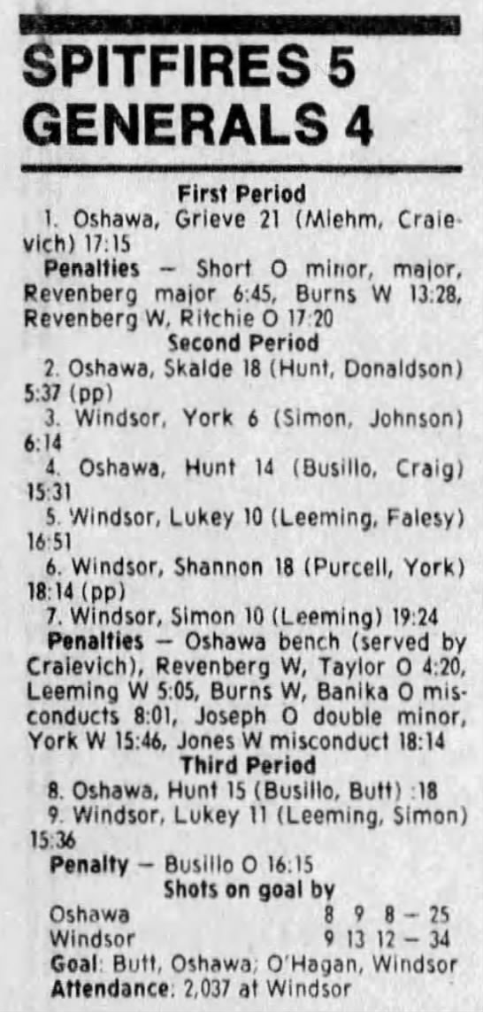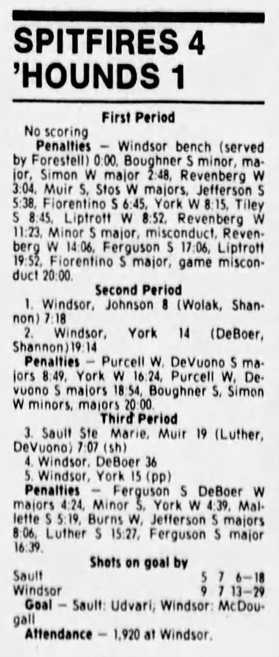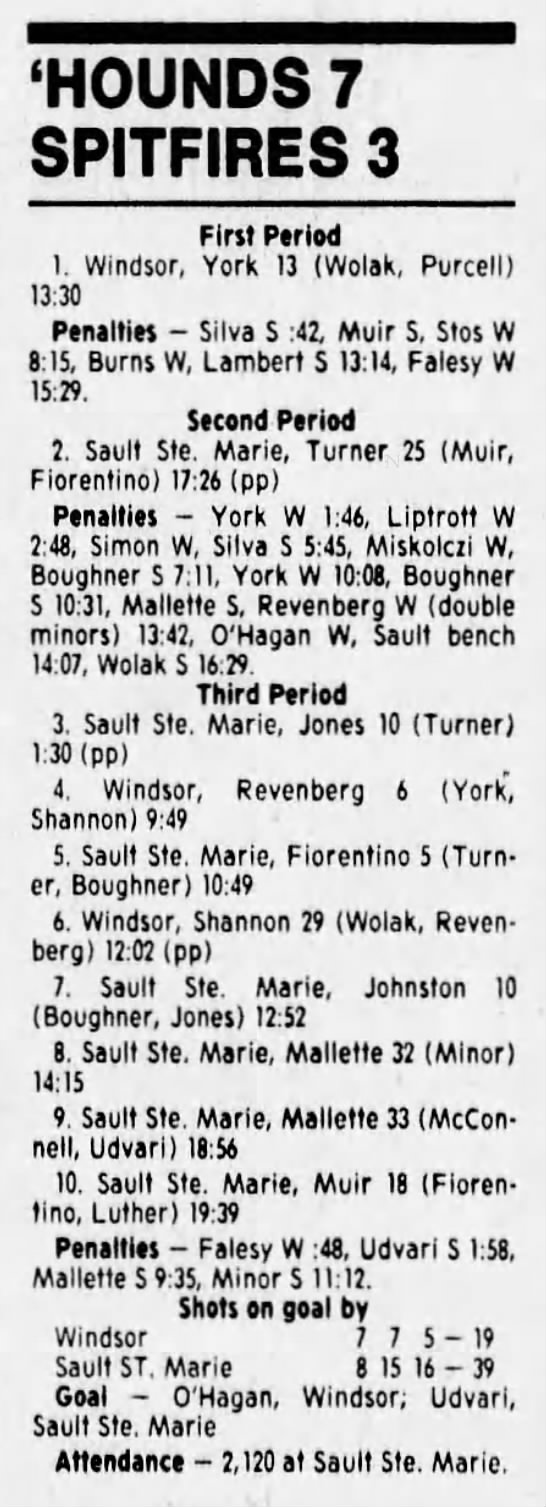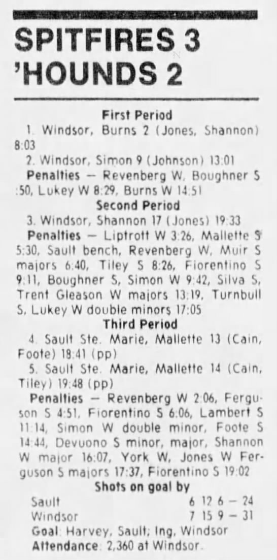Here are the boxscores from the 1988-89 Windsor Spitfires season. There are a few that are missing, but many of them are here (69/70 boxscores). If you have any of the games that are missing, please send them my way.