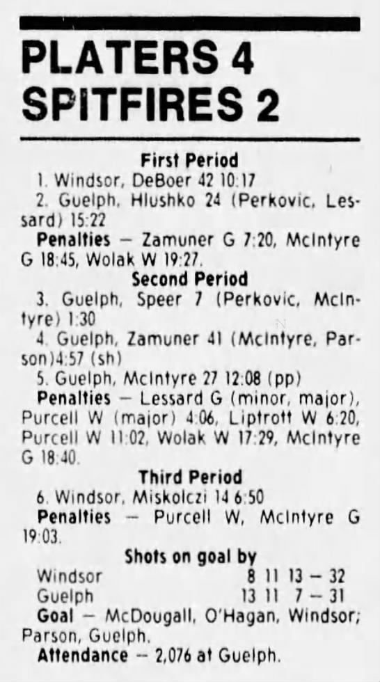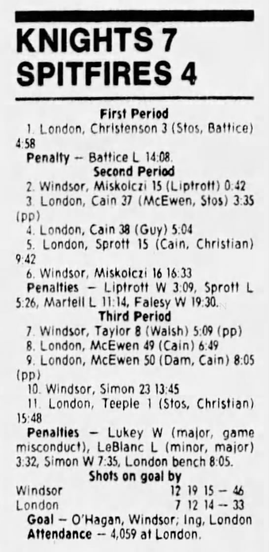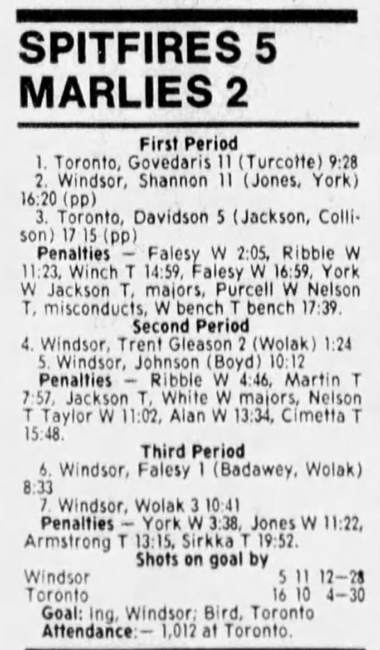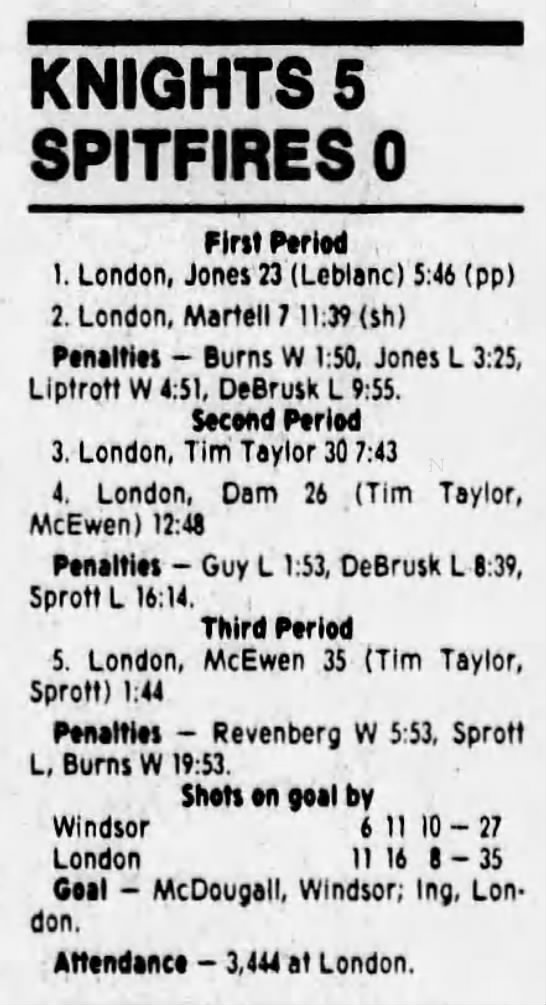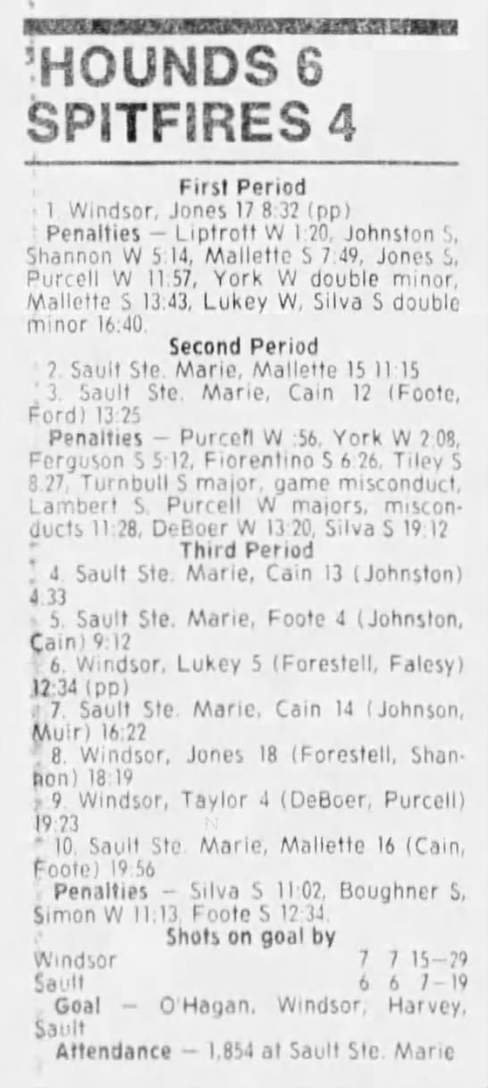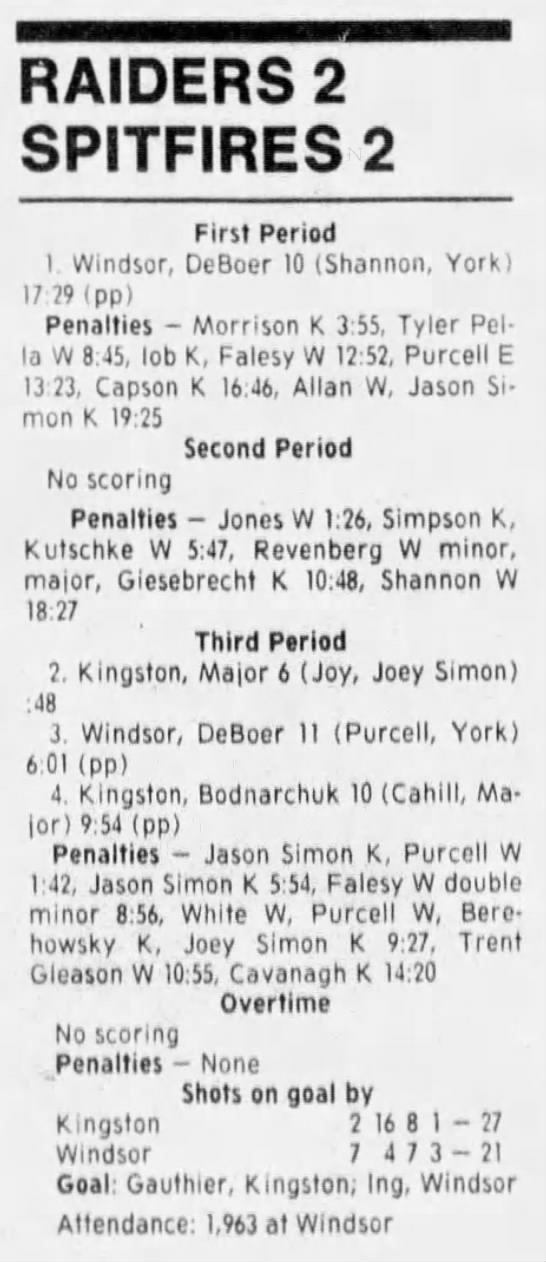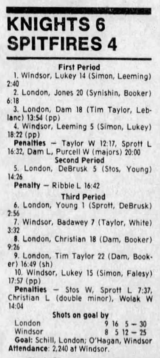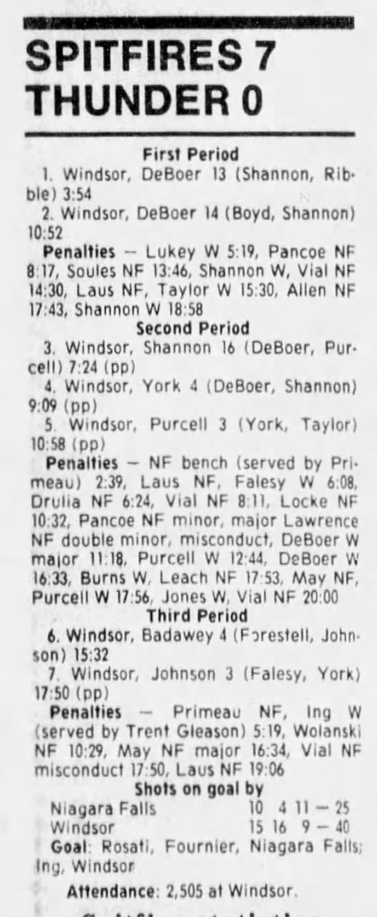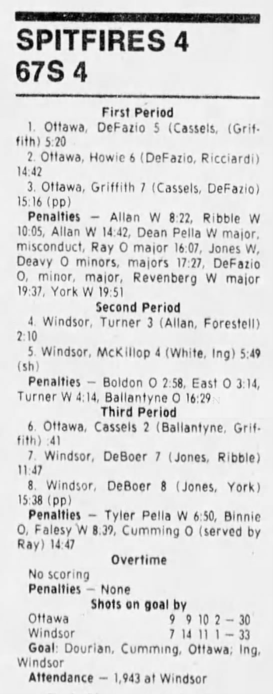 Here are the boxscores from the 1988-89 Windsor Spitfires season. There are a few that are missing, but many of them are here (69/70 boxscores). If you have any of the games that are missing, please send them my way.
