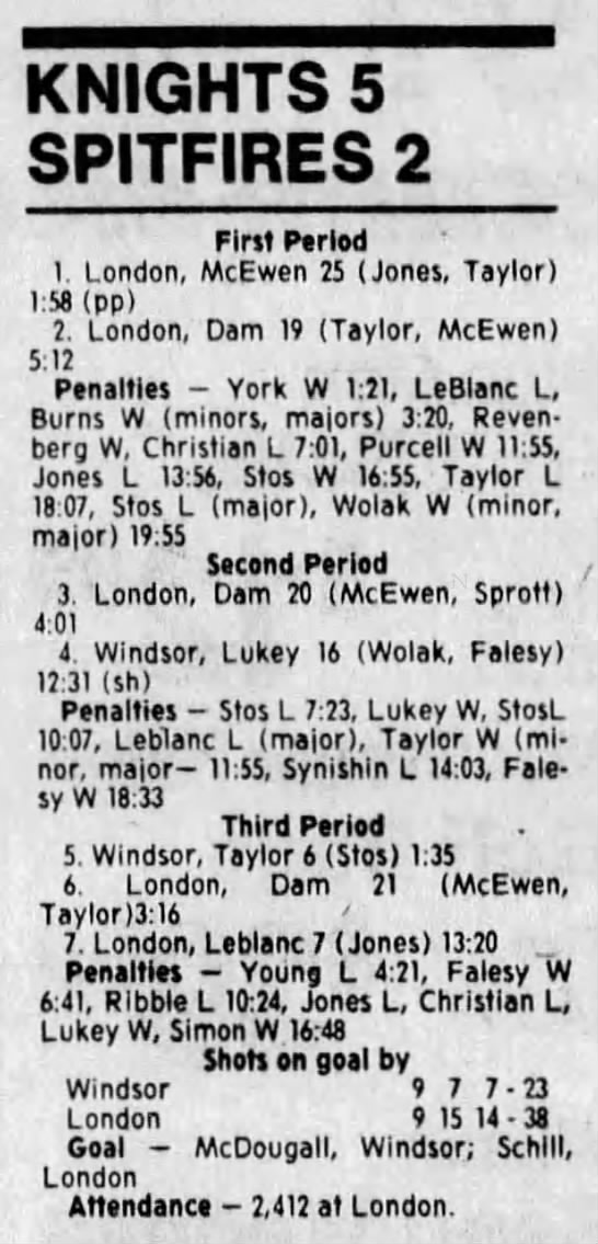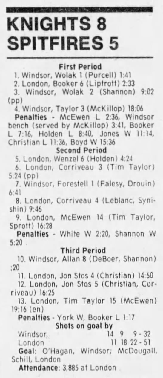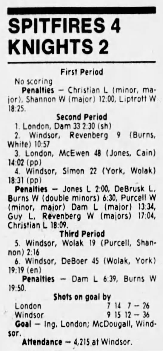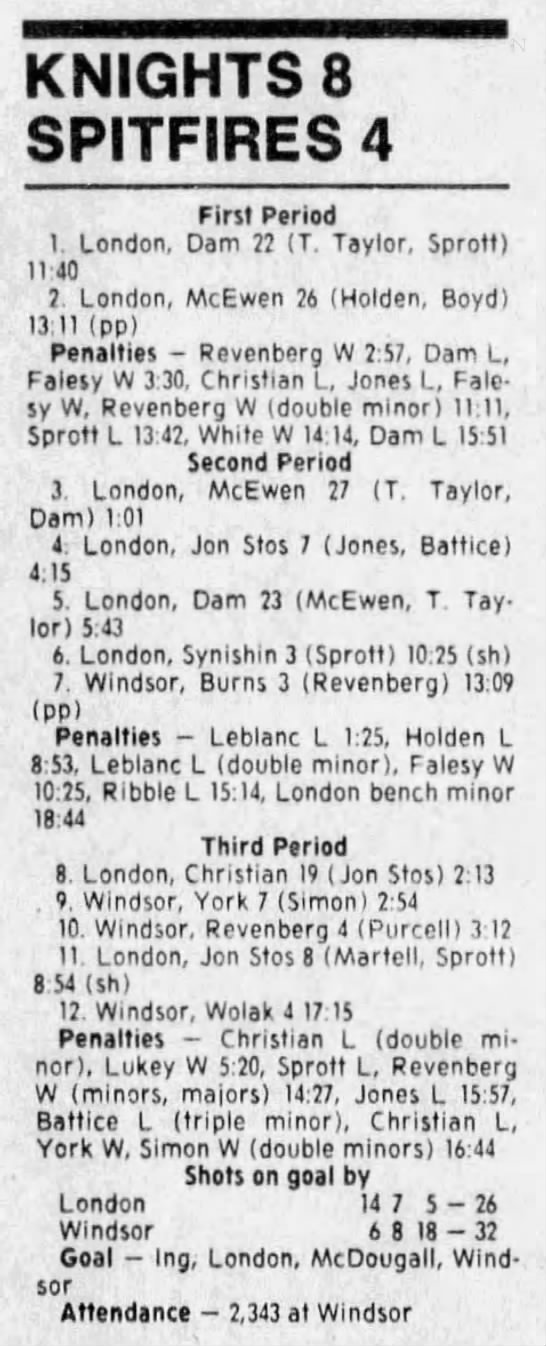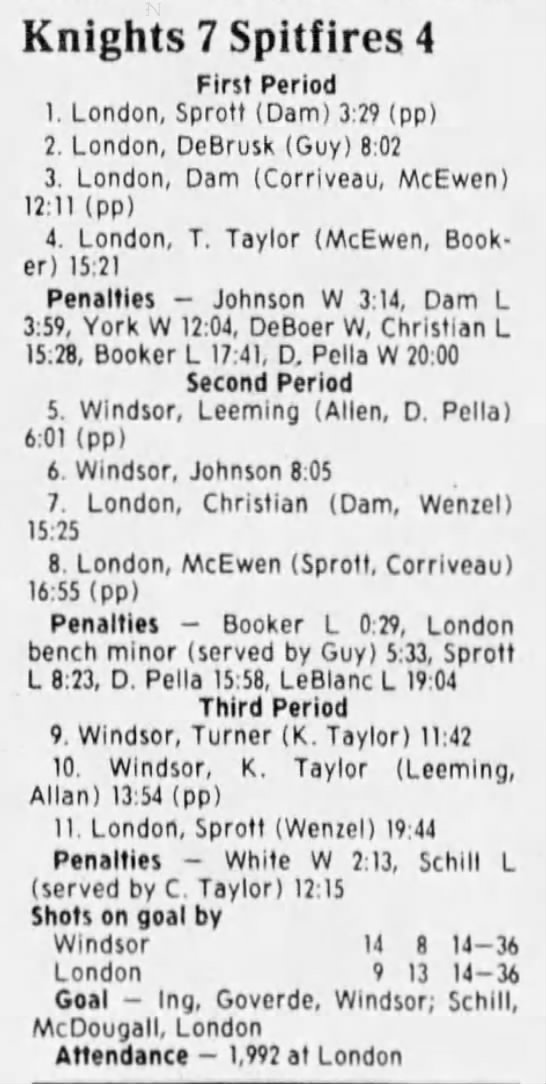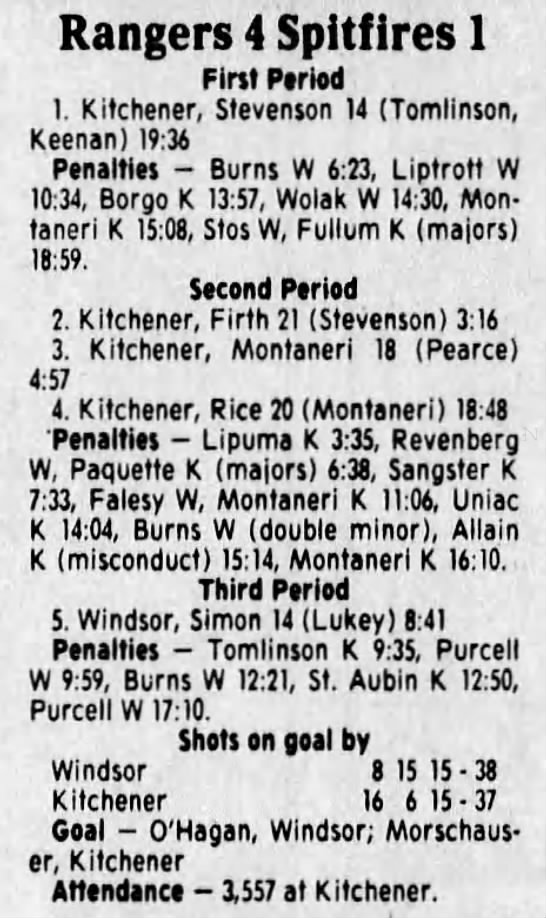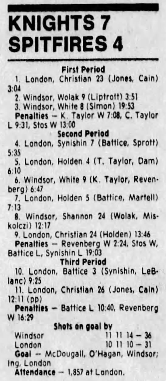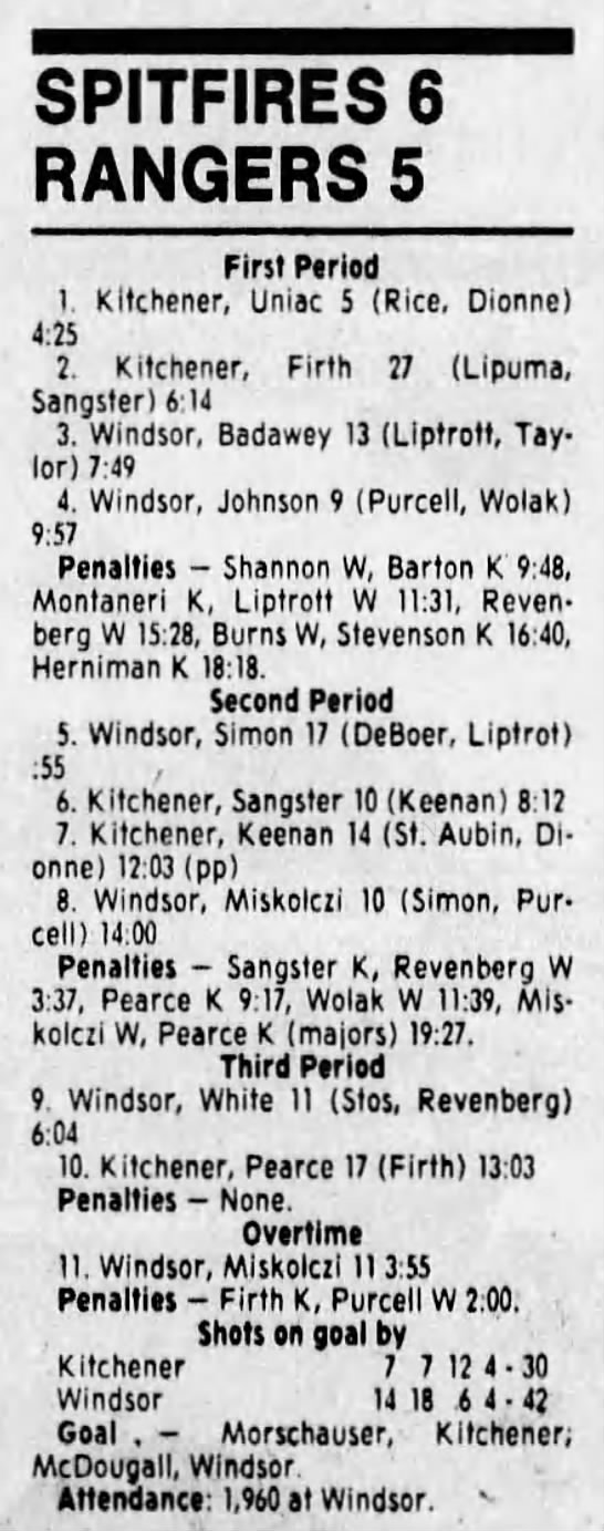 Here are the boxscores from the 1988-89 Windsor Spitfires season. There are a few that are missing, but many of them are here (69/70 boxscores). If you have any of the games that are missing, please send them my way.