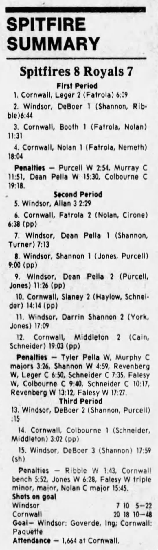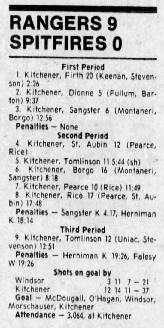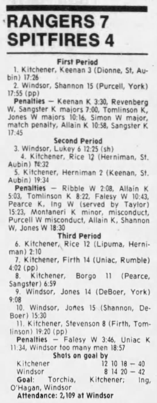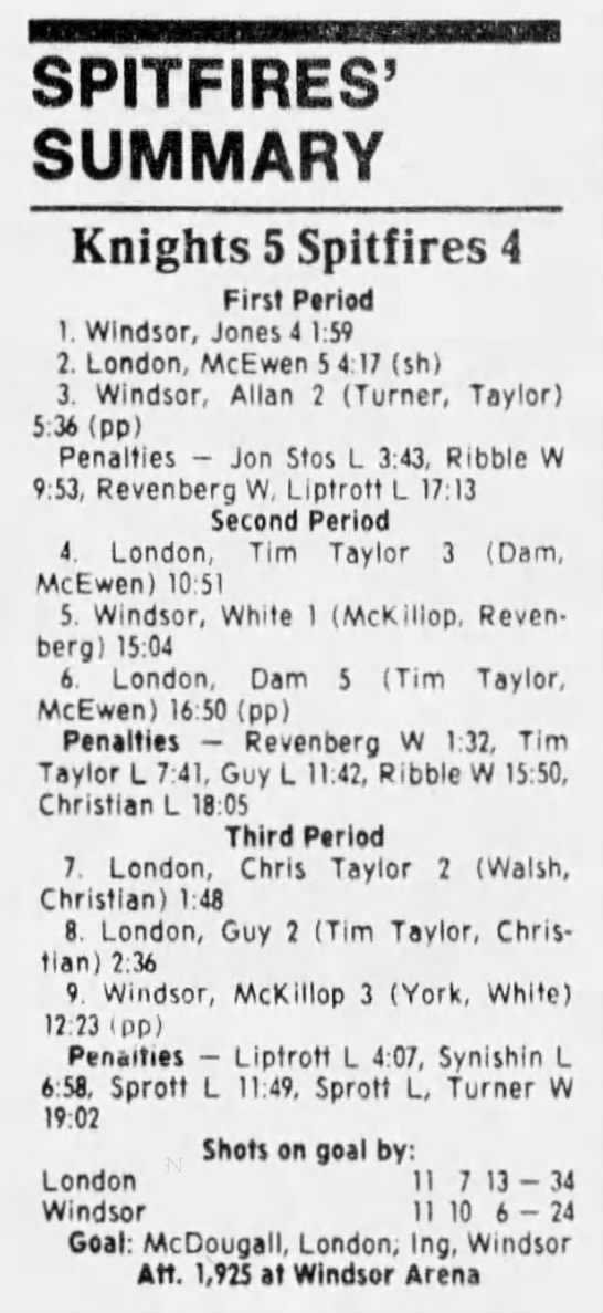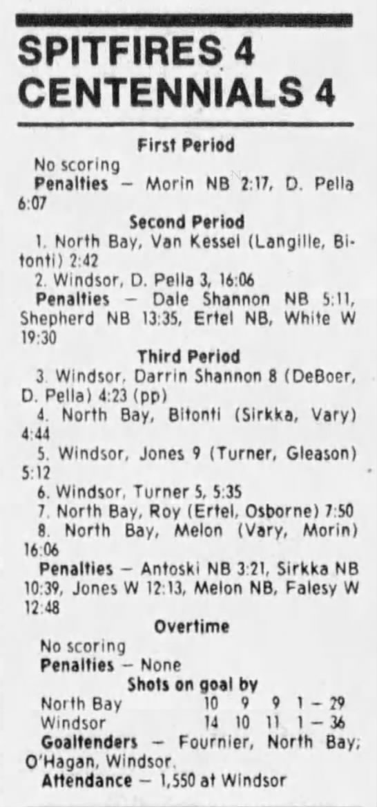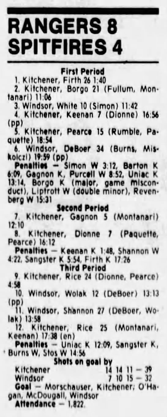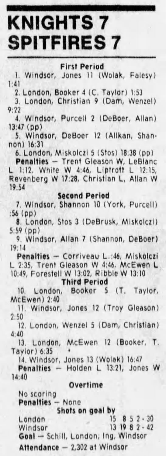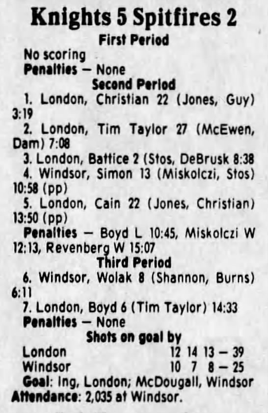 Here are the boxscores from the 1988-89 Windsor Spitfires season. There are a few that are missing, but many of them are here (69/70 boxscores). If you have any of the games that are missing, please send them my way.