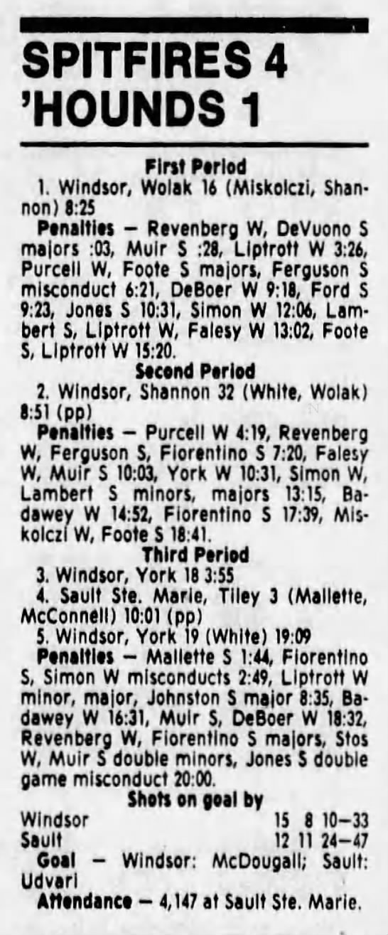 November 27 1988- Windsor @ Soo