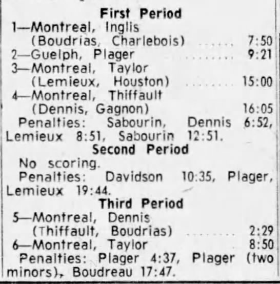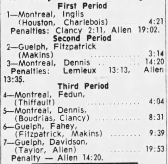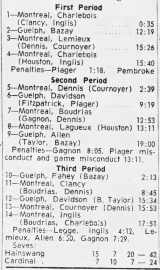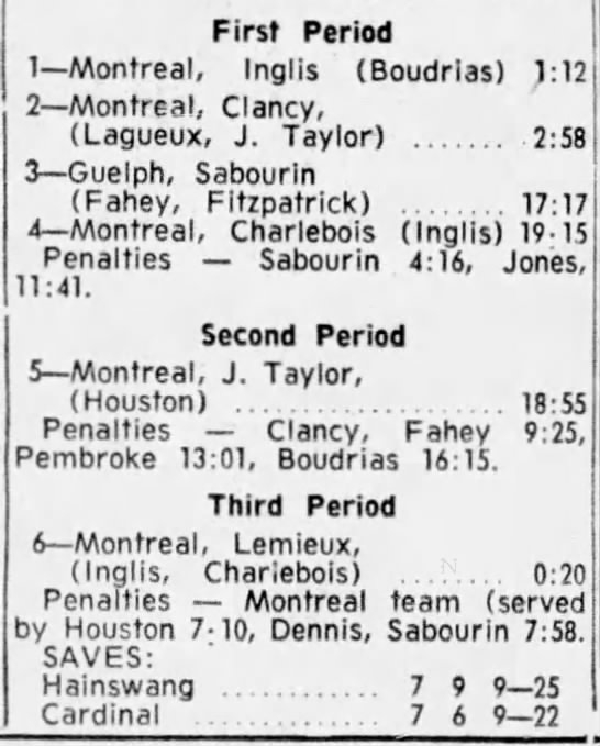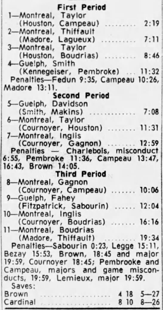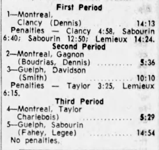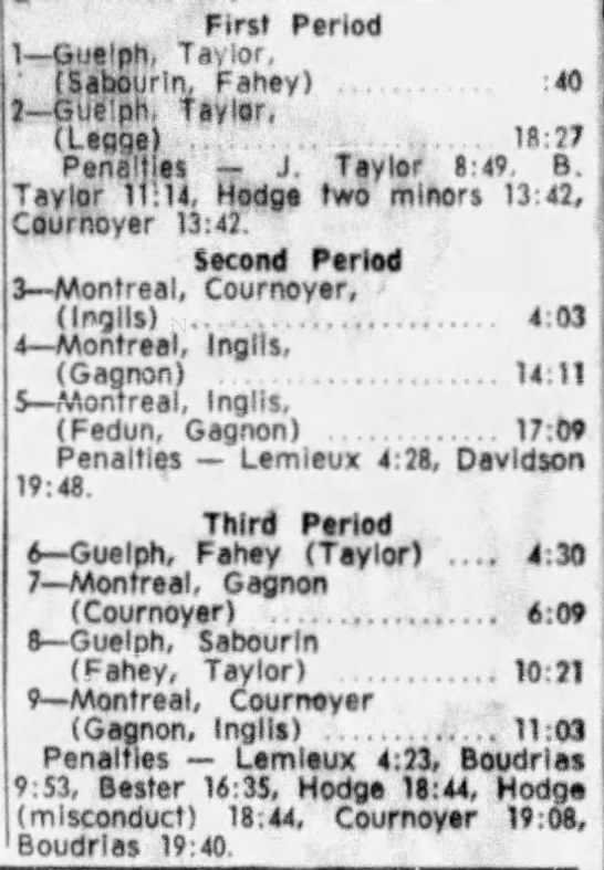 November 2 1962- Montreal @ Guelph (4-3 Montreal)