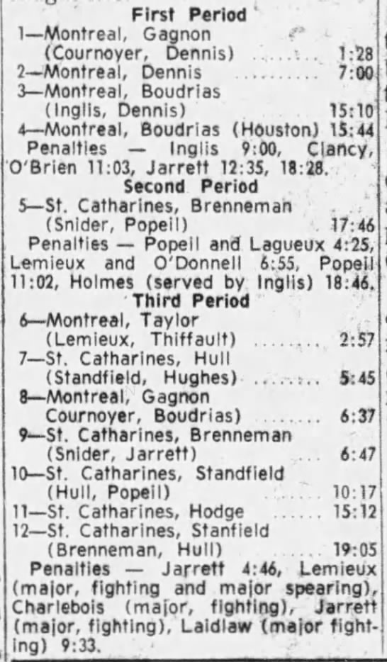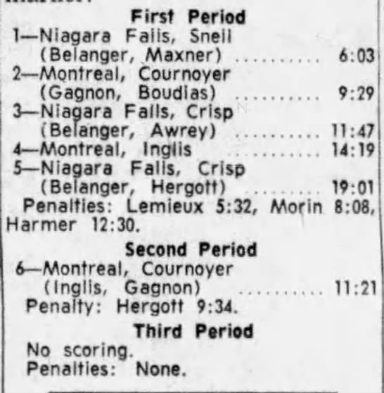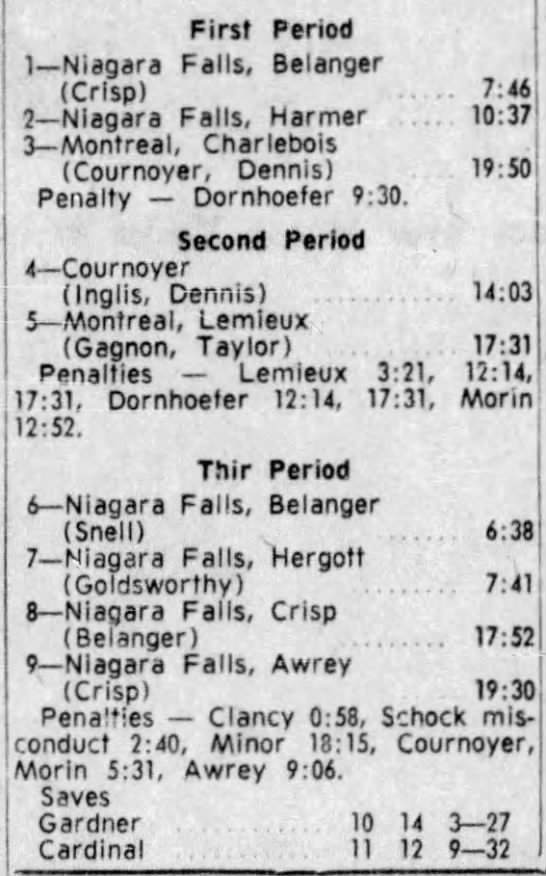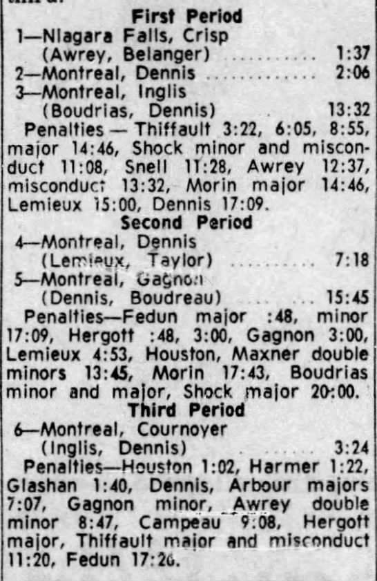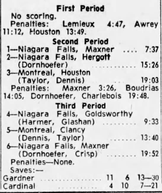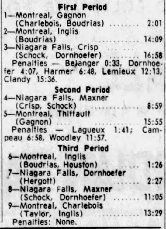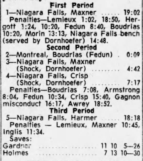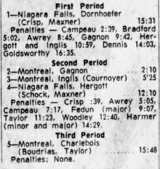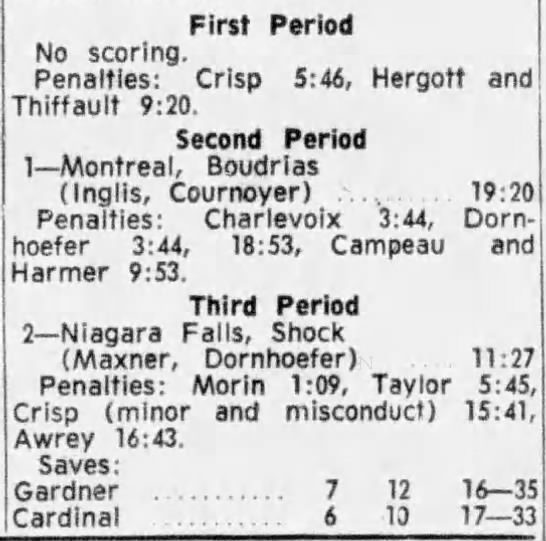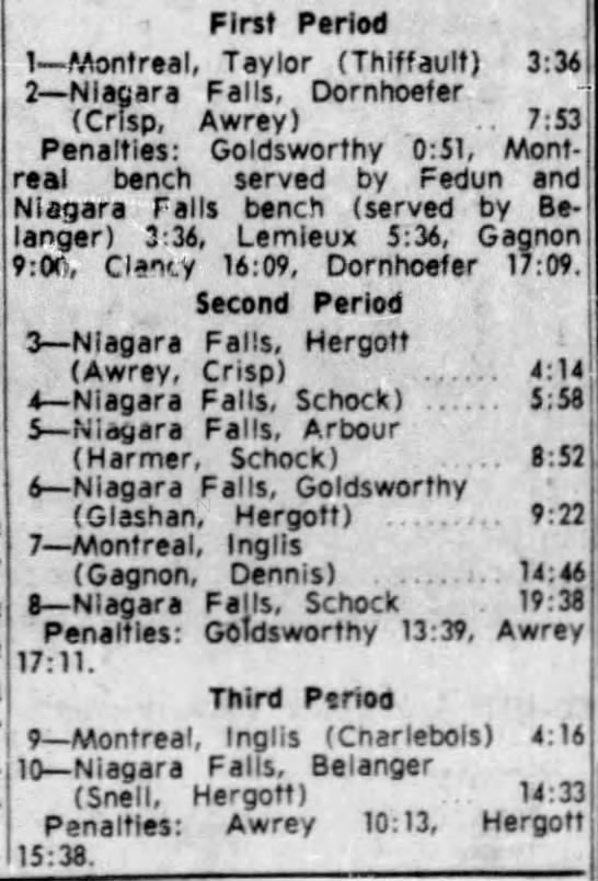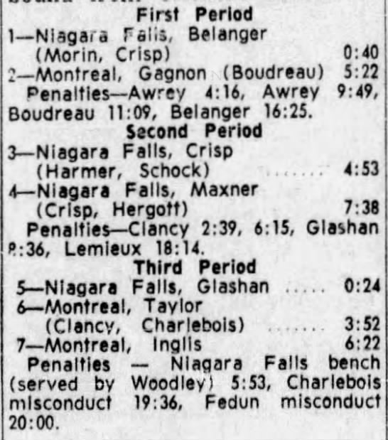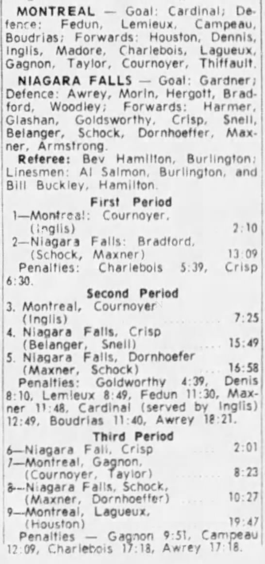 November 11 1962- Niagara Falls @ Montreal (4-2 Niagara Falls)