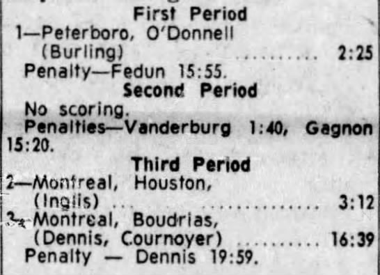 December 2 1962- Peterborough @ Montreal (3-2 Montreal)