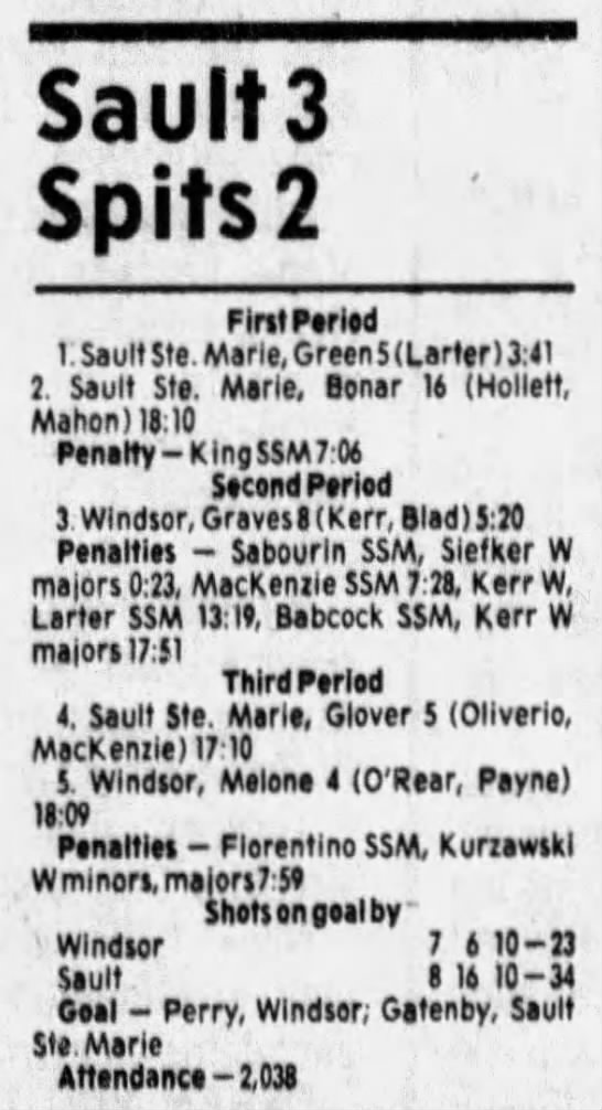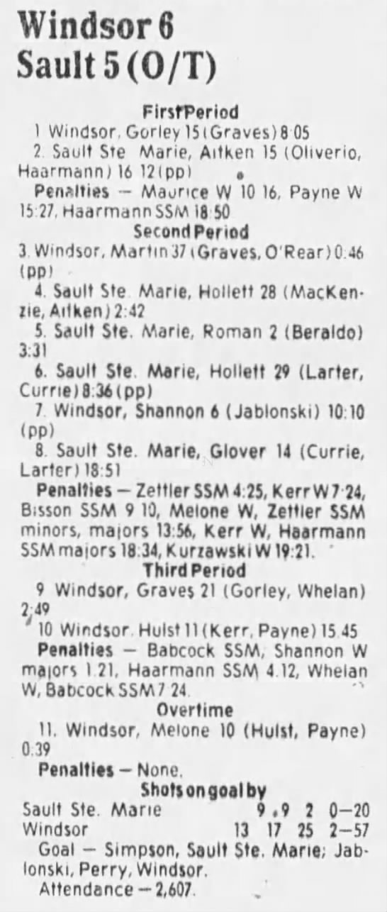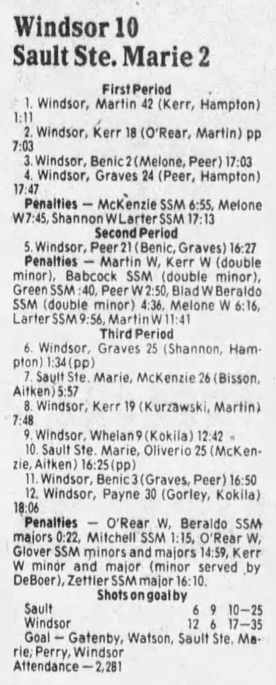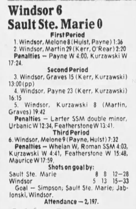 December 1 1985- Windsor @ Soo