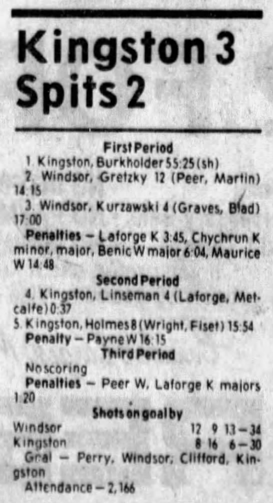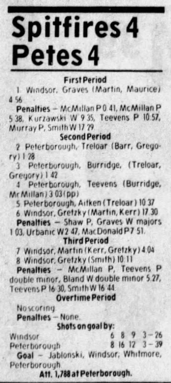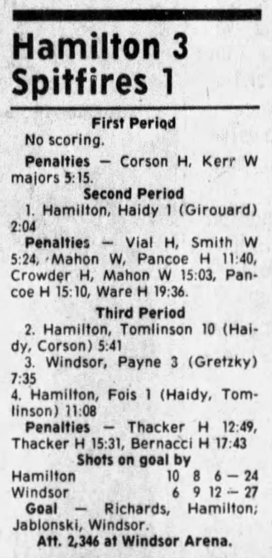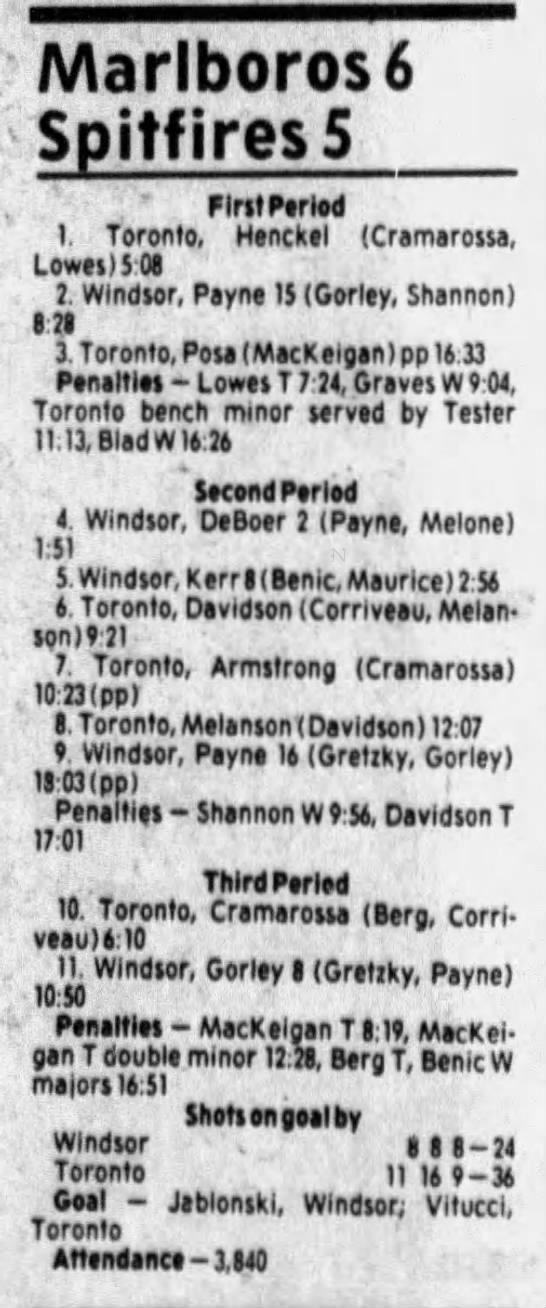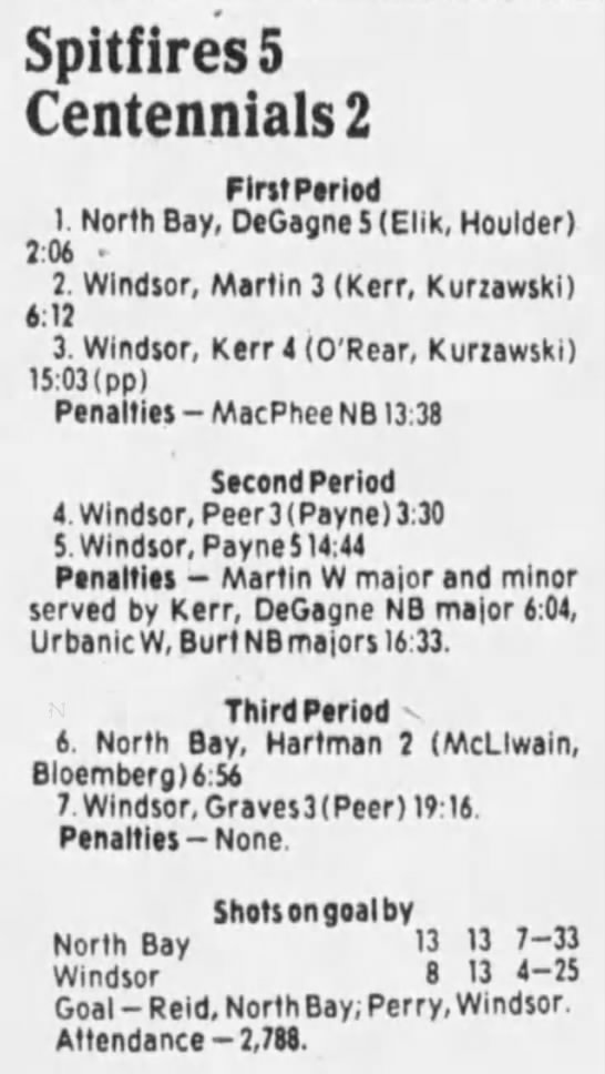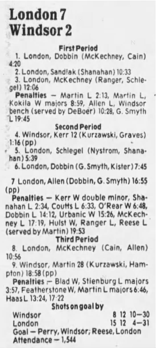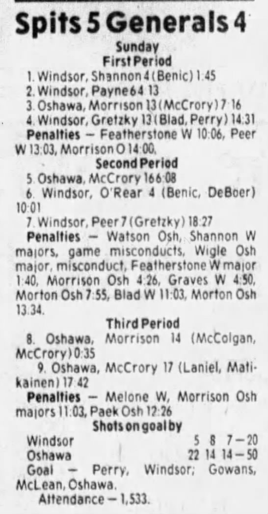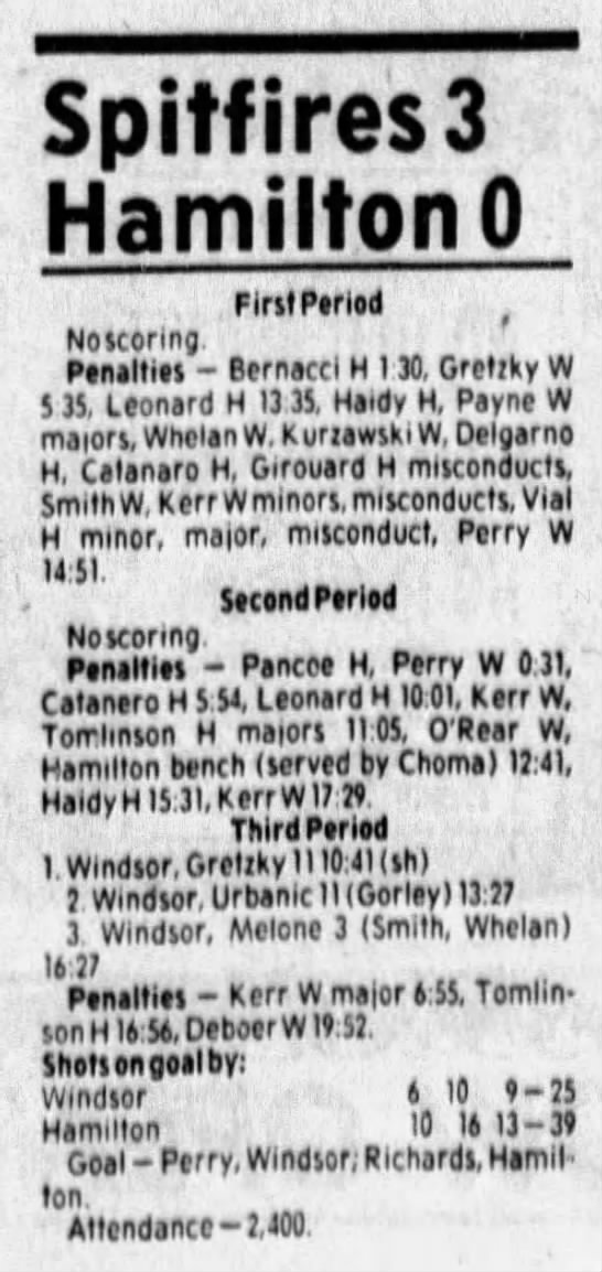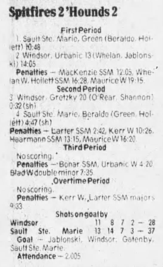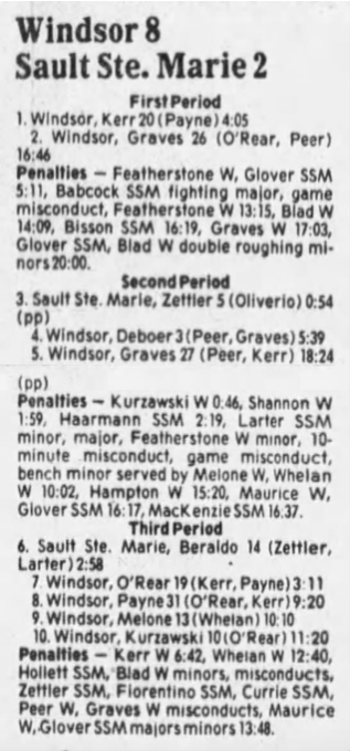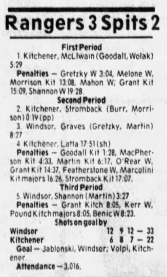 Here are the boxscores from the 1985-86 Windsor Compuware Spitfires season. There is one that is missing, but many of them are here (81/82 boxscores). If you have any of the games that are missing, please send them my way.