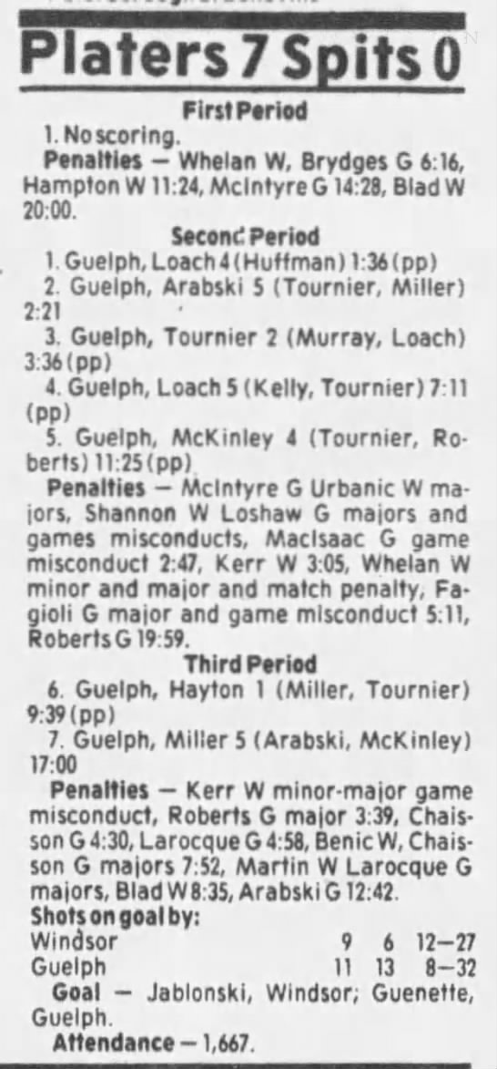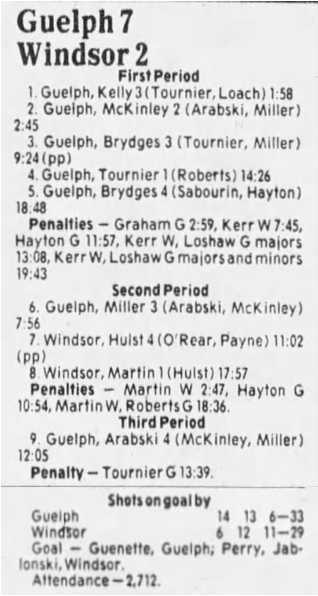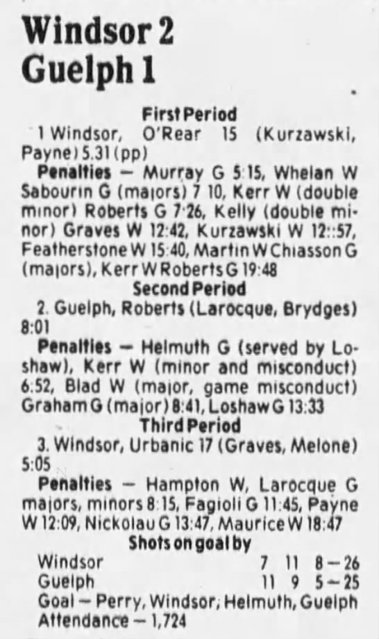 October 6 1985- Windsor @ Guelph (5-2 Guelph)