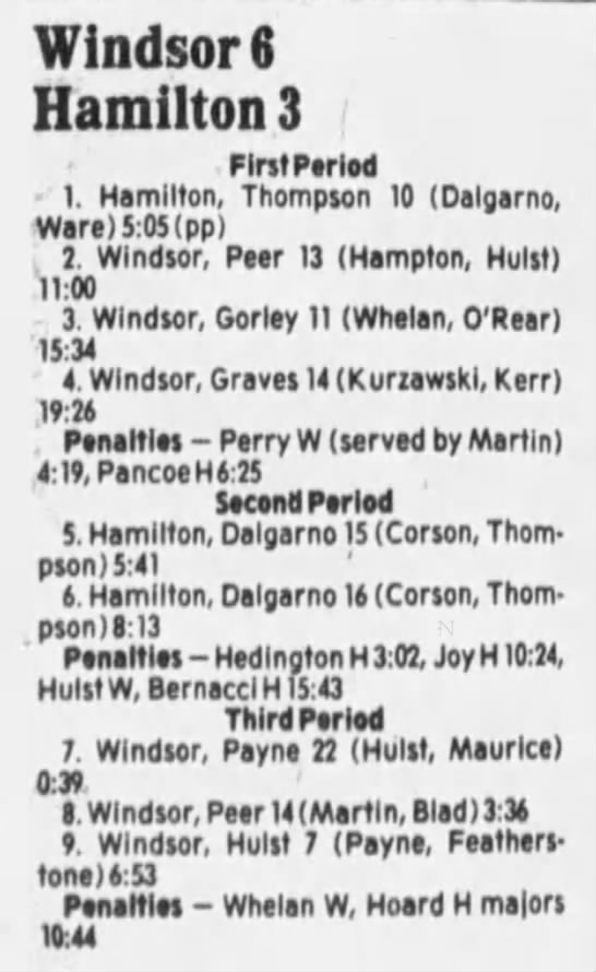 March 9 1986- Windsor @ Hamilton