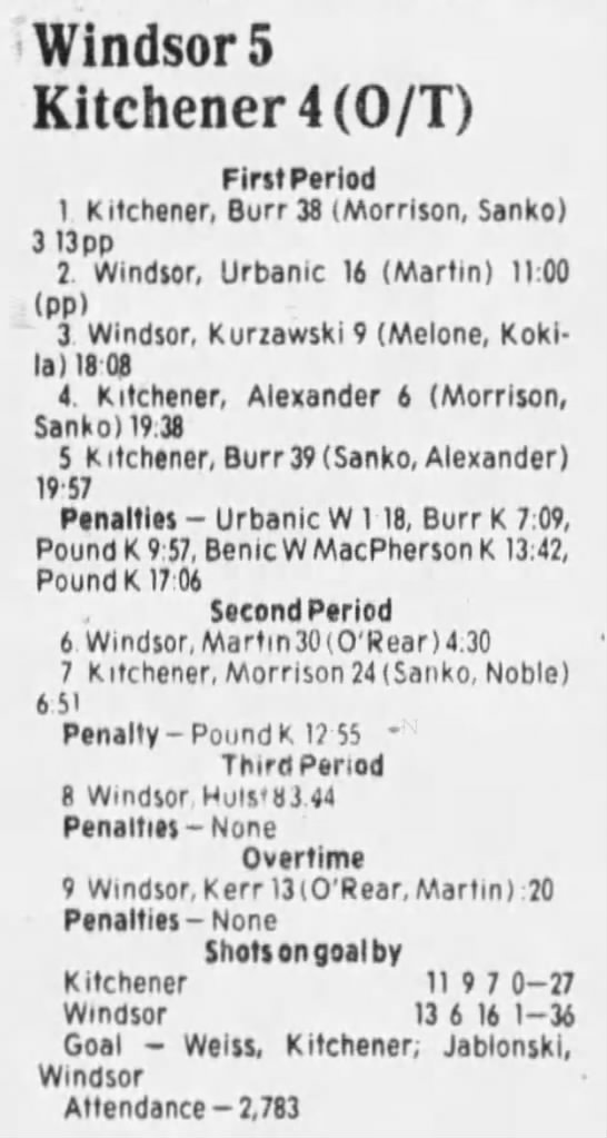 Game 5- March 30 1986- Kitchener @ Windsor