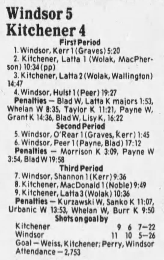 February 9 1986- Kitchener @ Windsor
