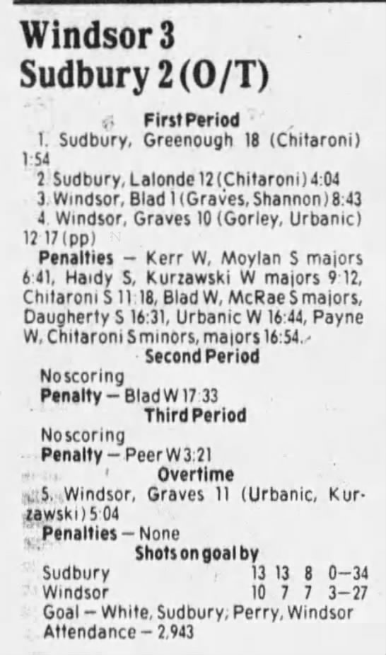 January 3 1986- Windsor @ Sudbury
