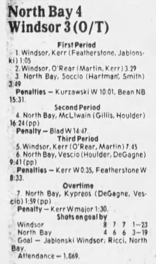 January 2 1986- Windsor @ North Bay