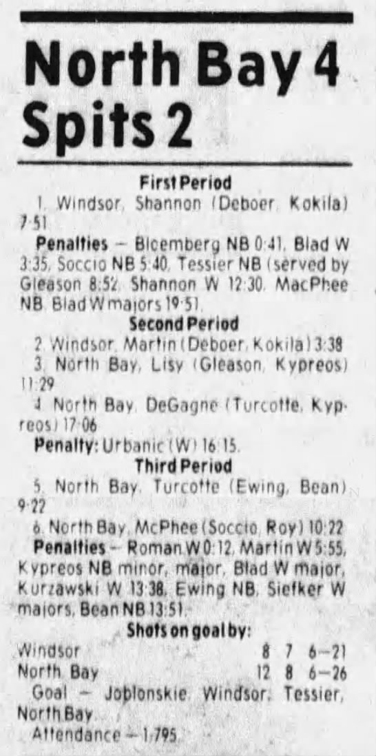 September 26 1985- Windsor @ North Bay