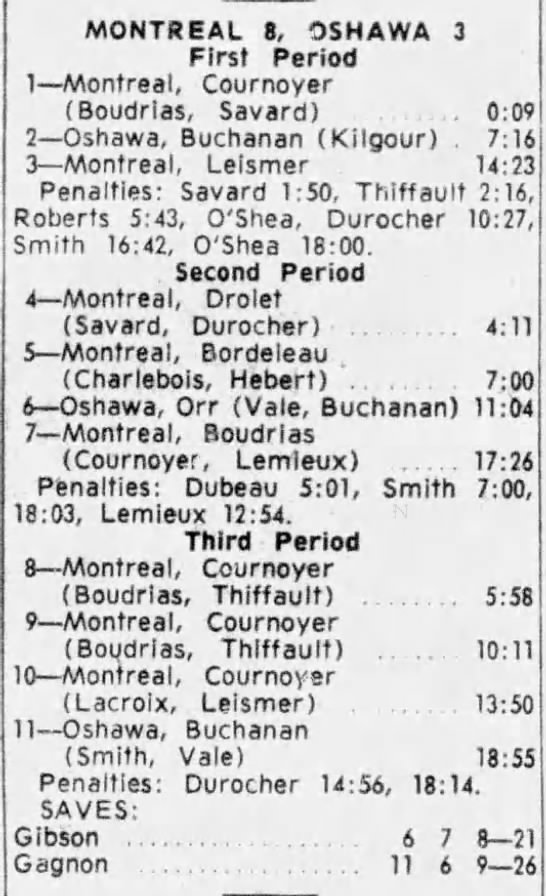 Here are the boxscores from the 1963-64 Montreal Junior Canadiens season. All boxscores from this season are here (73/73 boxscores). If you have any of the games that are missing, please send them my way.