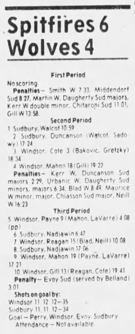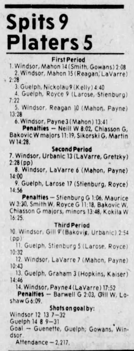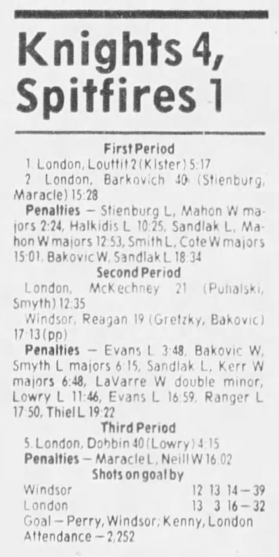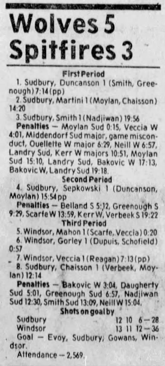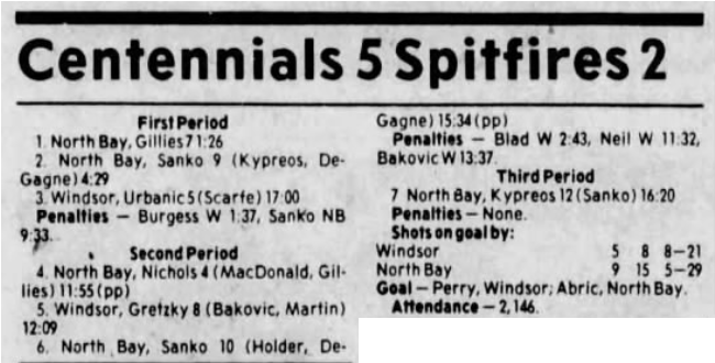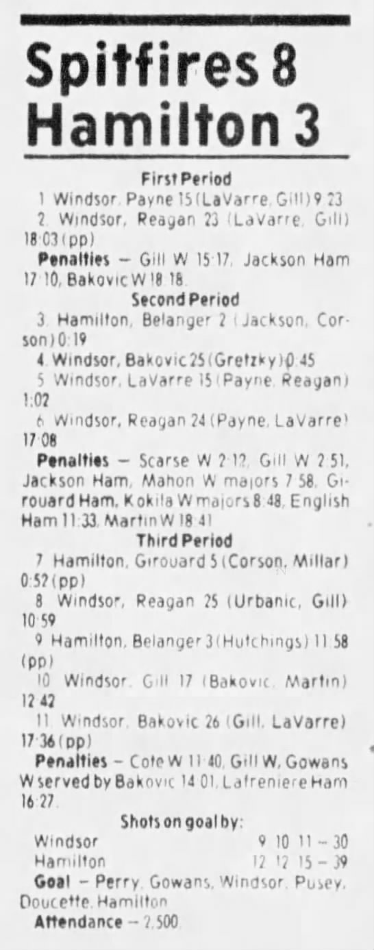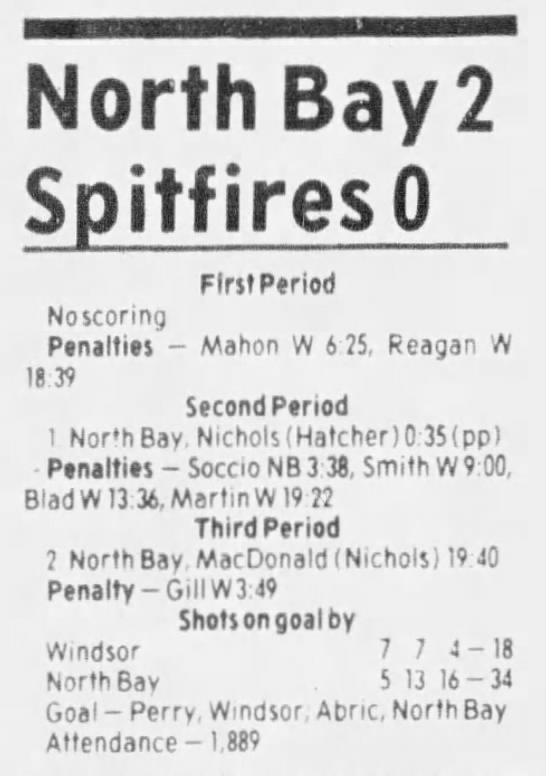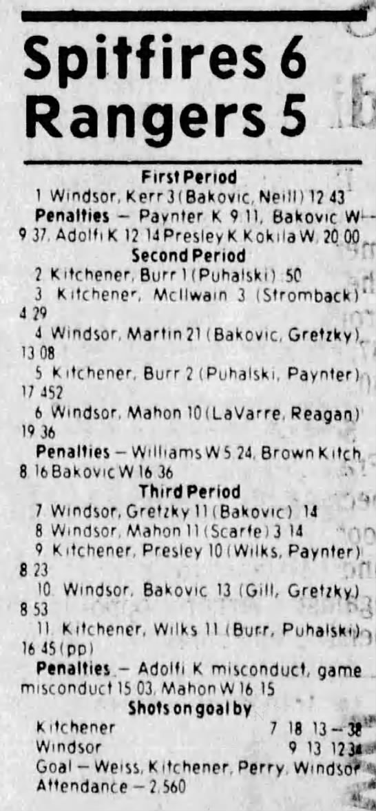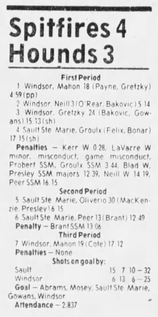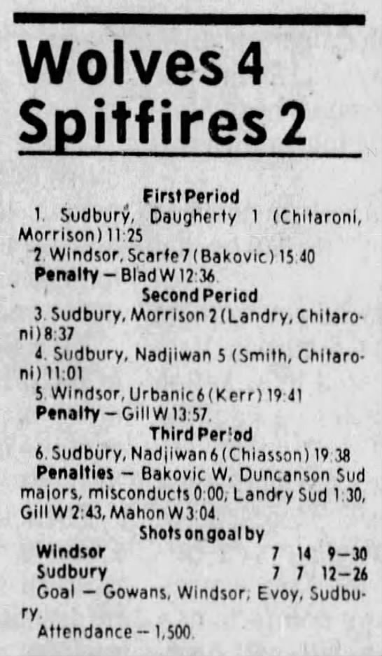 Here are the boxscores from the 1984-85 Windsor Compuware Spitfires season. There are a couple that are missing, but many of them are here (69/70 boxscores). If you have any of the games that are missing, please send them my way.