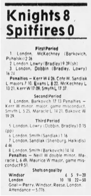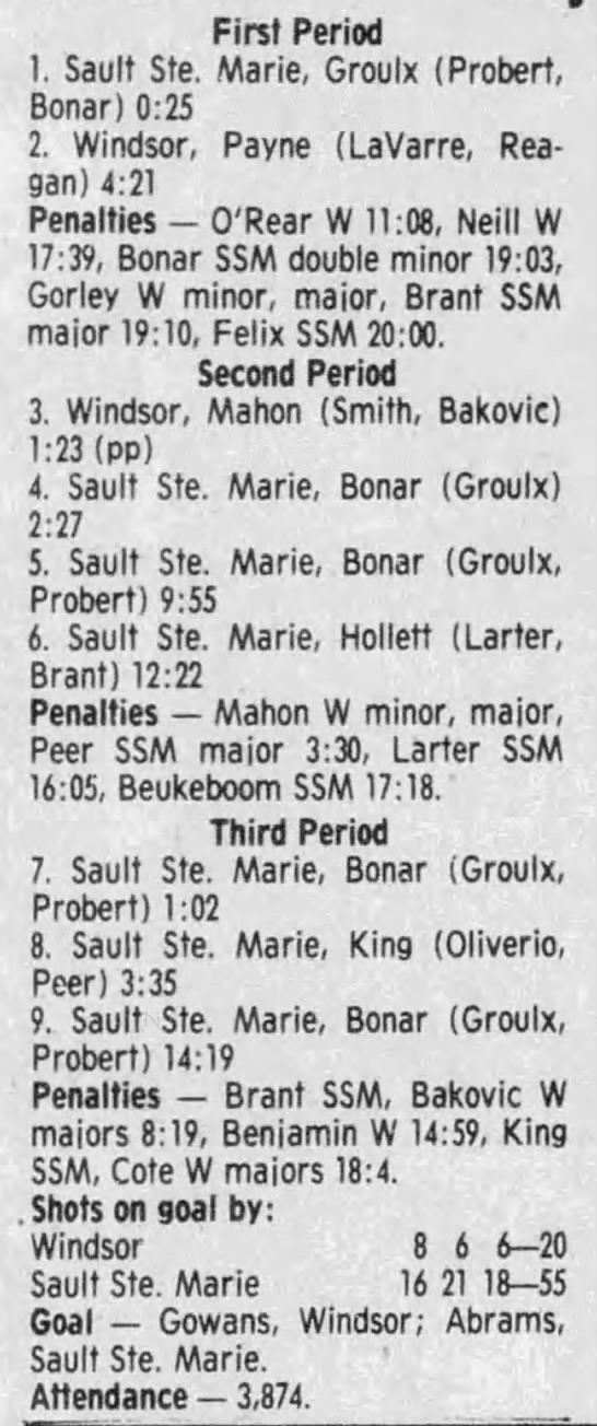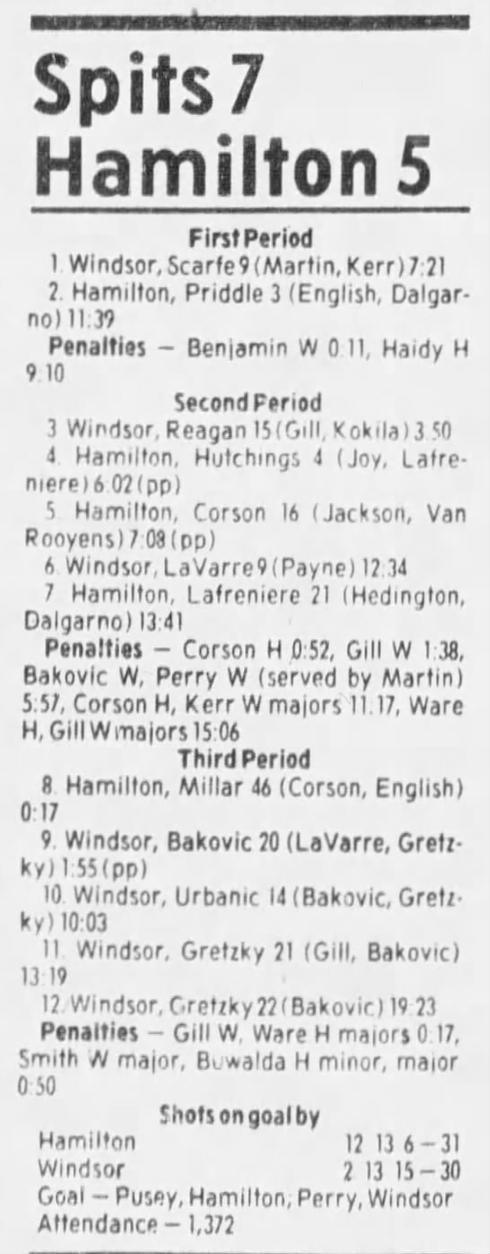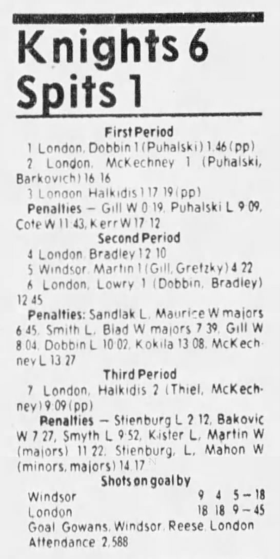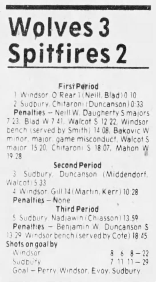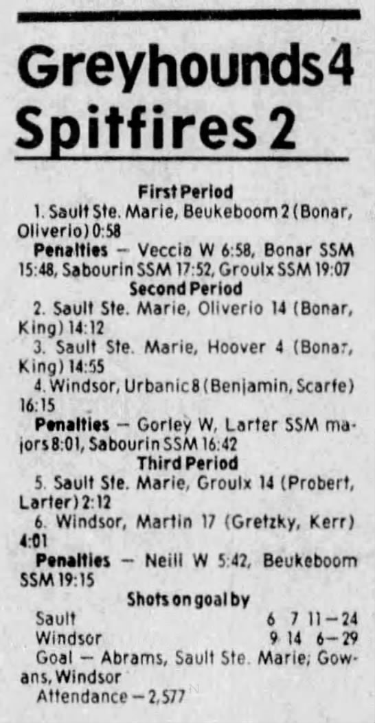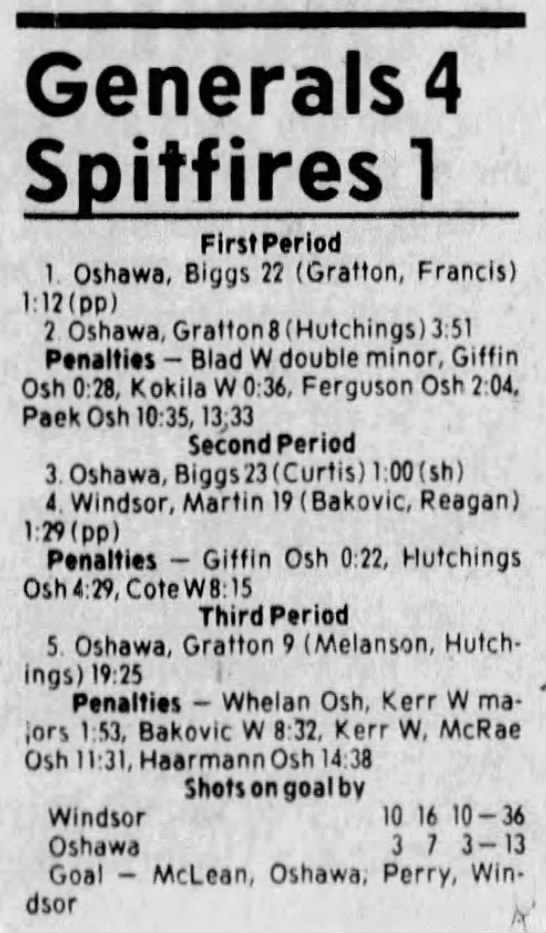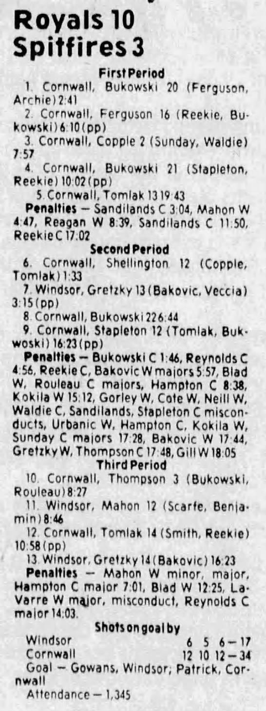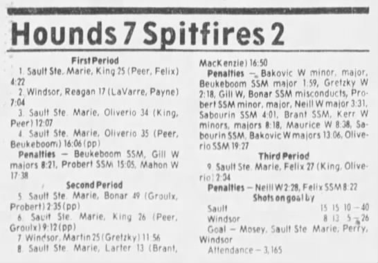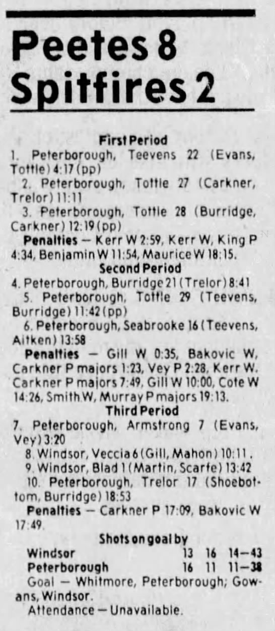 Here are the boxscores from the 1984-85 Windsor Compuware Spitfires season. There are a couple that are missing, but many of them are here (69/70 boxscores). If you have any of the games that are missing, please send them my way.