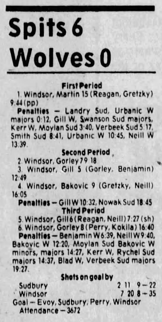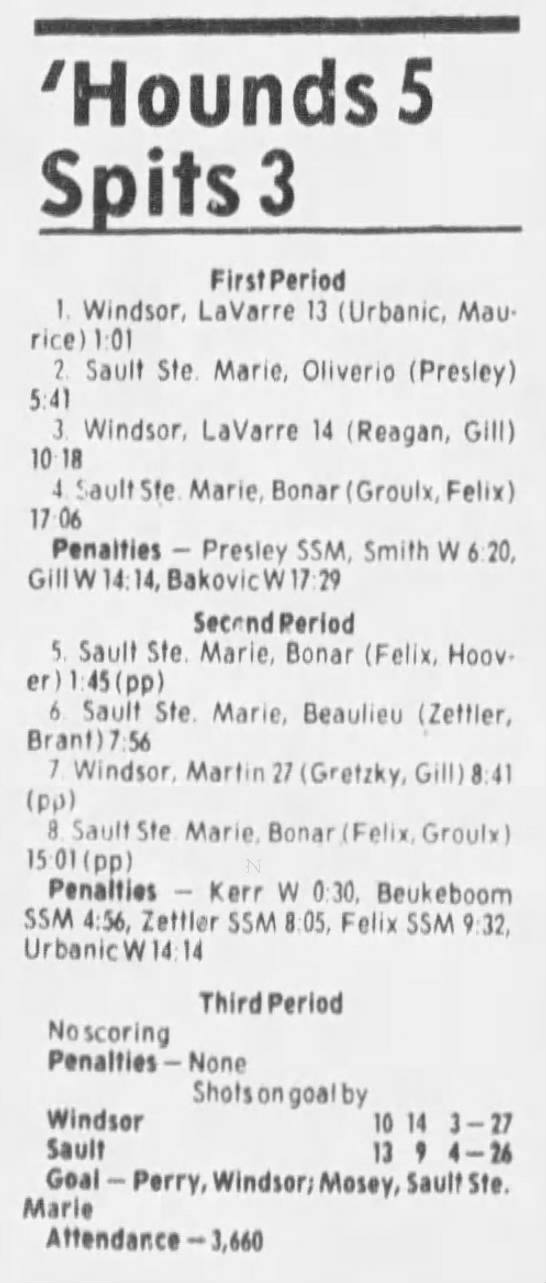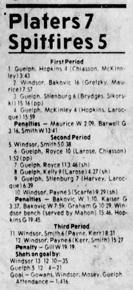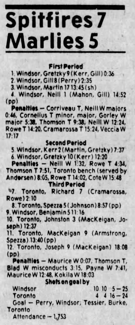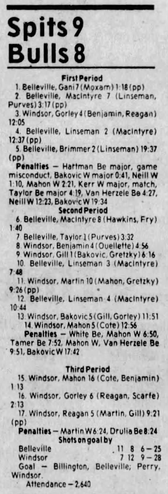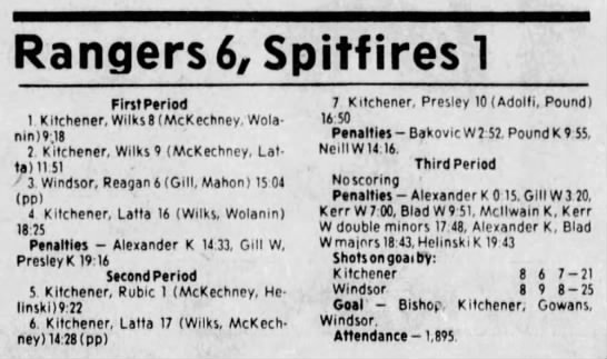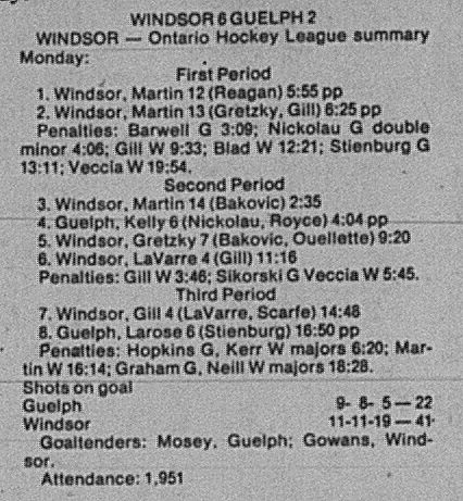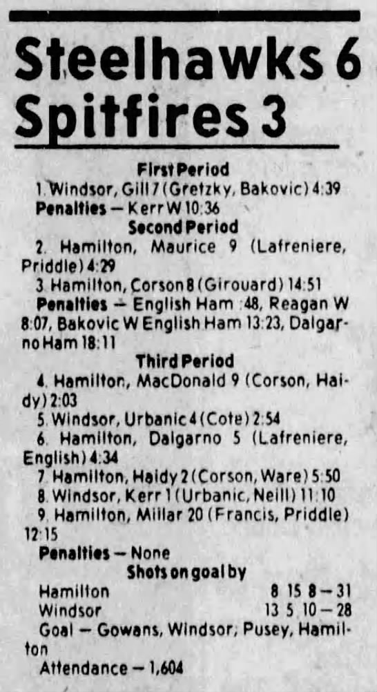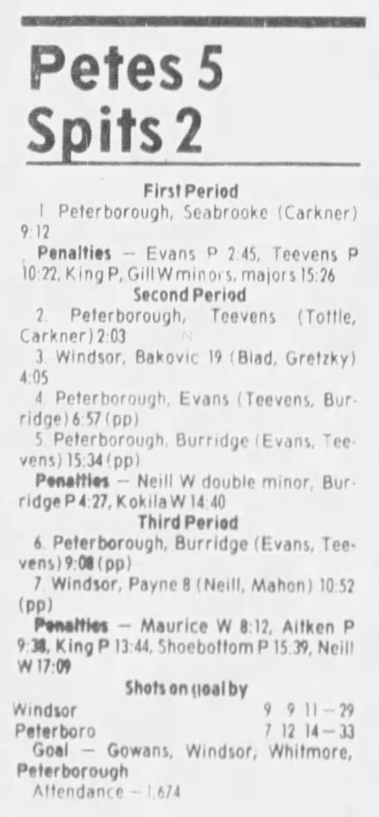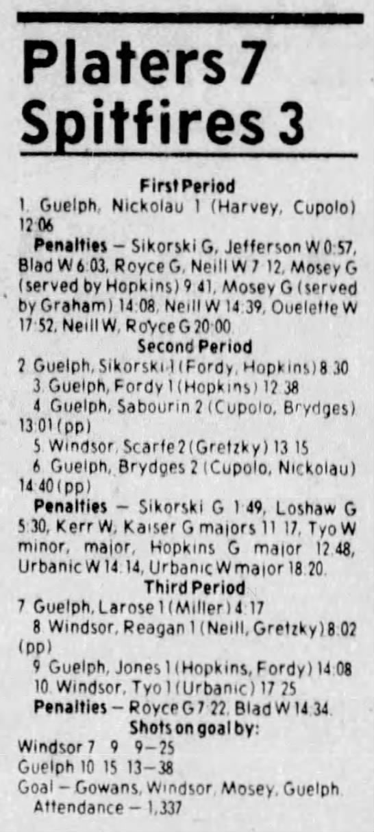 Here are the boxscores from the 1984-85 Windsor Compuware Spitfires season. There are a couple that are missing, but many of them are here (69/70 boxscores). If you have any of the games that are missing, please send them my way.