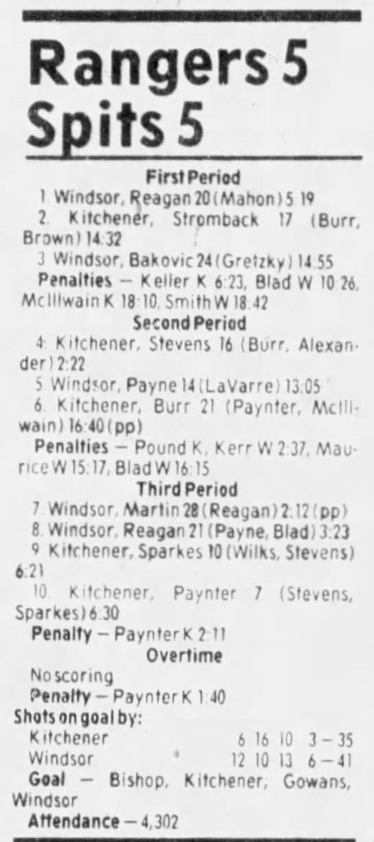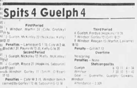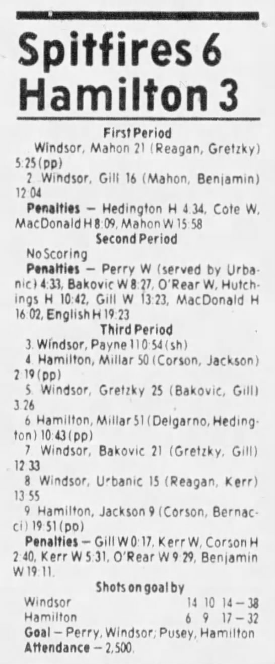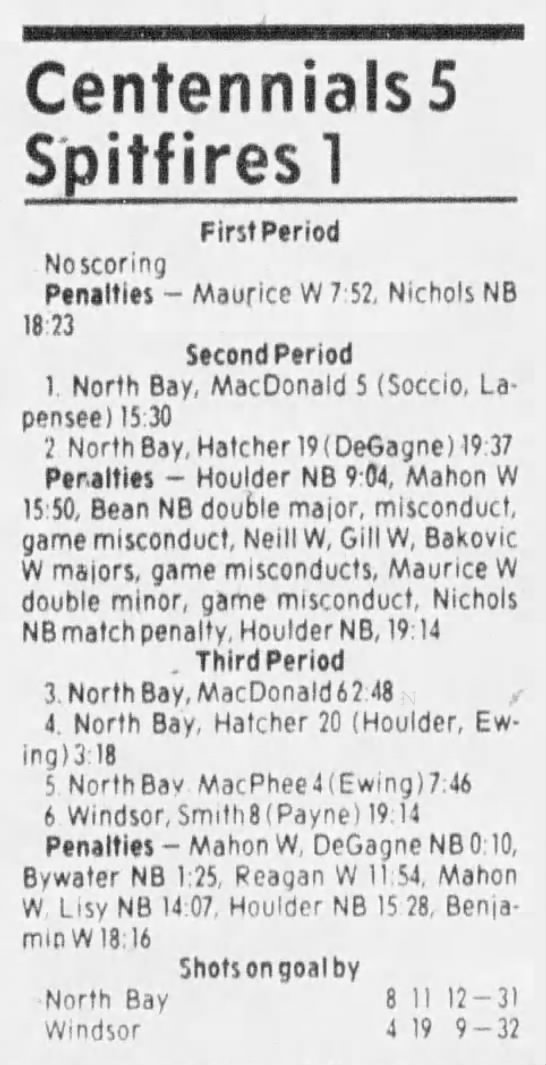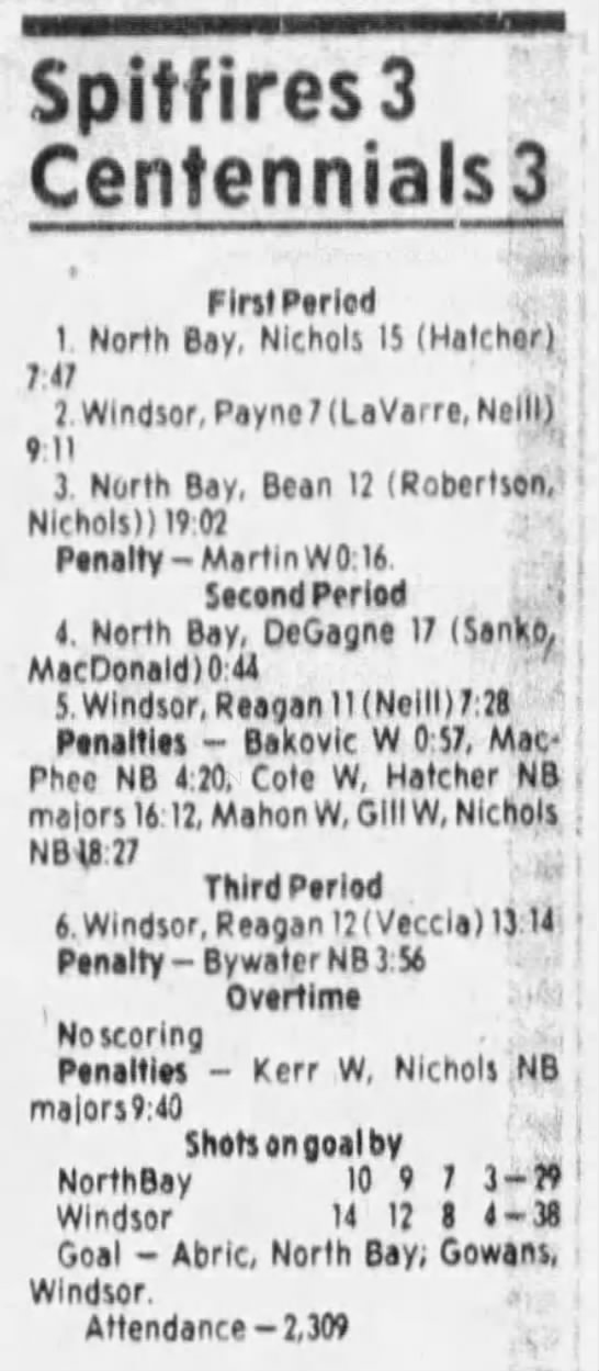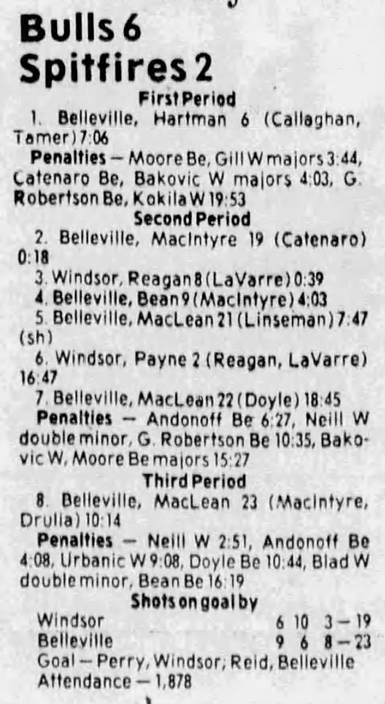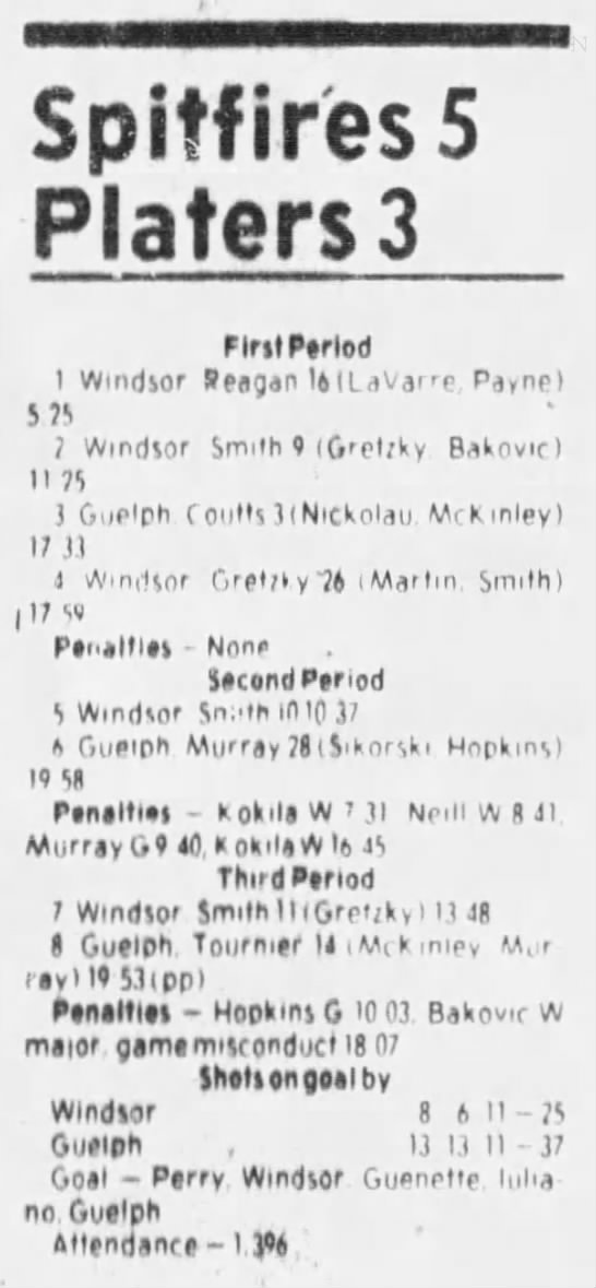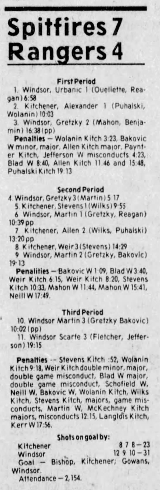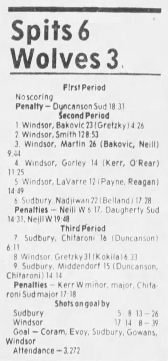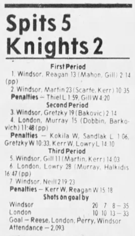 Here are the boxscores from the 1984-85 Windsor Compuware Spitfires season. There are a couple that are missing, but many of them are here (69/70 boxscores). If you have any of the games that are missing, please send them my way.