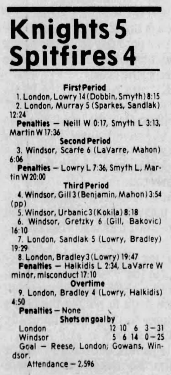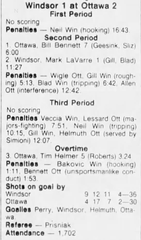 Game 2- March 21 1985- London @ Windsor (3-2 London)