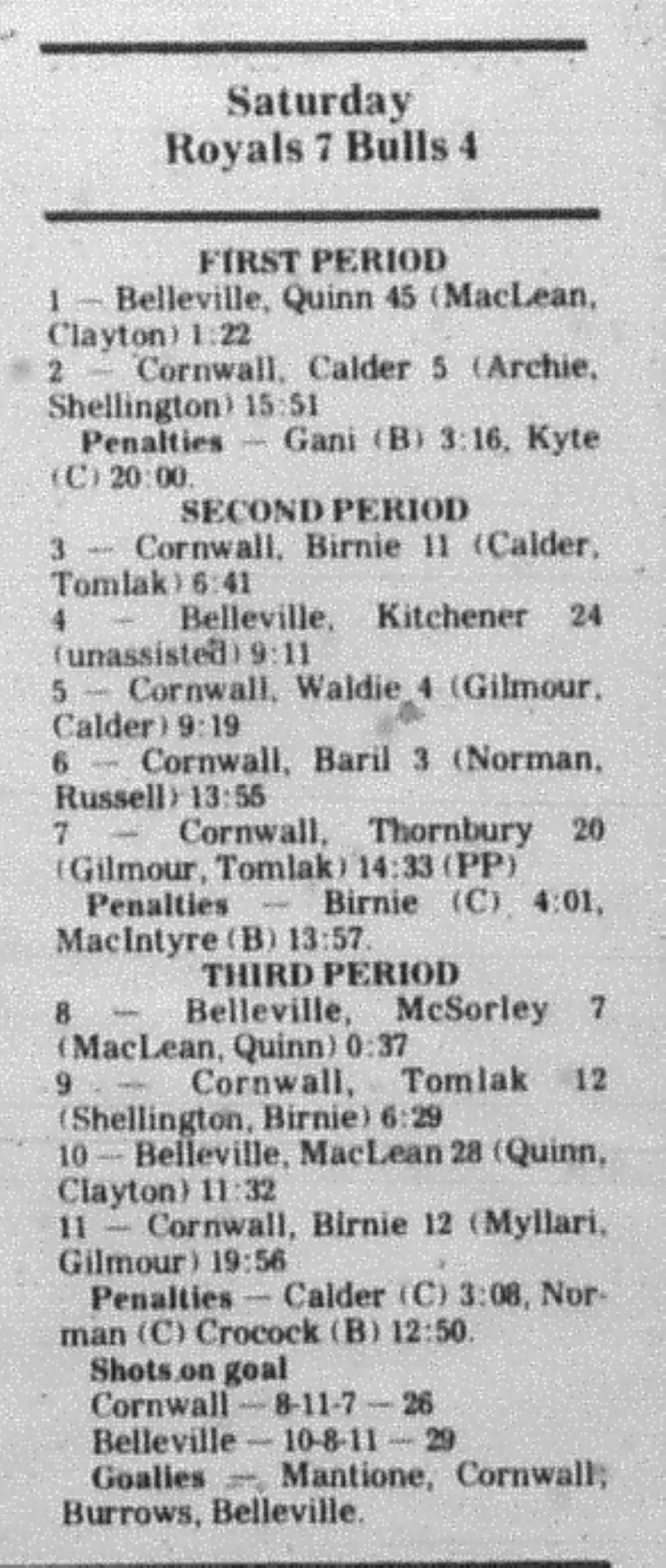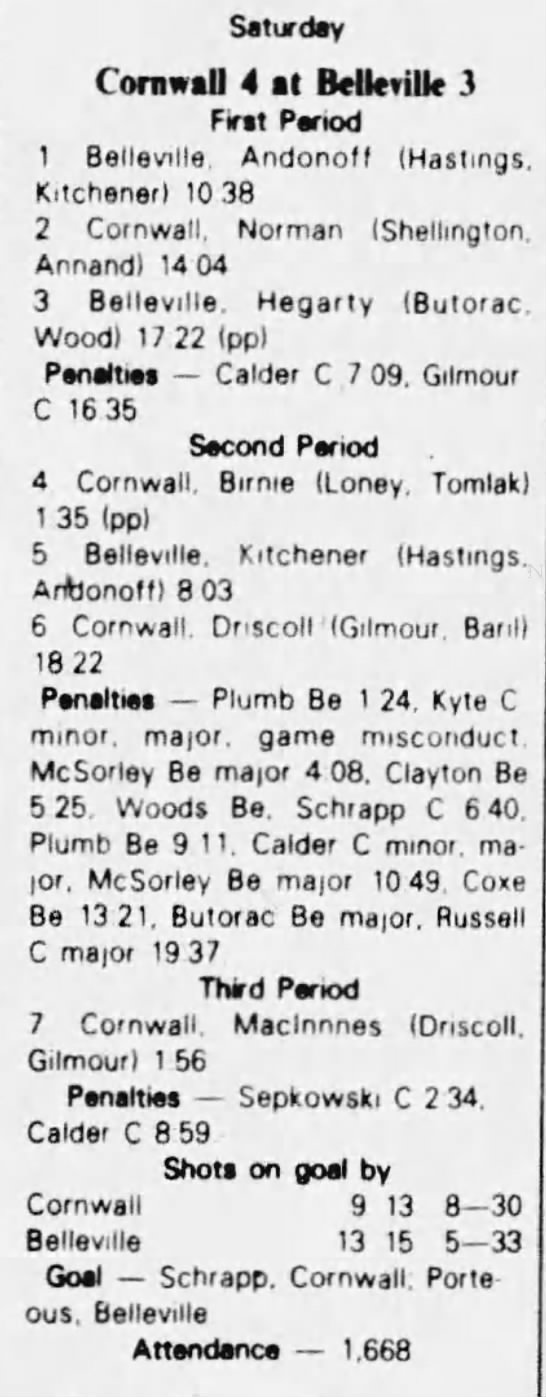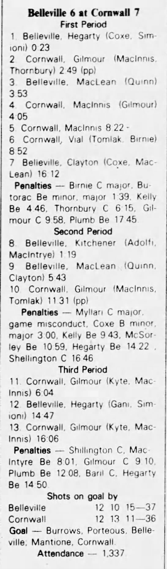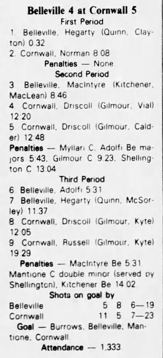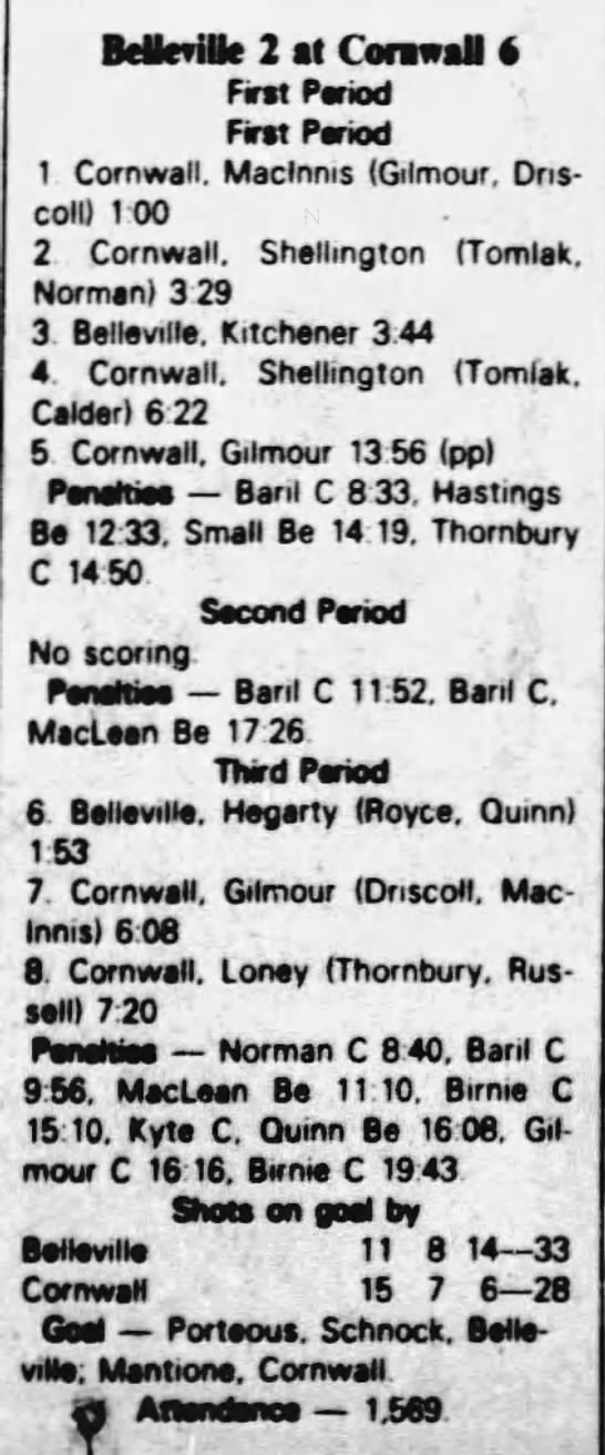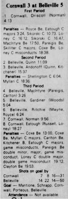 February 5 1983- Cornwall @ Belleville