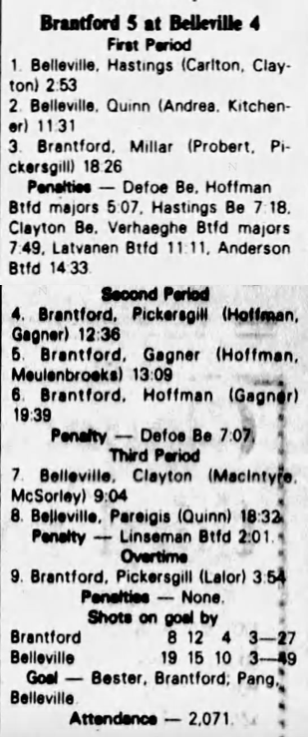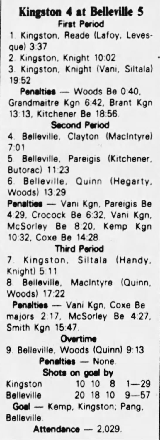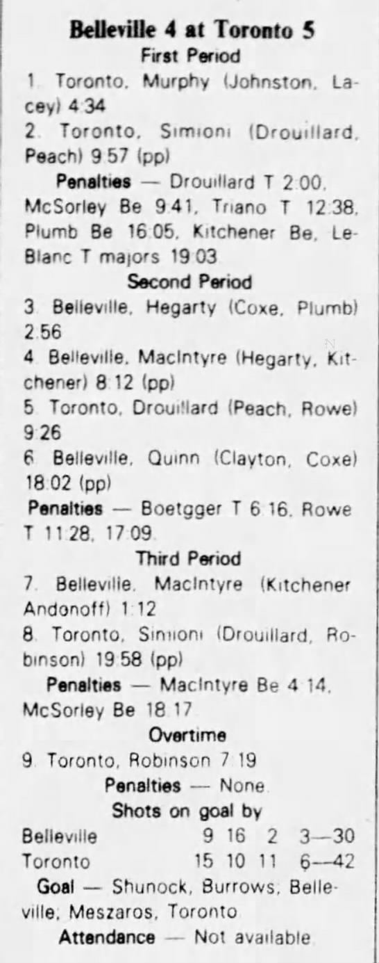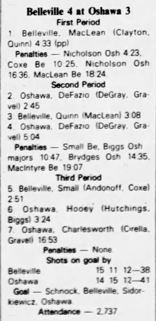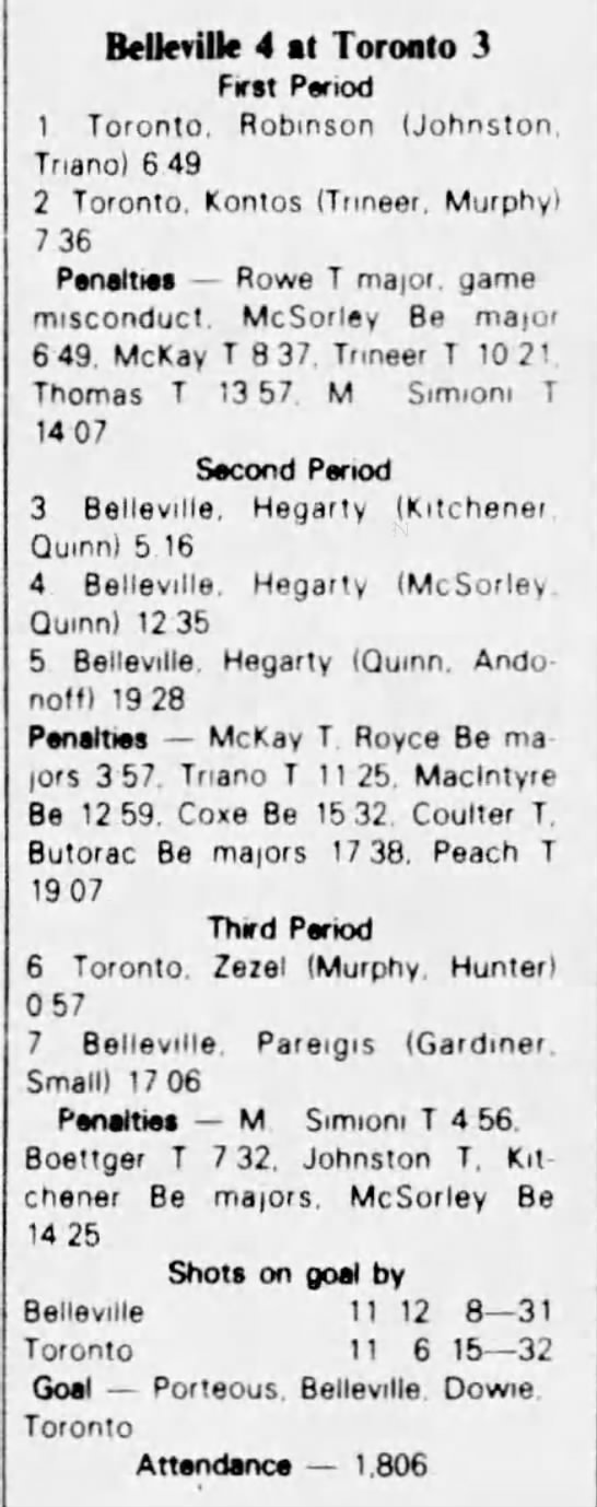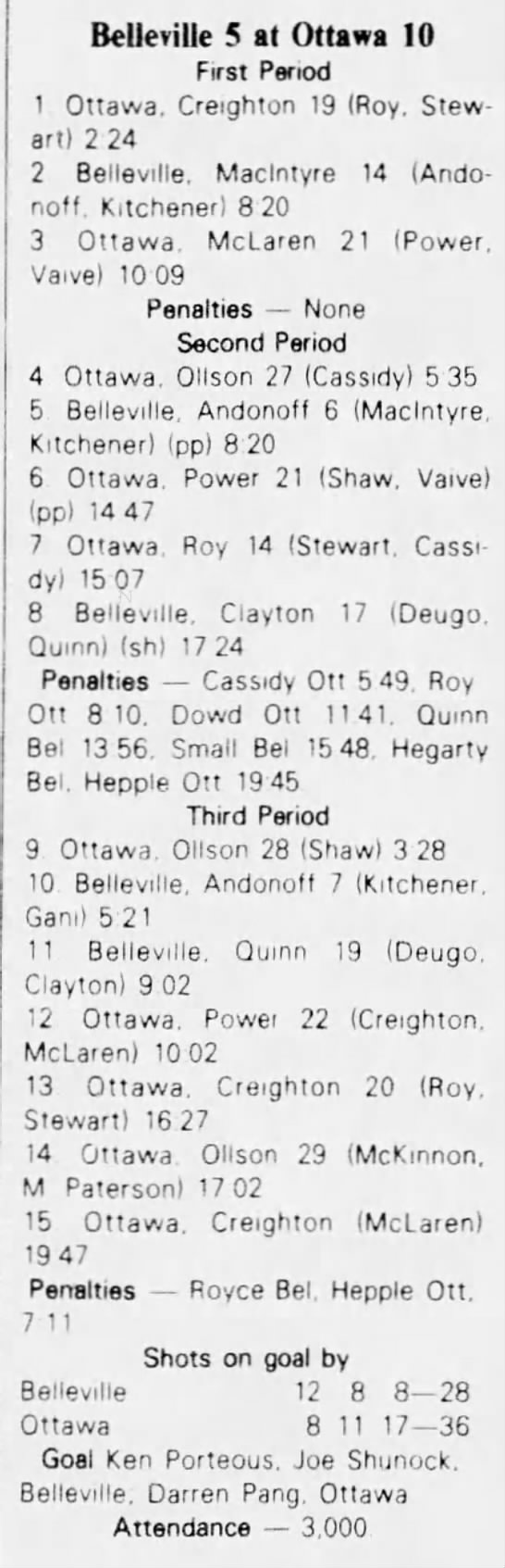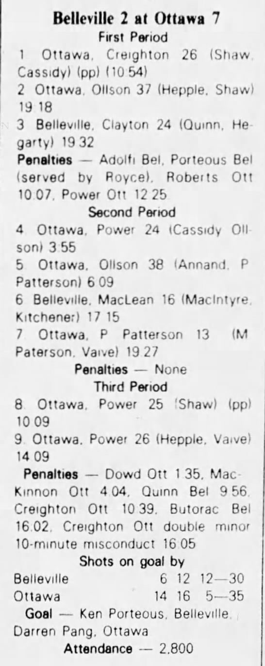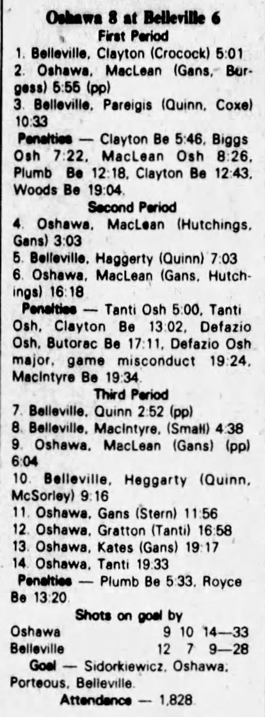 October 9 1982- Oshawa @ Belleville (6-5 Belleville)