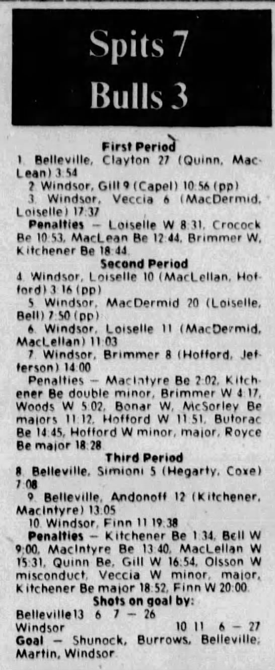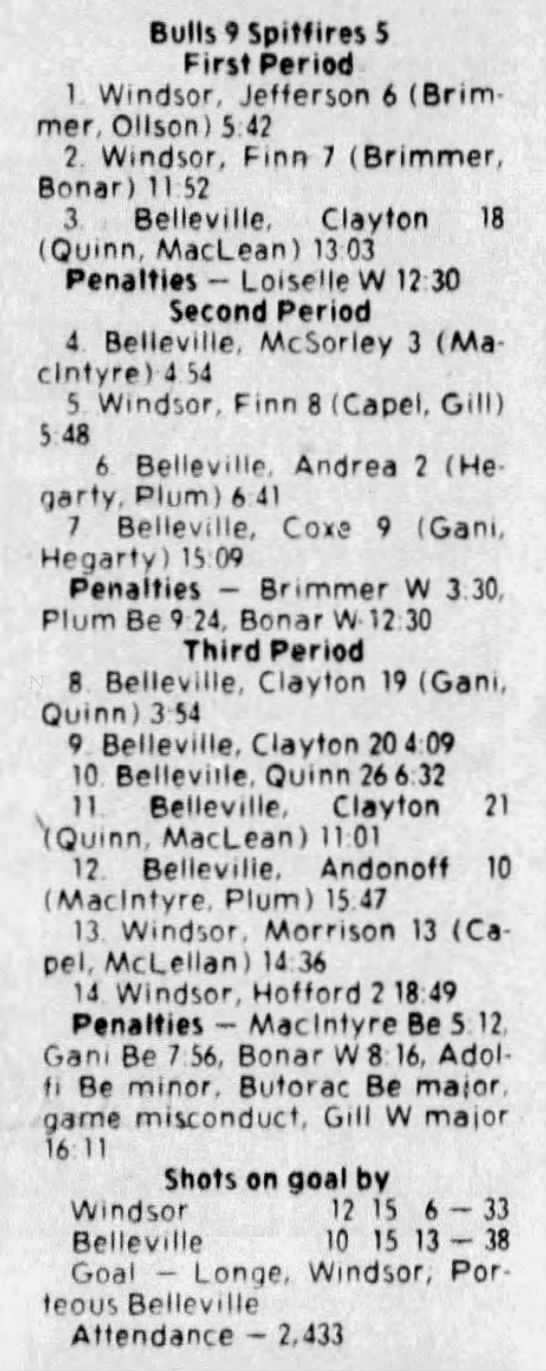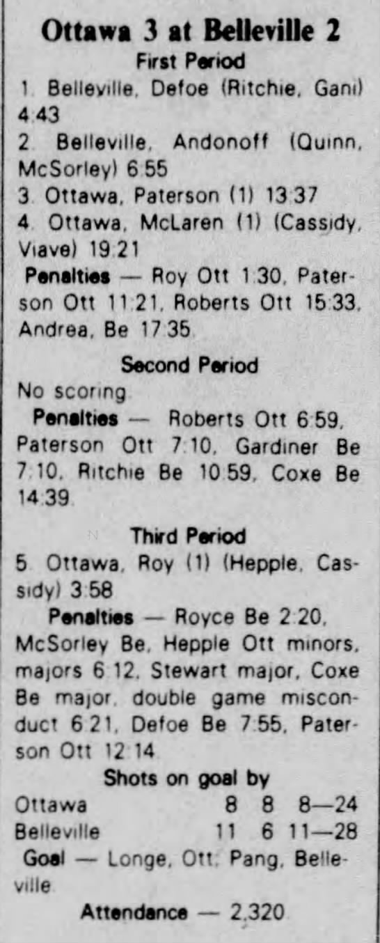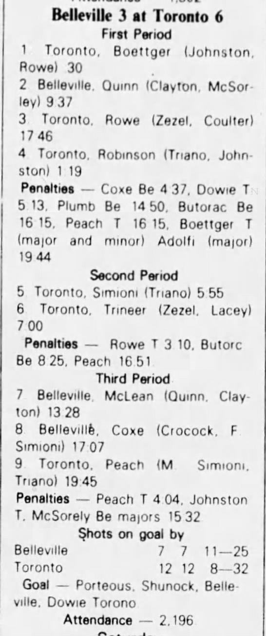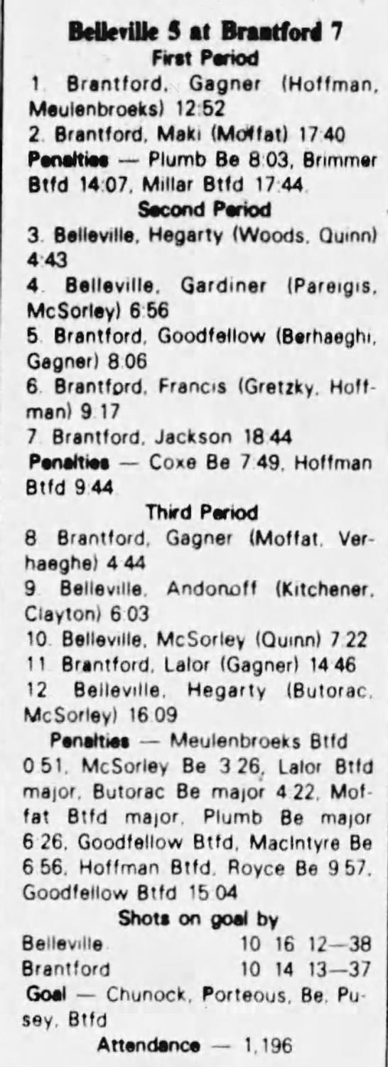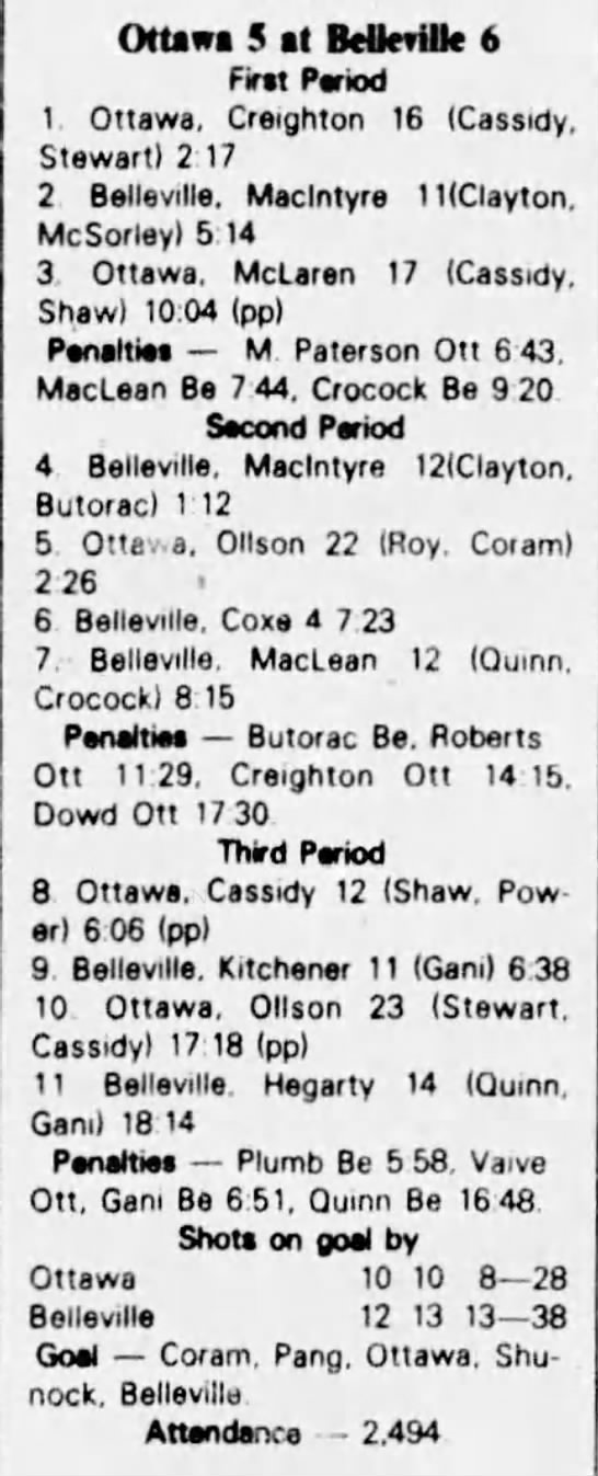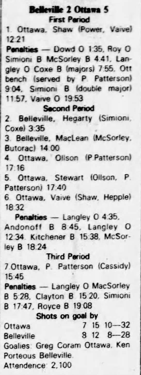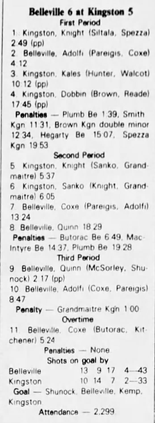 October 9 1982- Oshawa @ Belleville (6-5 Belleville)