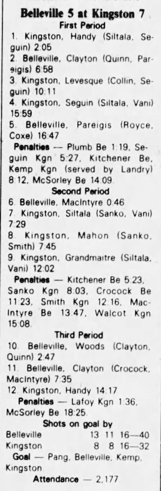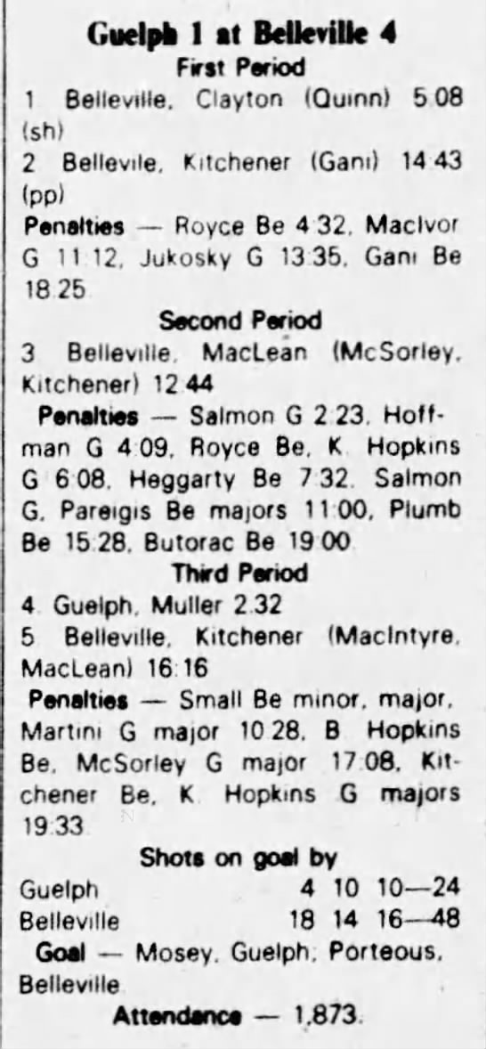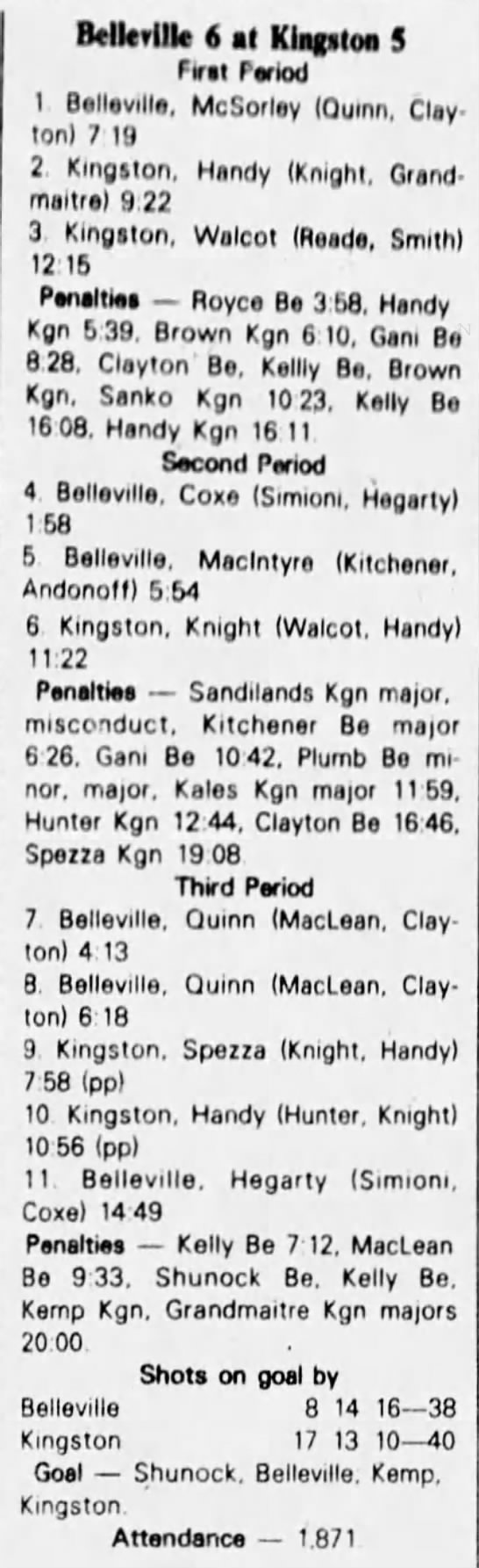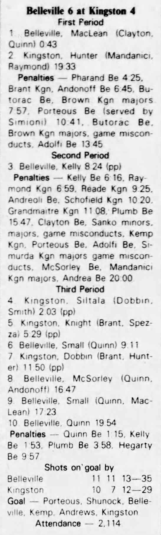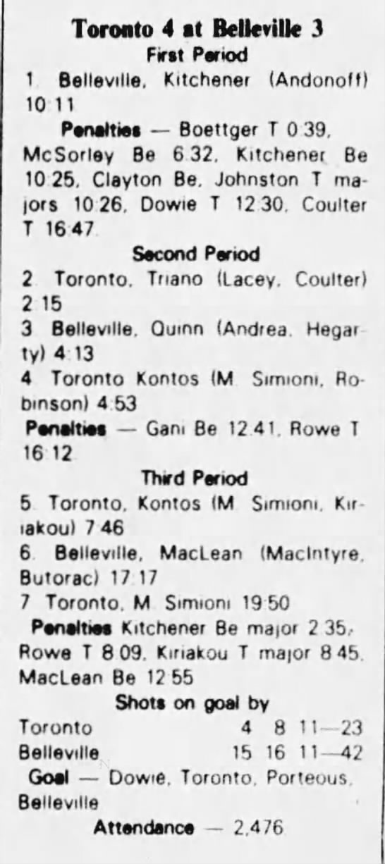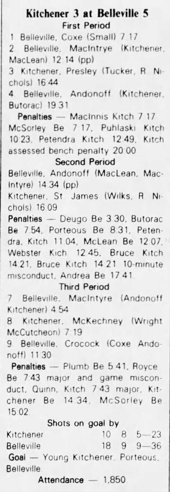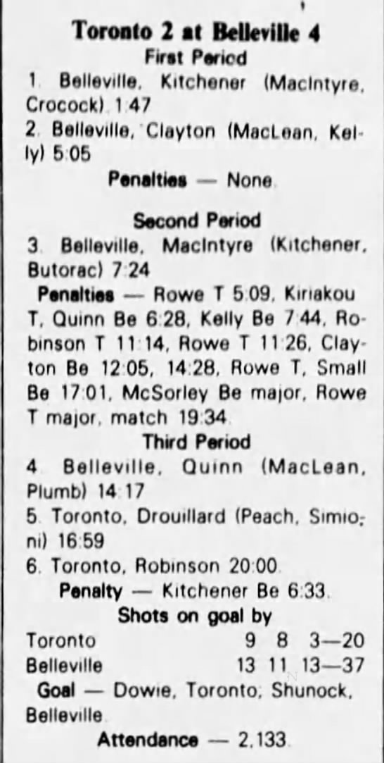 March 6 1983- Belleville @ Kitchener (6-4 Kitchener)