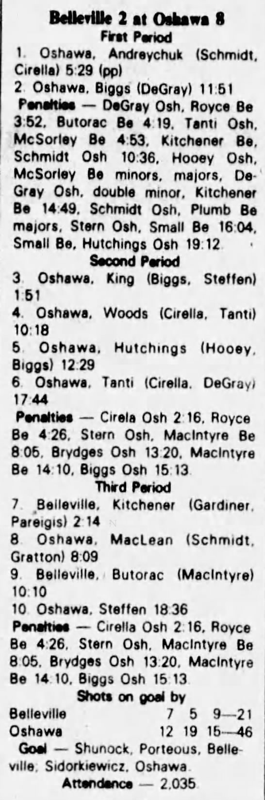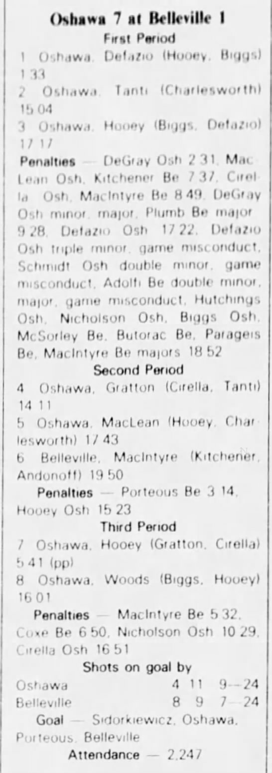 October 10 1982- Belleville @ Oshawa (7-1 Oshawa)