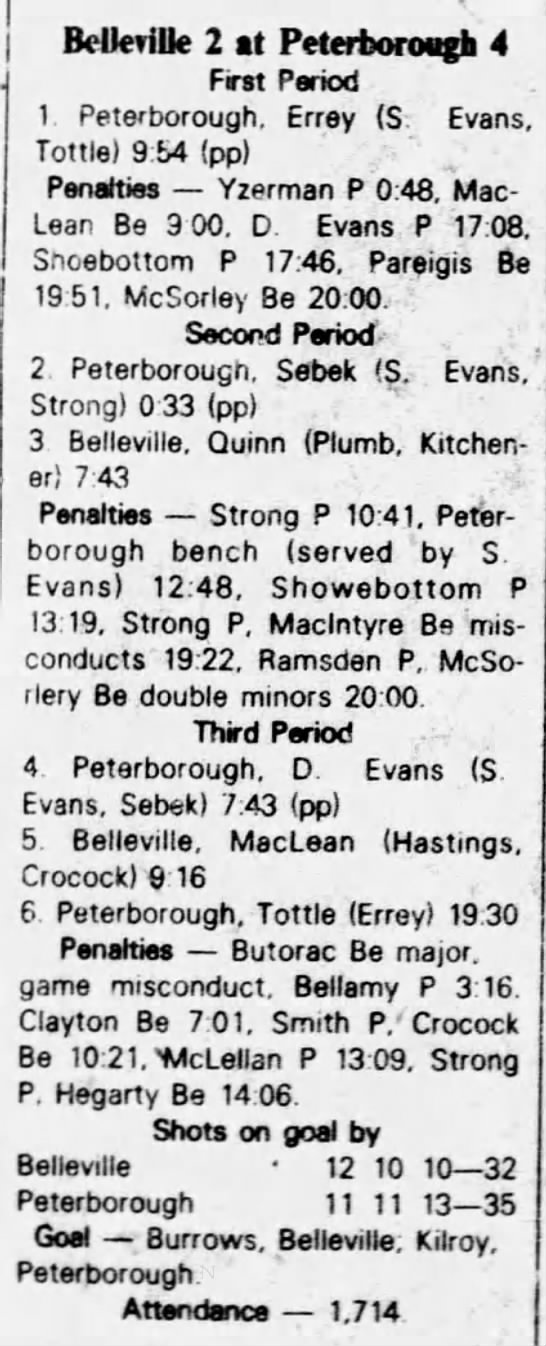 December 2 1982- Belleville @ Peterborough