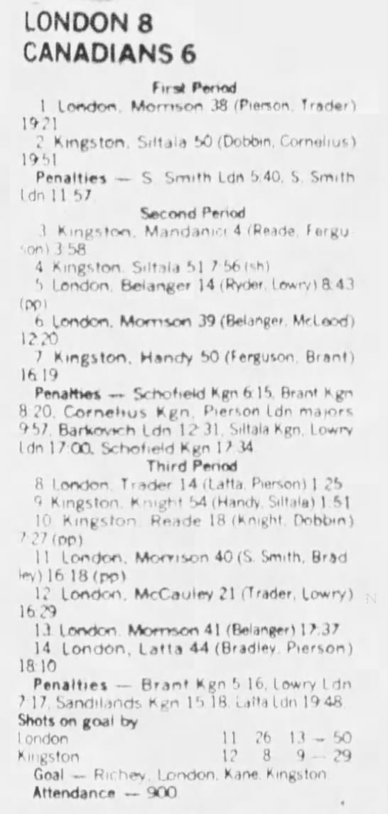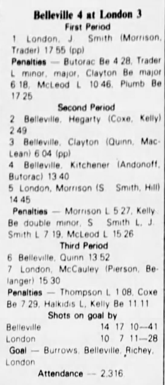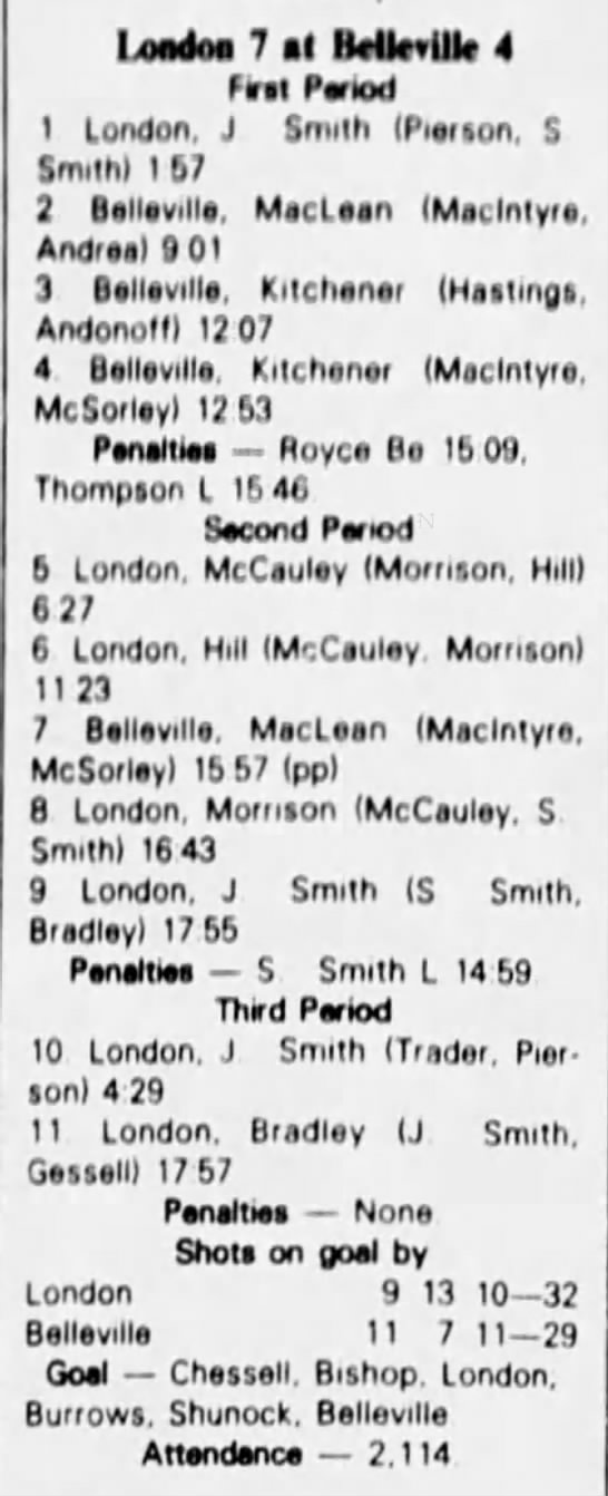 December 29 1982- London @ Belleville (6-3 Belleville)