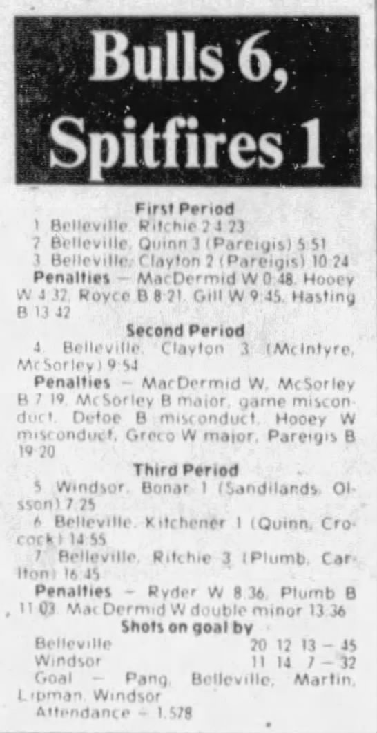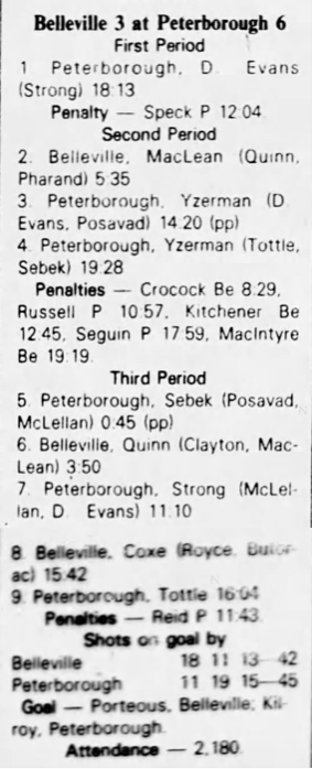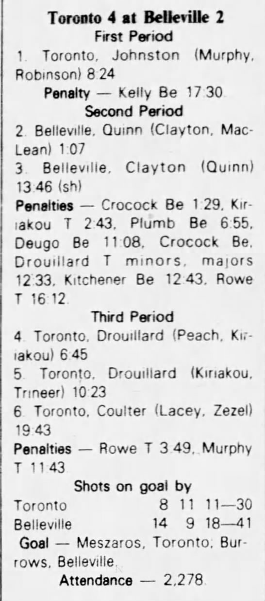 February 23 1983- Peterborough @ Belleville (6-2 Belleville)