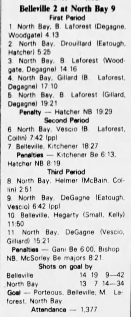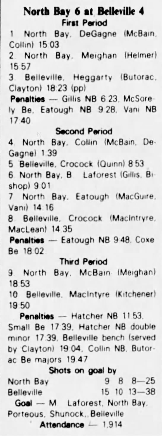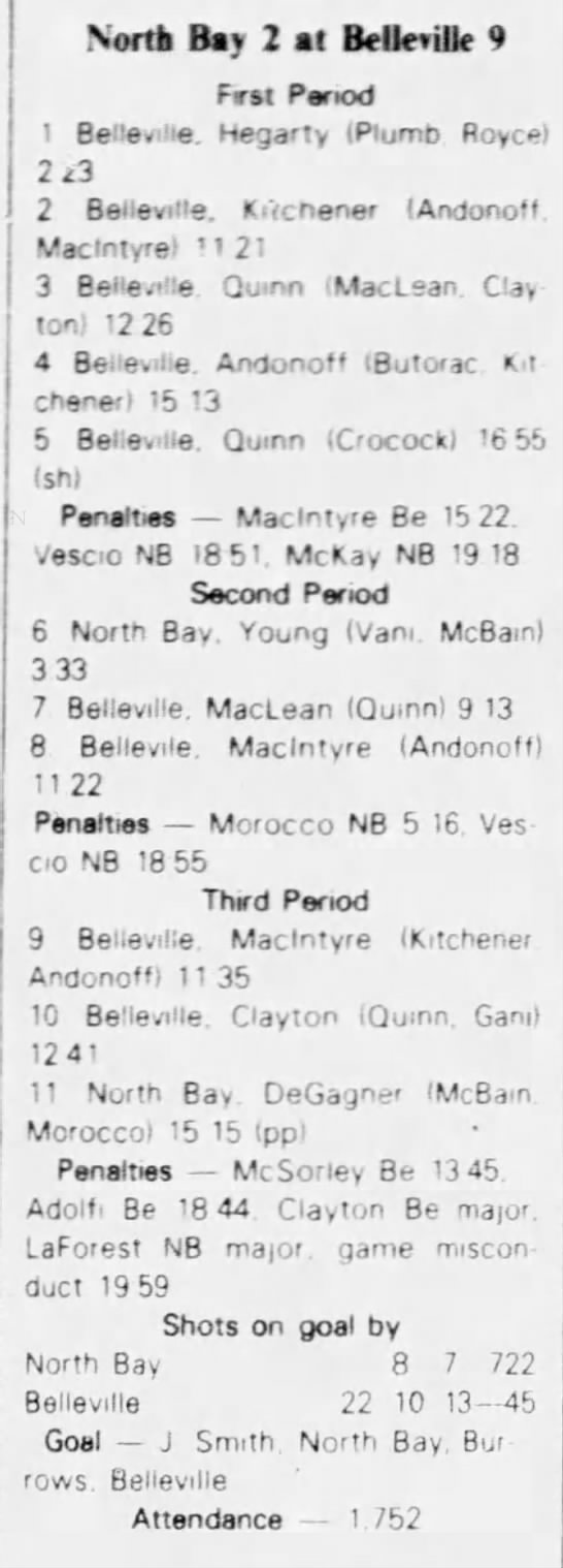 September 26 1982- Belleville @ North Bay (6-4 North Bay)