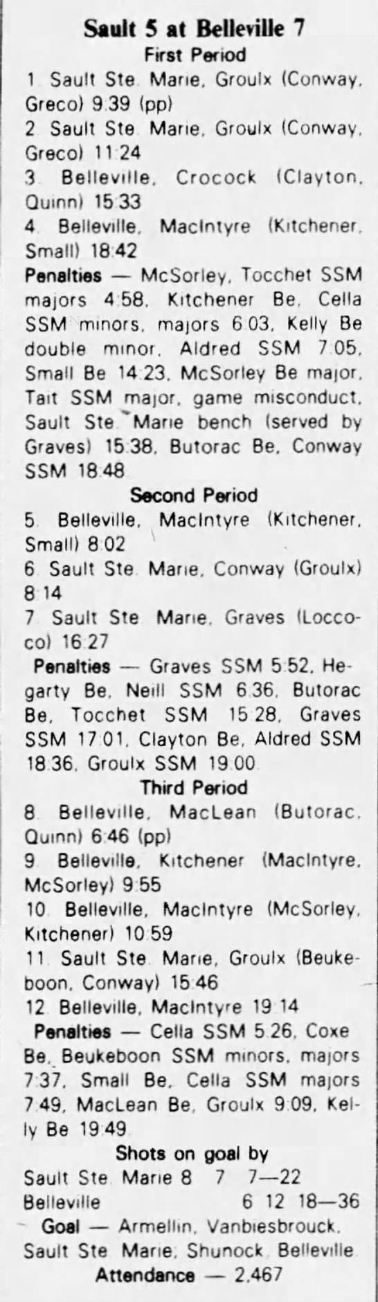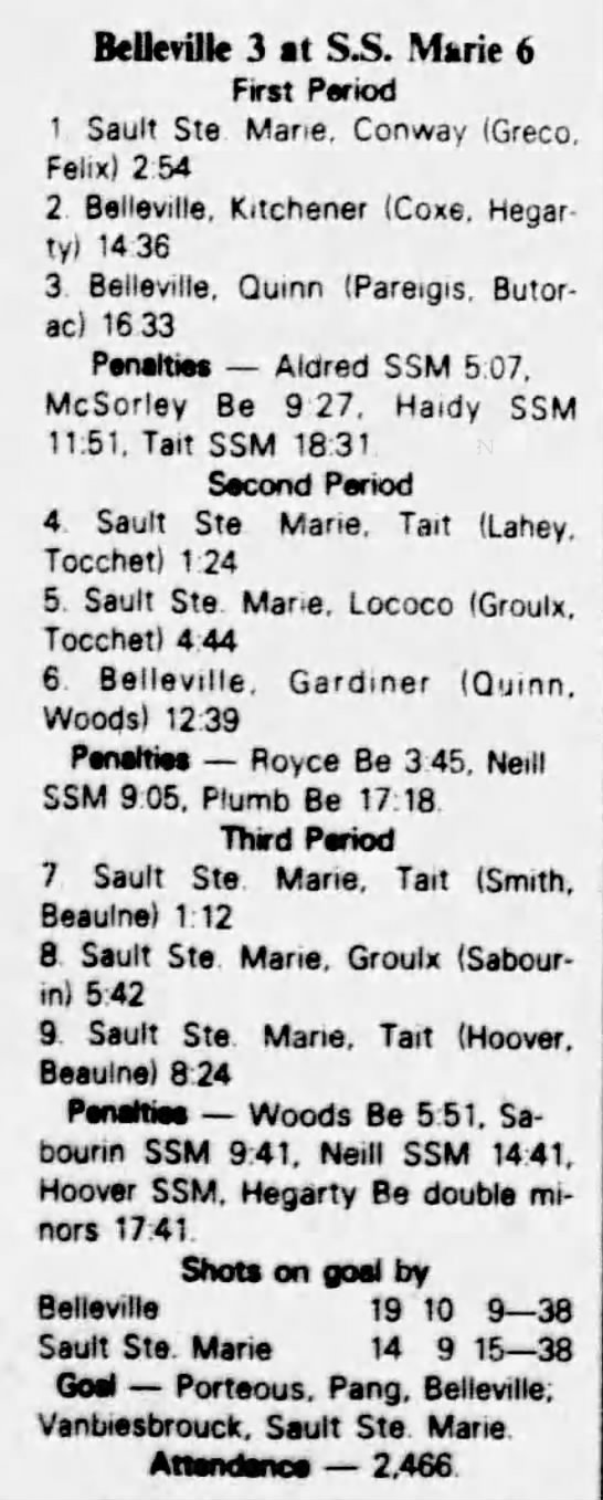 October 23 1982- Belleville @ Sudbury (5-4 Sudbury)
