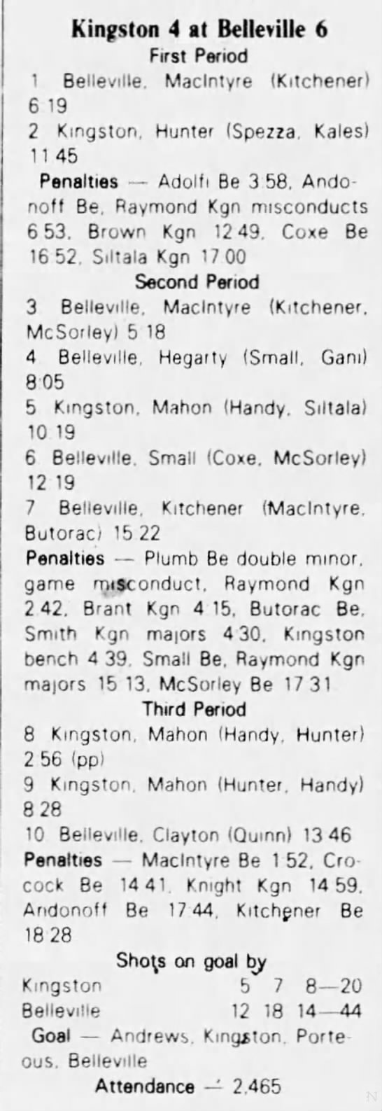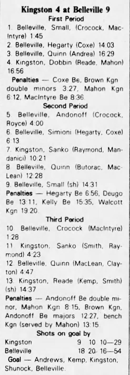 March 4 1983- Belleville @ Kingston