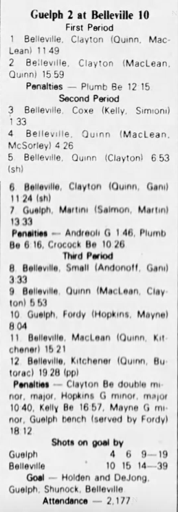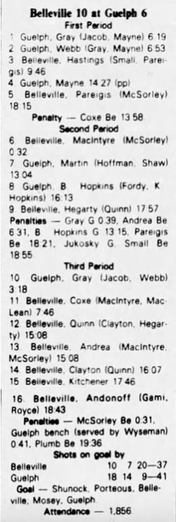 December 17 1982- Belleville @ Guelph (8-1 Belleville)