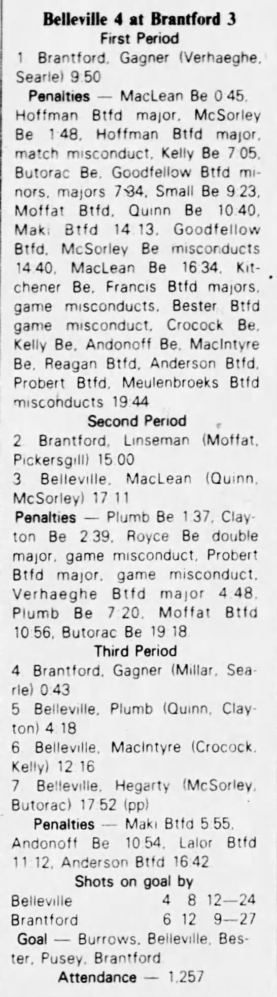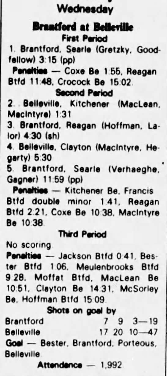 March 3 1983- Belleville @ Brantford