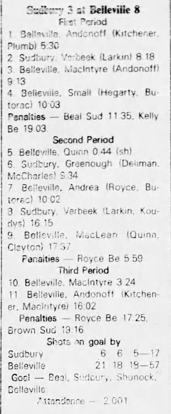 January 18 1983- Belleville @ Sudbury (7-5 Belleville)