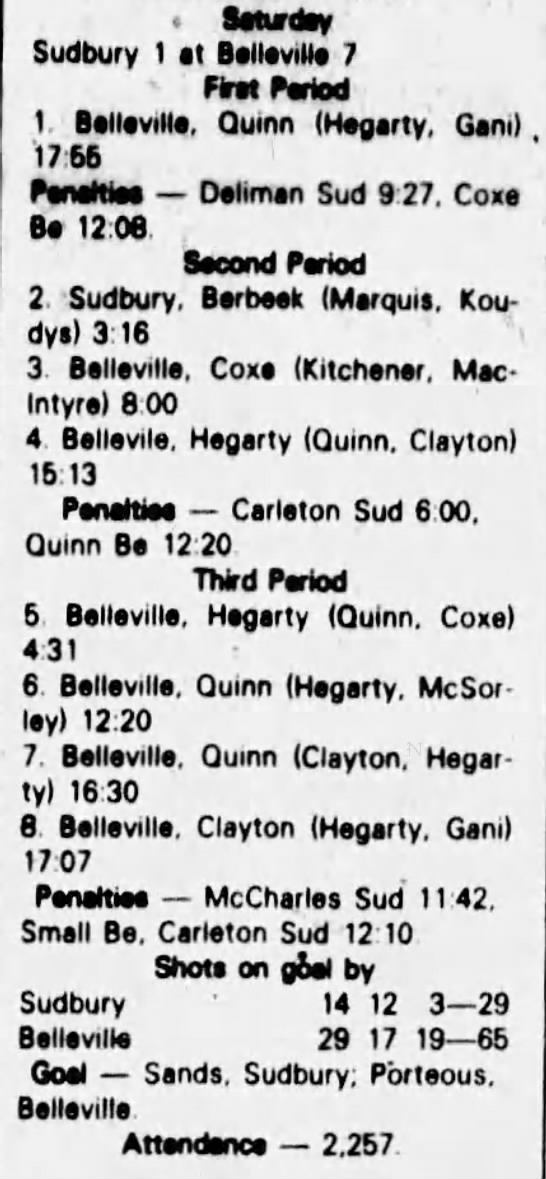 March 9 1983- Sudbury @ Belleville