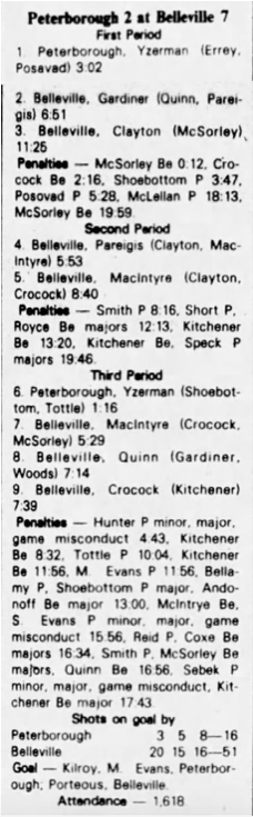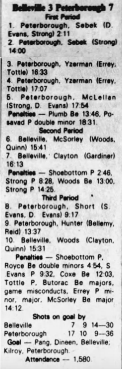 October 20 1982- Peterborough @ Belleville