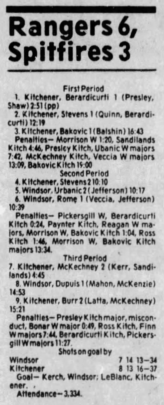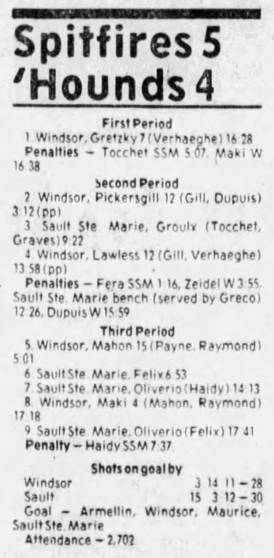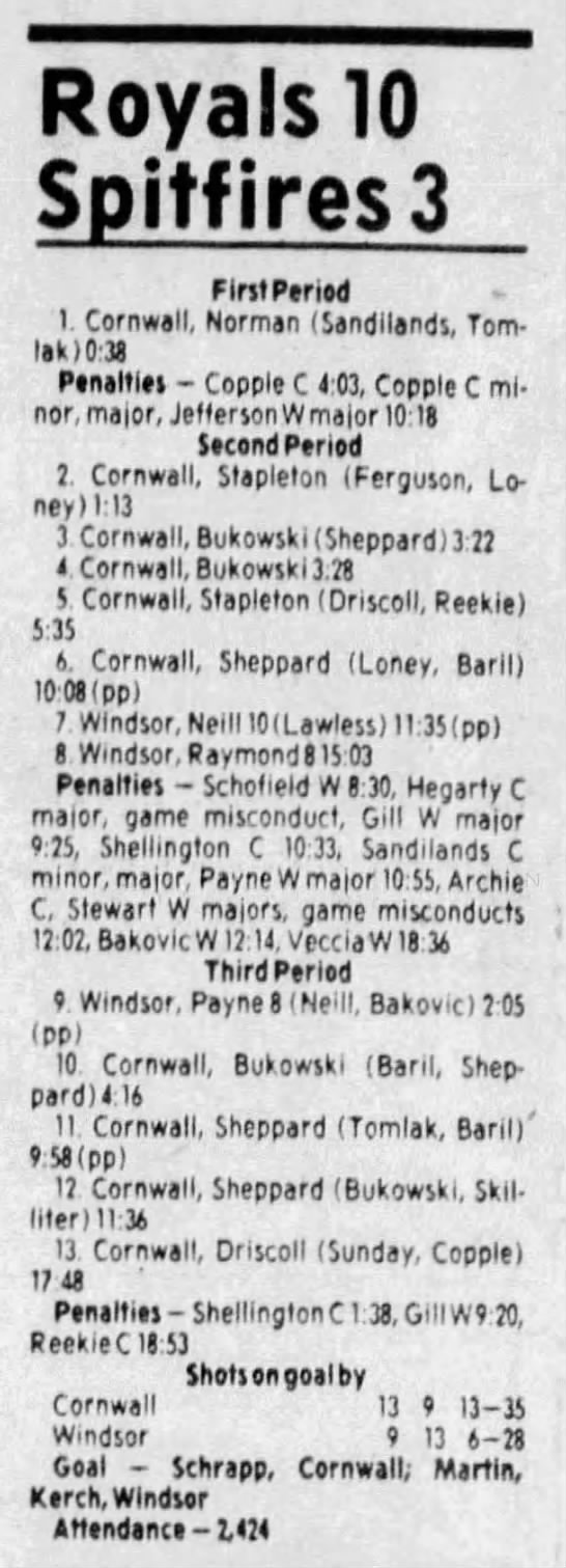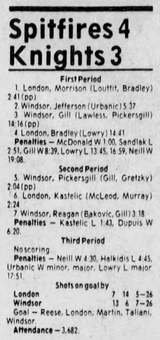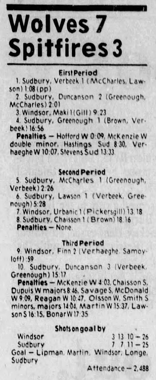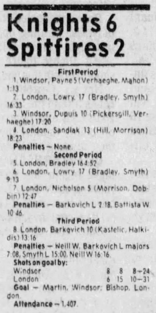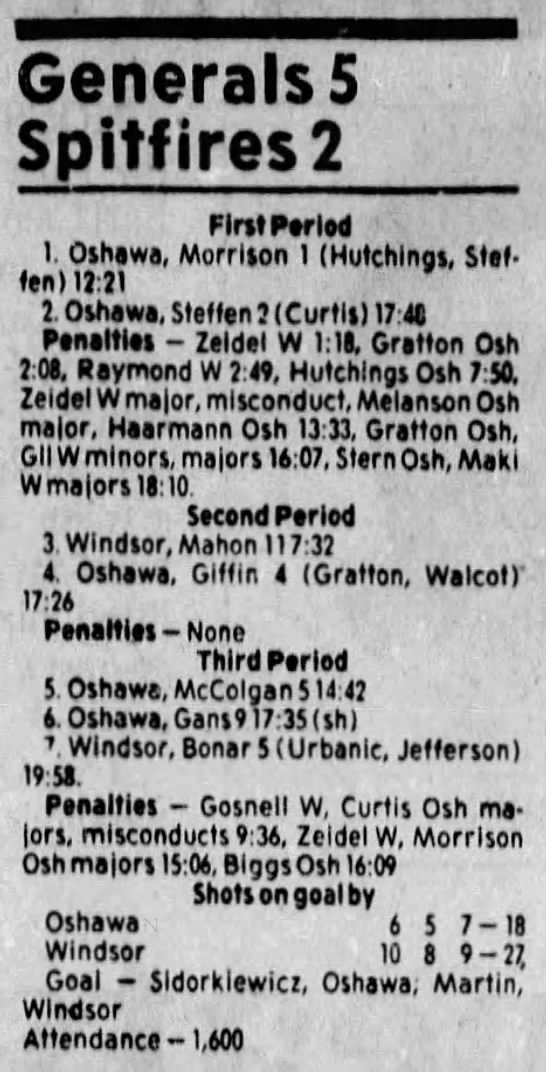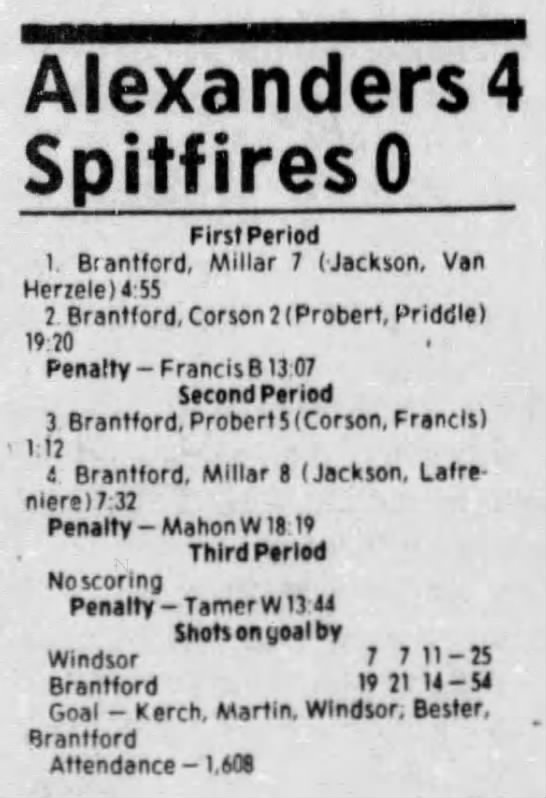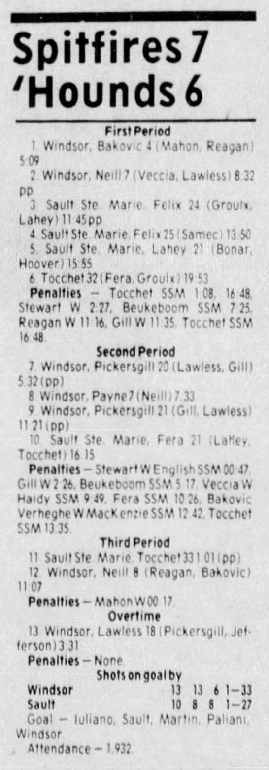 Here are the boxscores from the 1983-84 Windsor Spitfires season. Every game from that season is here (73/73 boxscores). If you have any games that are missing from any other team or season, please send them my way.