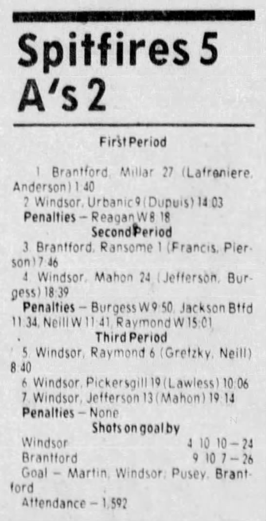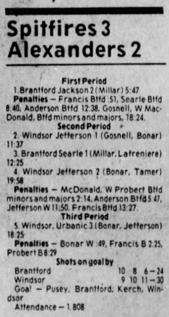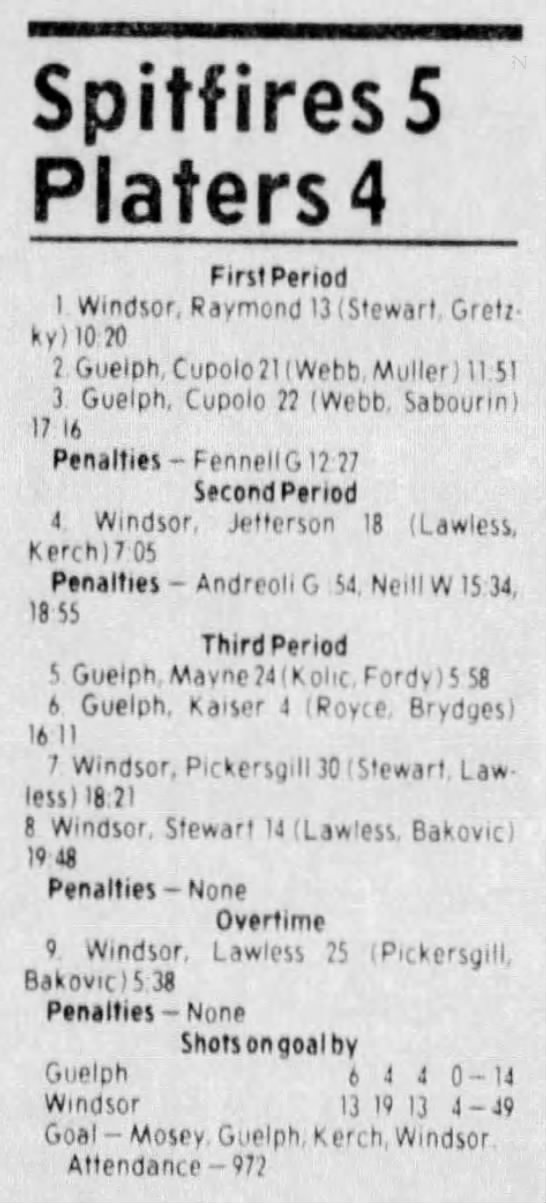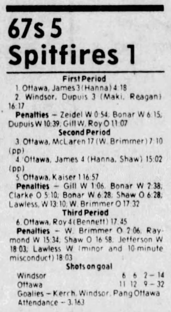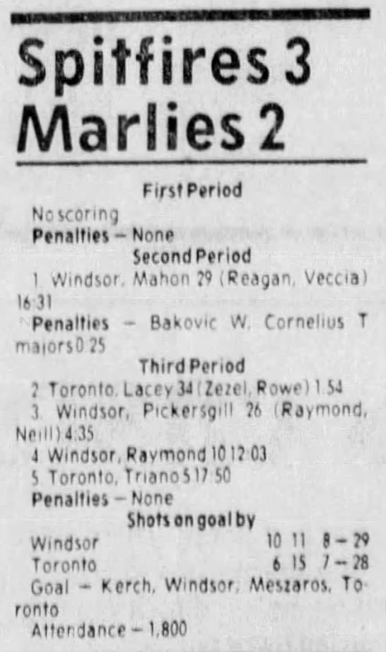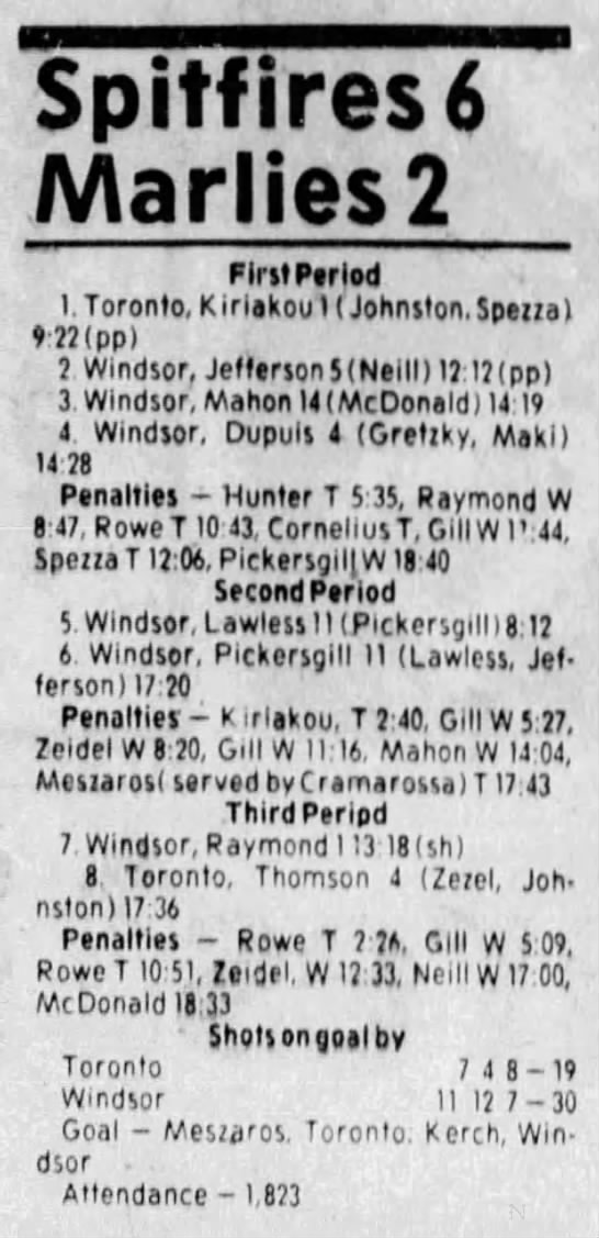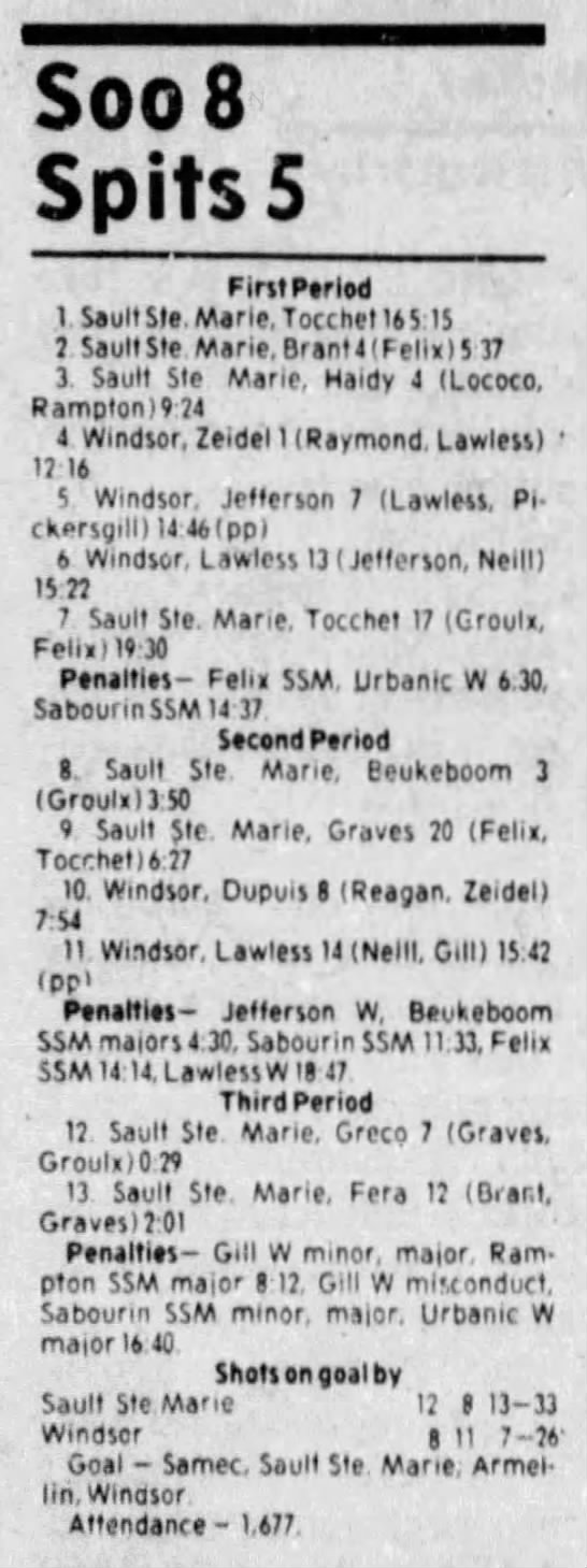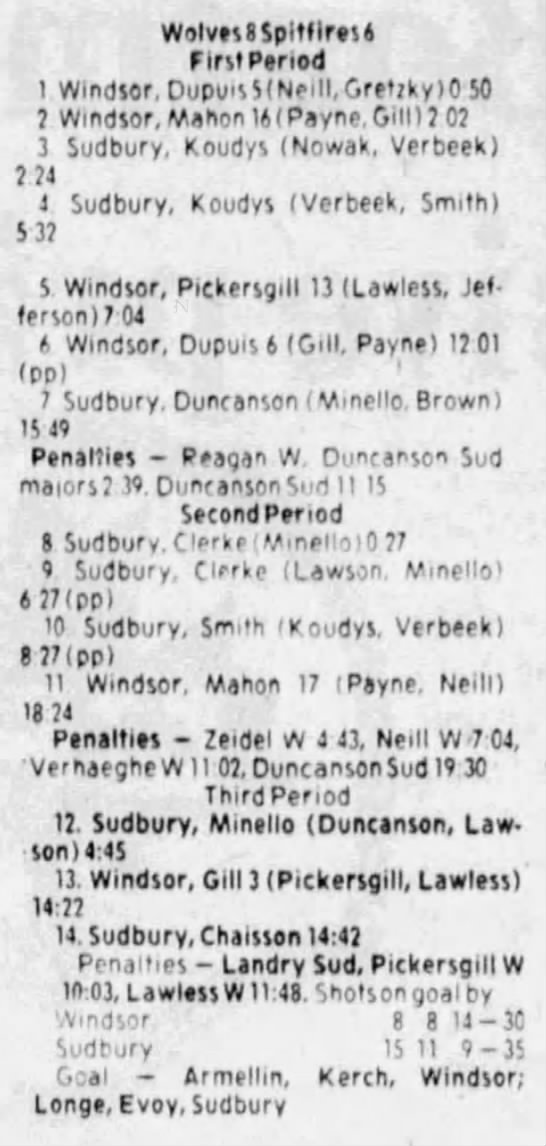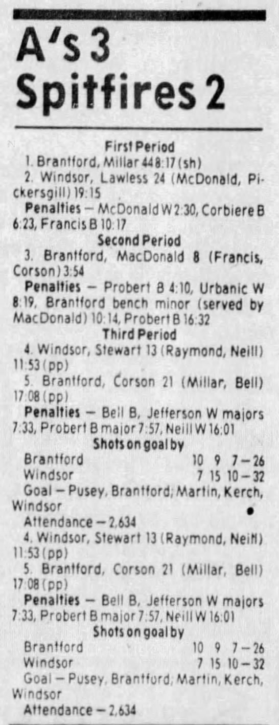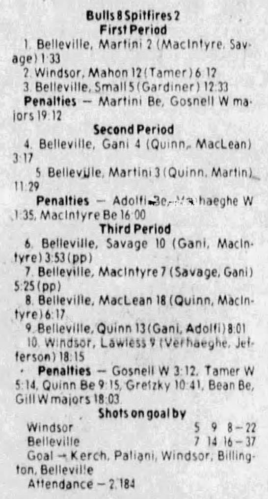 Here are the boxscores from the 1983-84 Windsor Spitfires season. Every game from that season is here (73/73 boxscores). If you have any games that are missing from any other team or season, please send them my way.