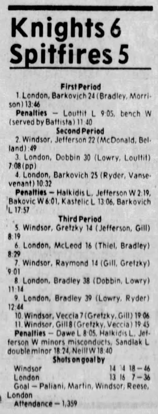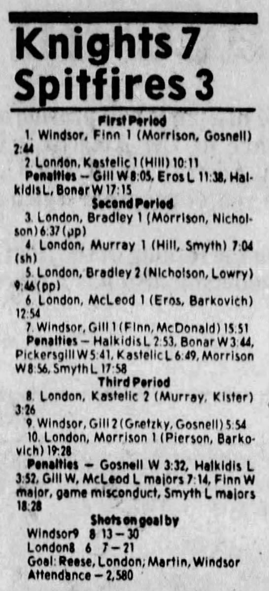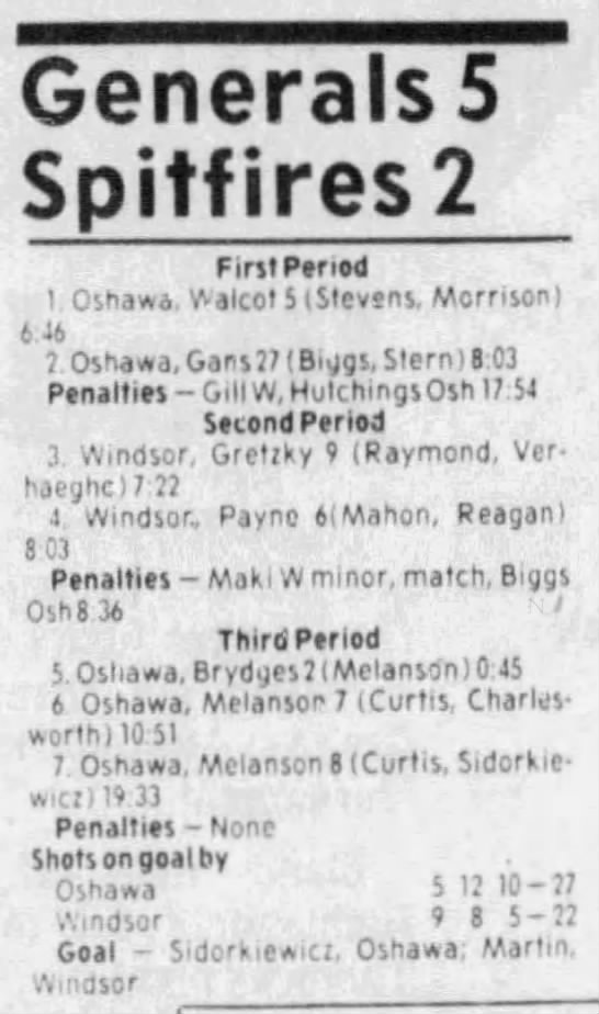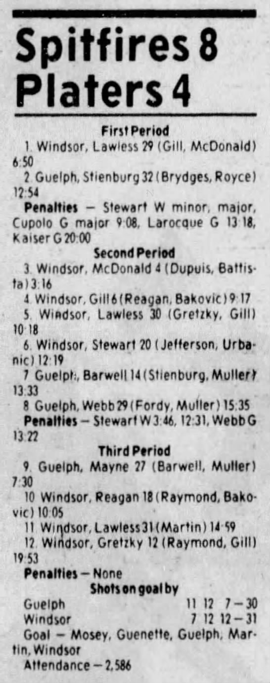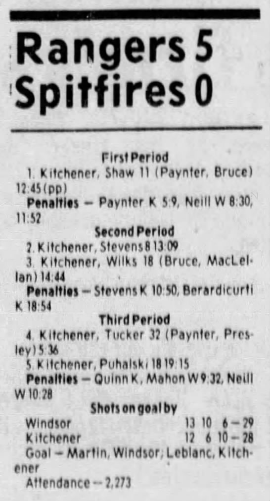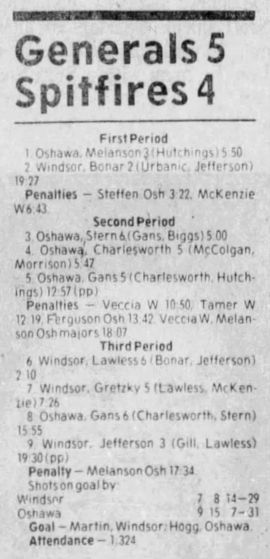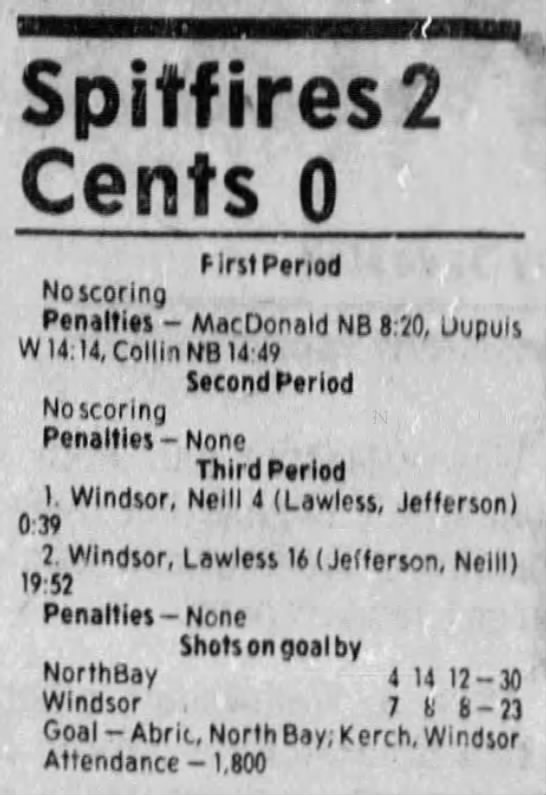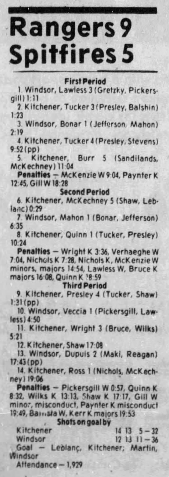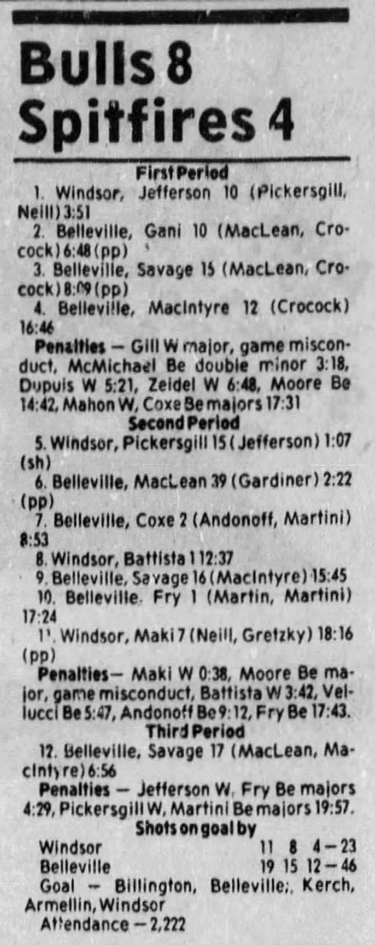 Here are the boxscores from the 1983-84 Windsor Spitfires season. Every game from that season is here (73/73 boxscores). If you have any games that are missing from any other team or season, please send them my way.