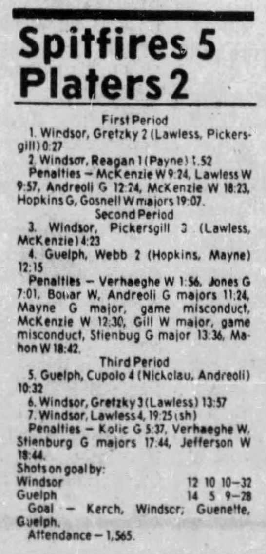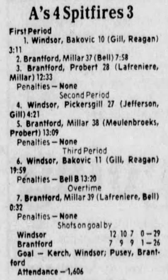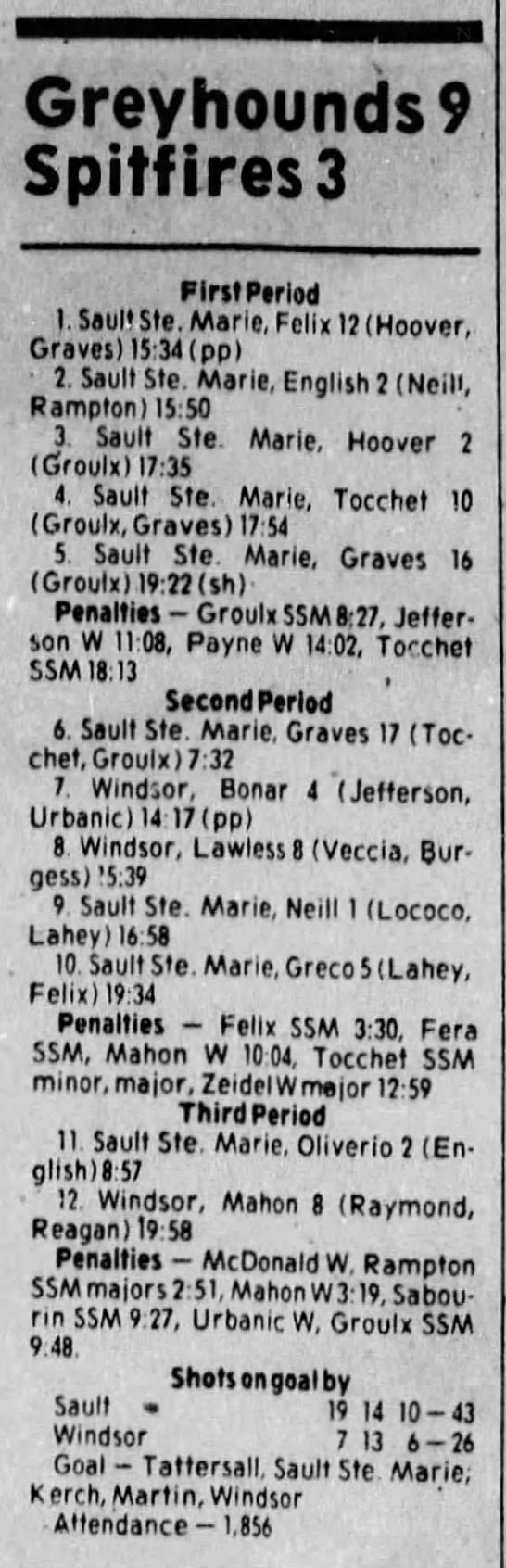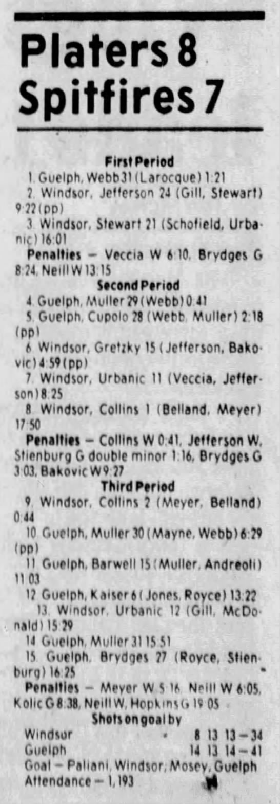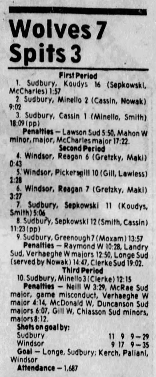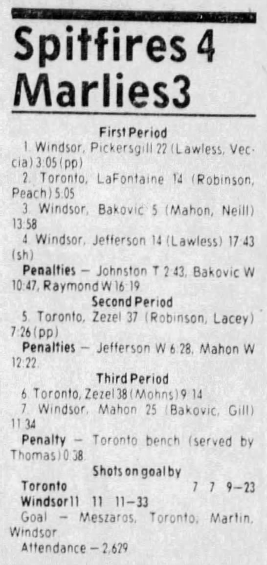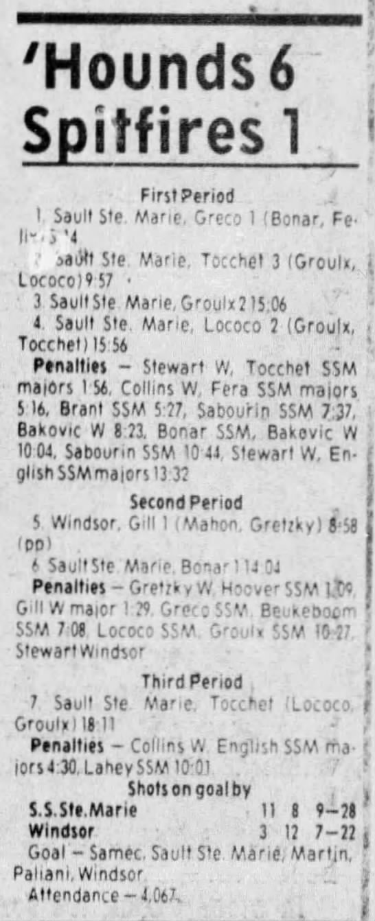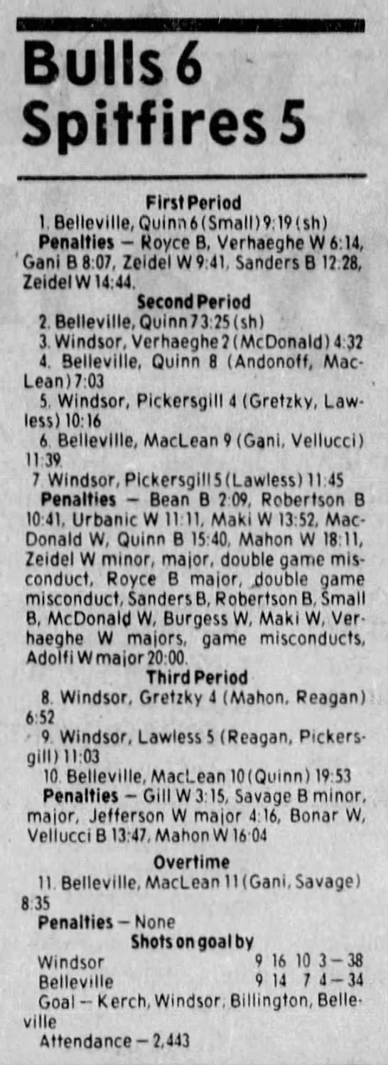 Here are the boxscores from the 1983-84 Windsor Spitfires season. Every game from that season is here (73/73 boxscores). If you have any games that are missing from any other team or season, please send them my way.