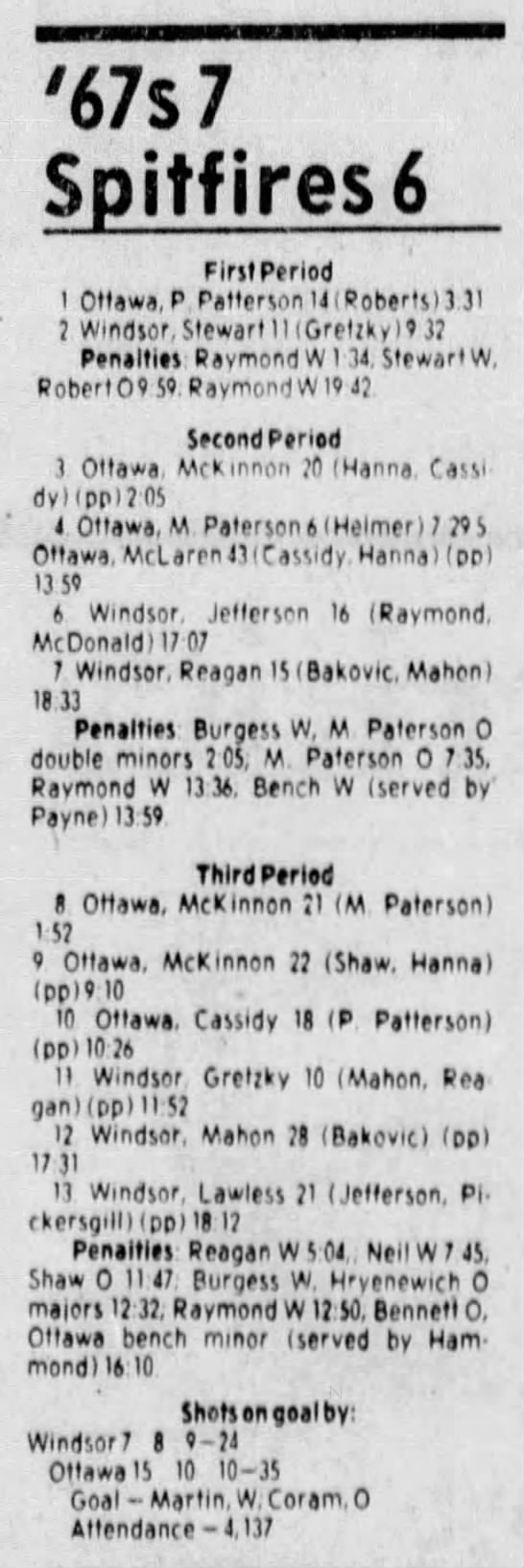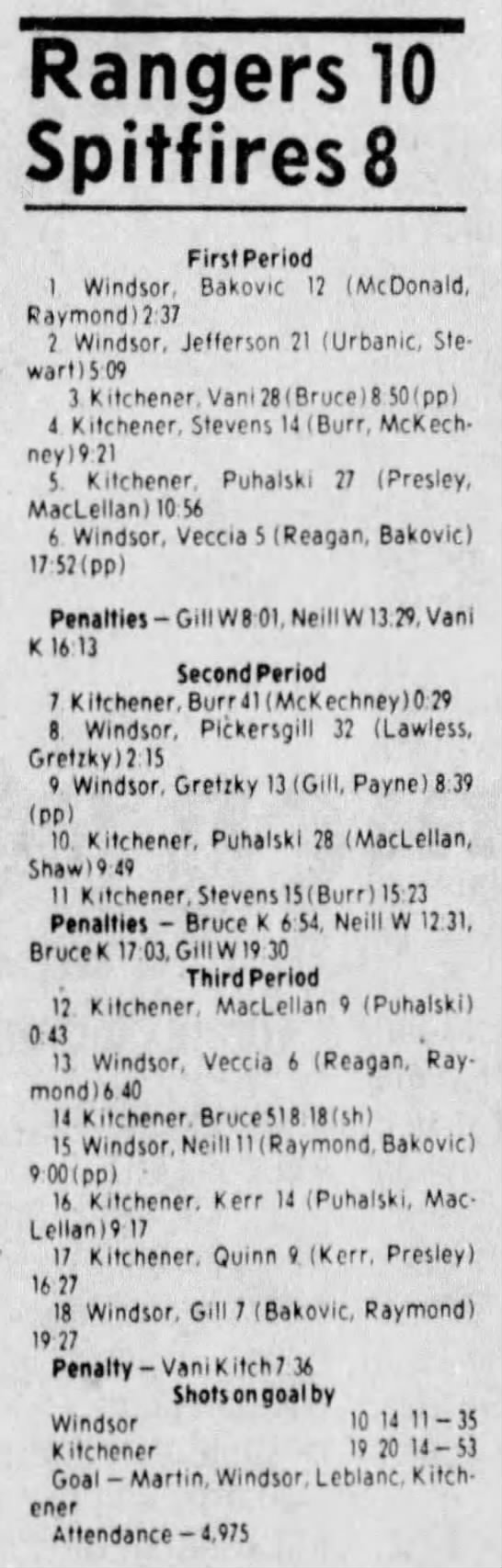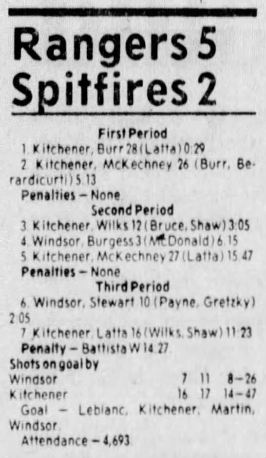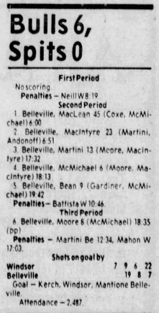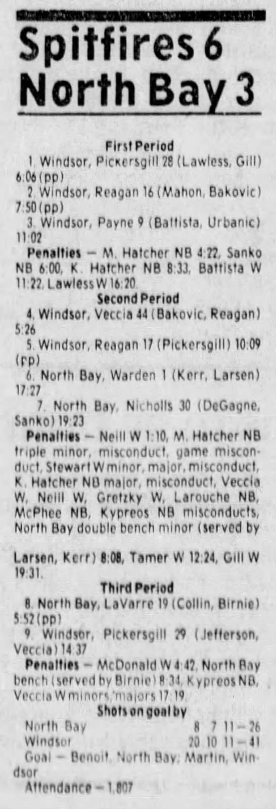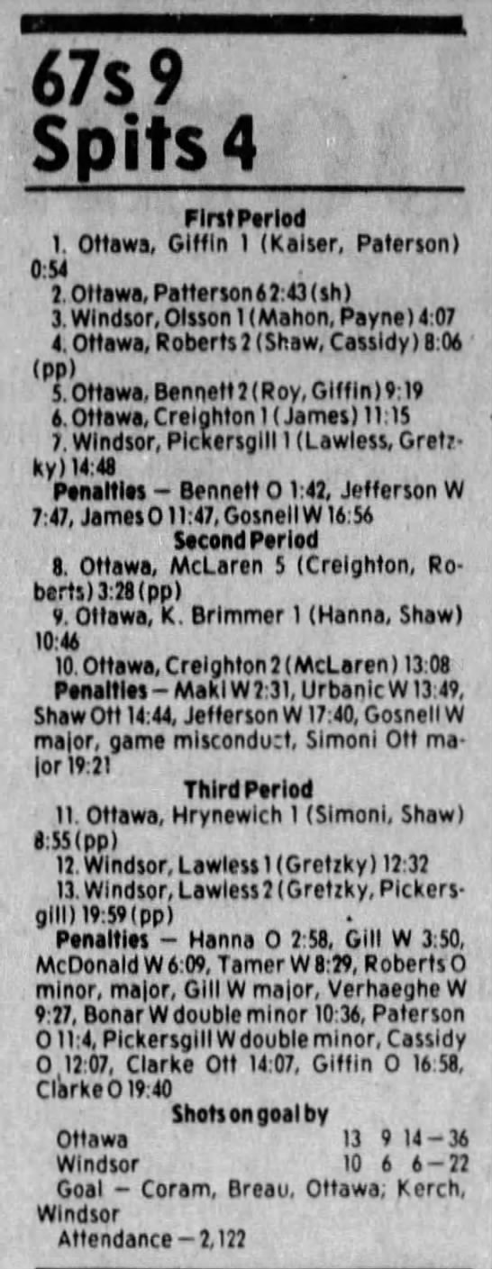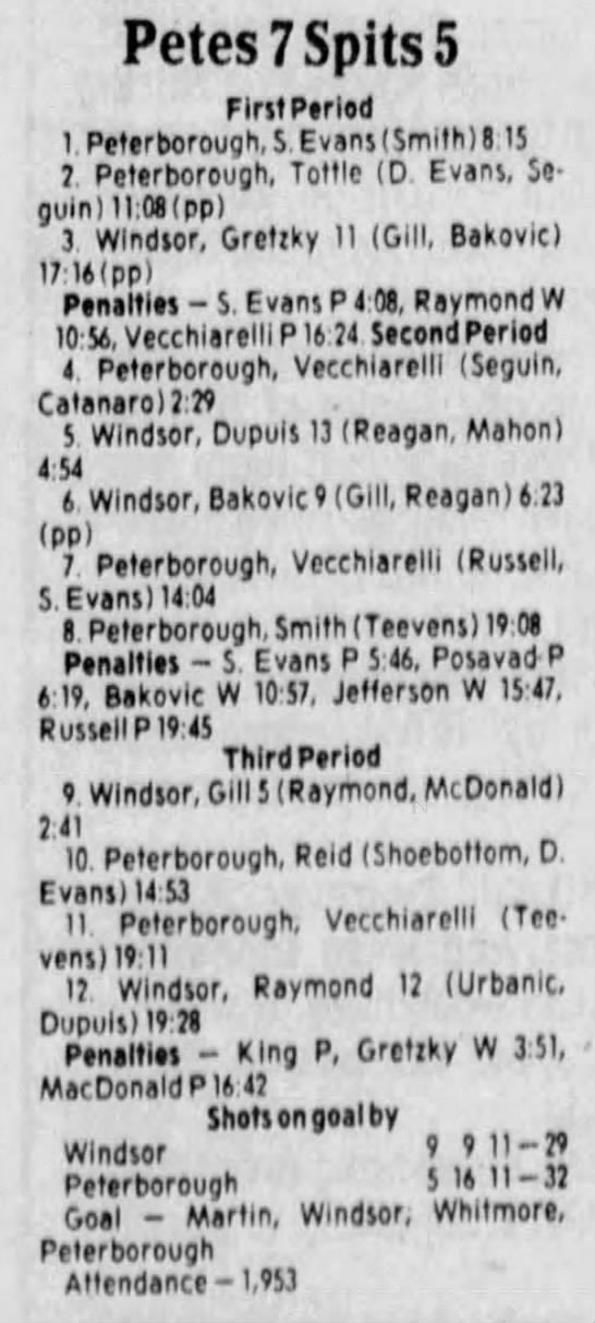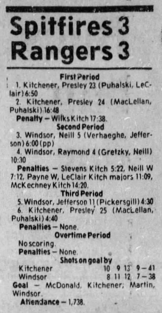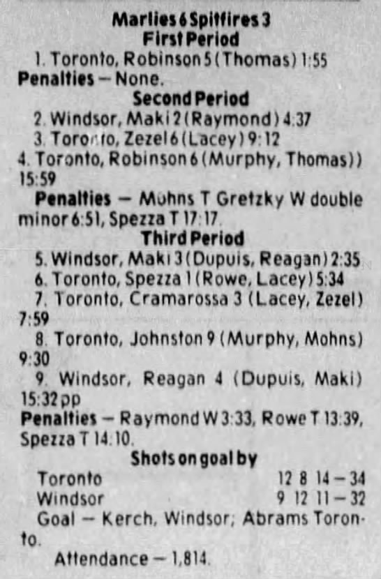 Here are the boxscores from the 1983-84 Windsor Spitfires season. Every game from that season is here (73/73 boxscores). If you have any games that are missing from any other team or season, please send them my way.