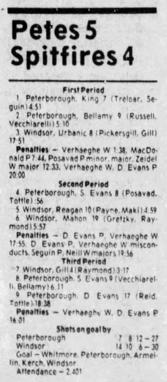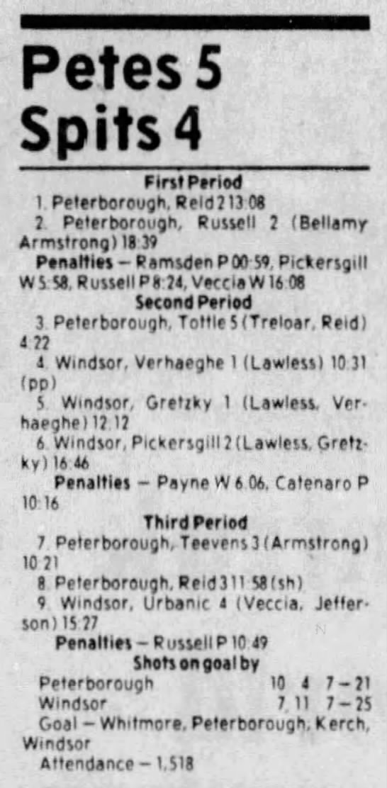 October 9 1983- Peterborough @ Windsor